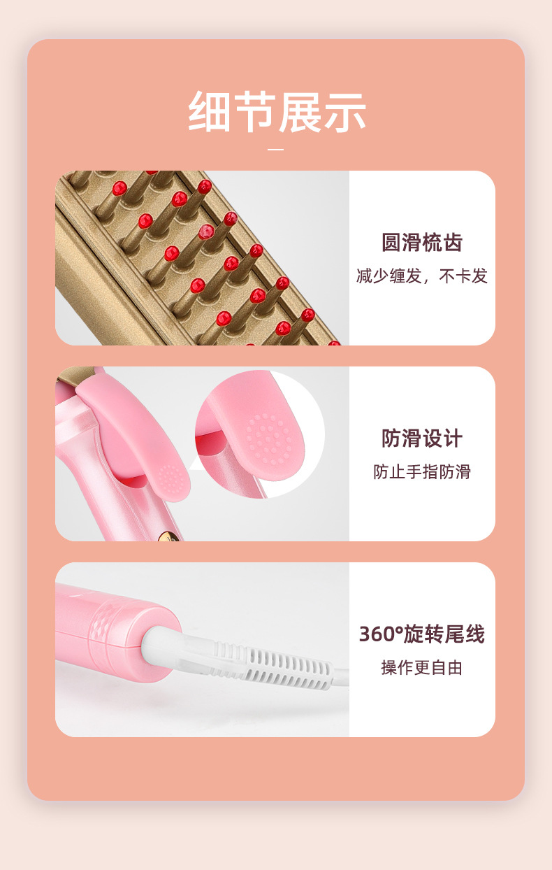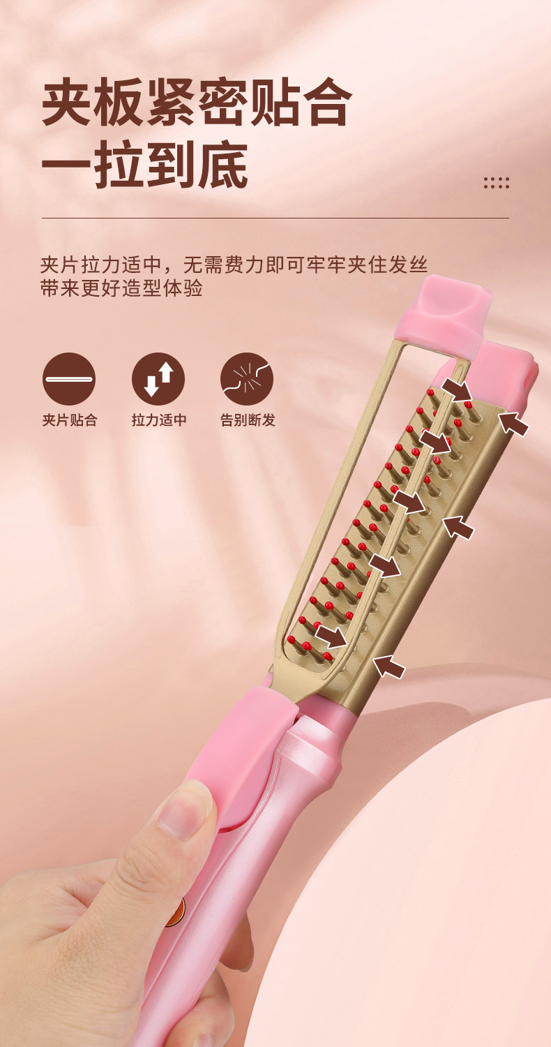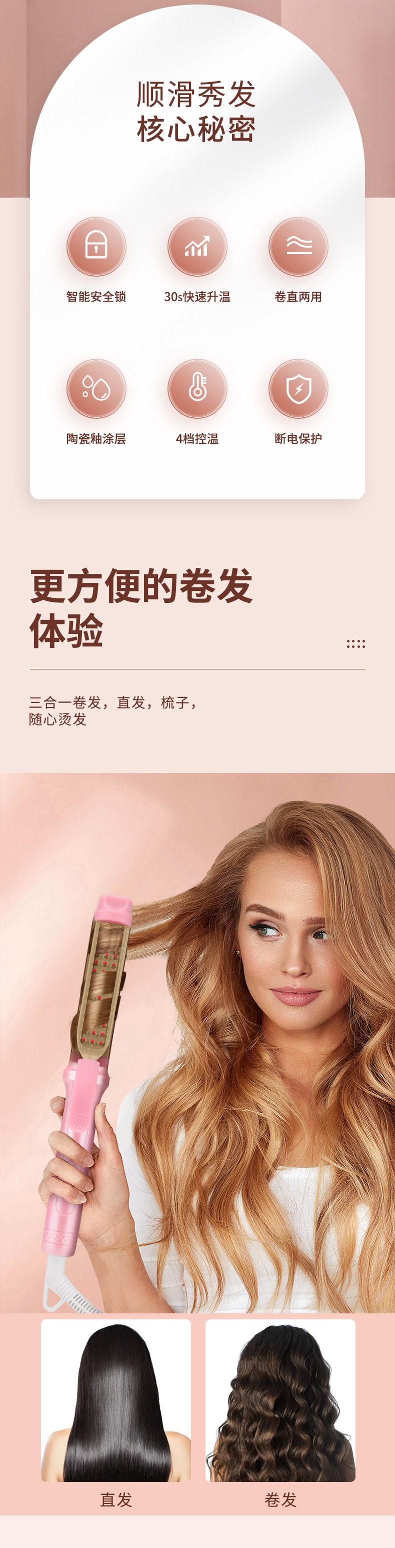 TEMU热卖女士直发夹板大波浪卷发器卷直两用直发器多功能美发梳
