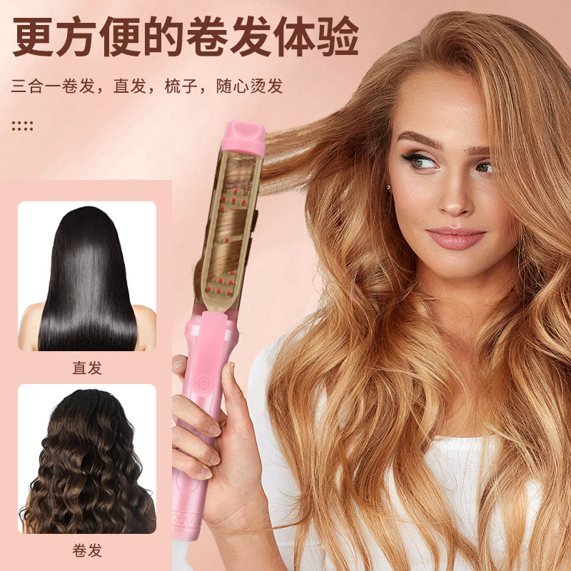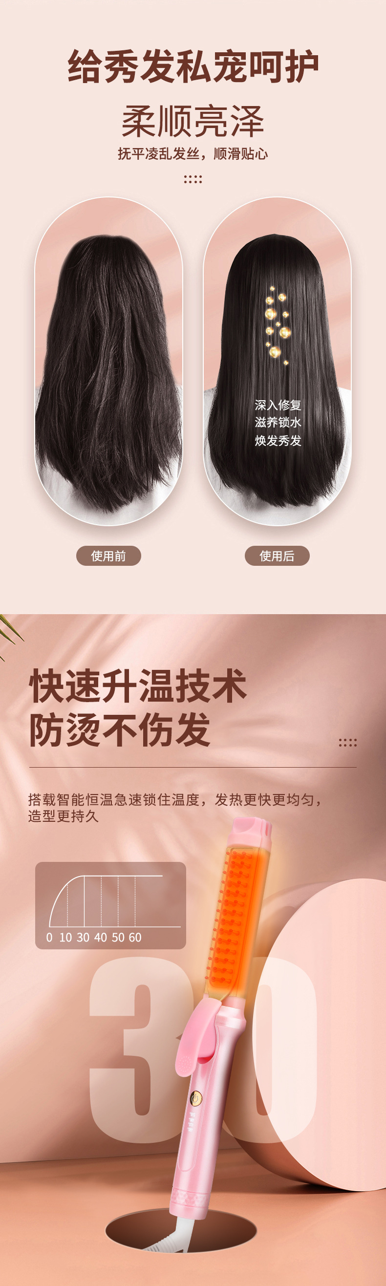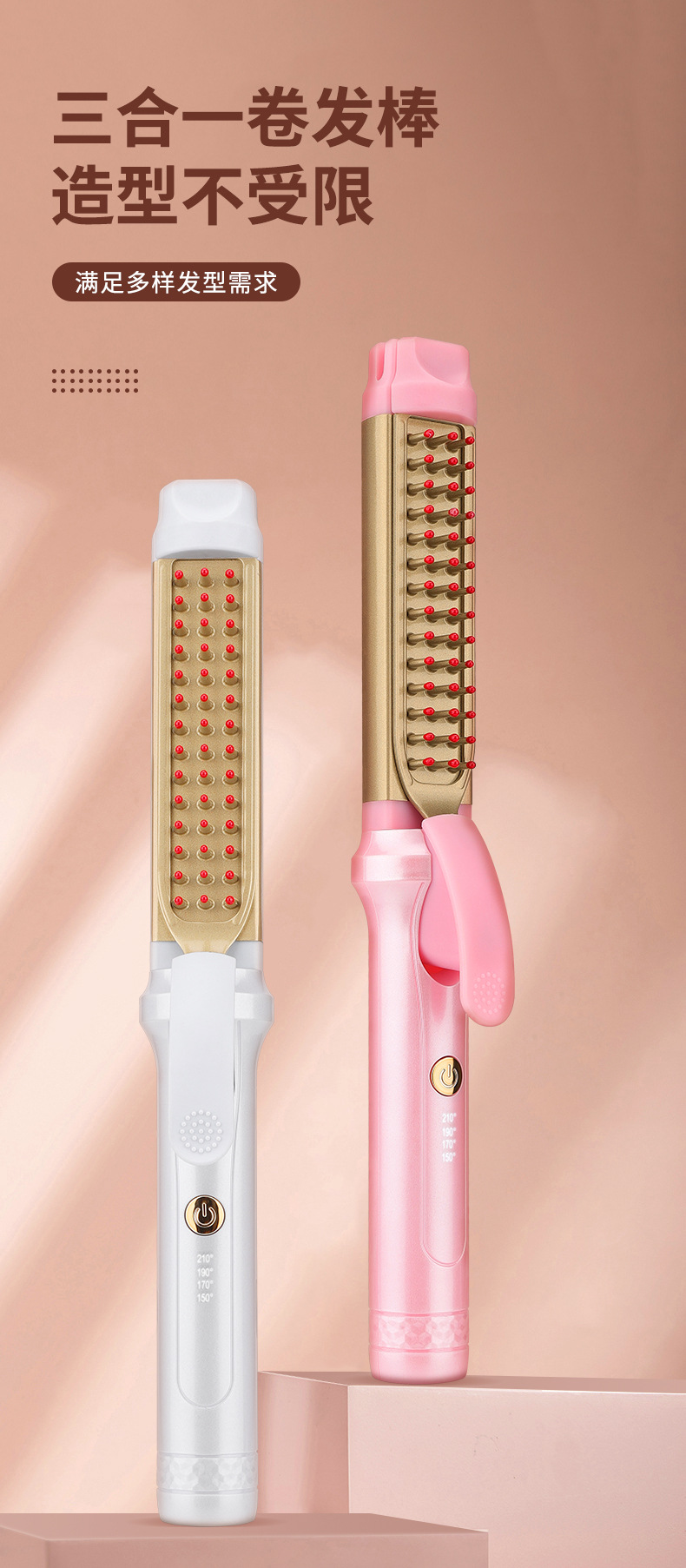 TEMU热卖女士直发夹板大波浪卷发器卷直两用直发器多功能美发梳