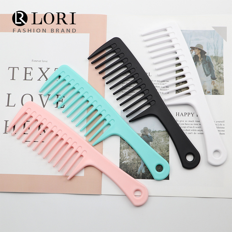彩色宽齿大刀梳加厚款手柄大齿梳女士长发家用耐高温顺发扁梳跨境