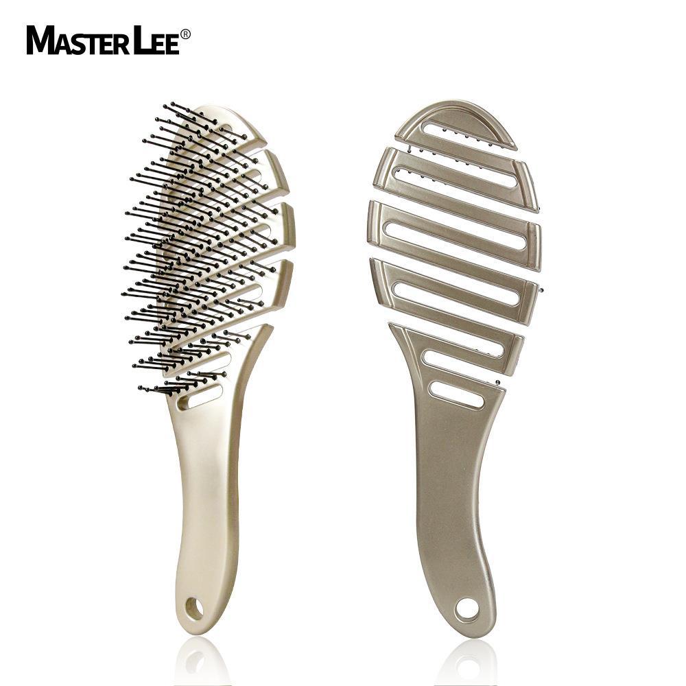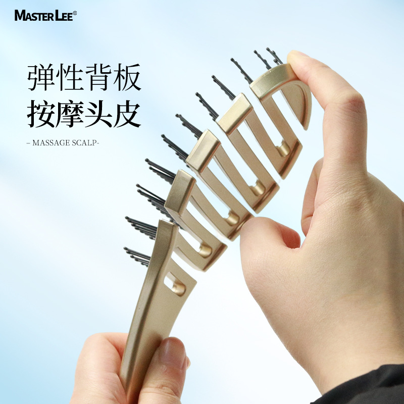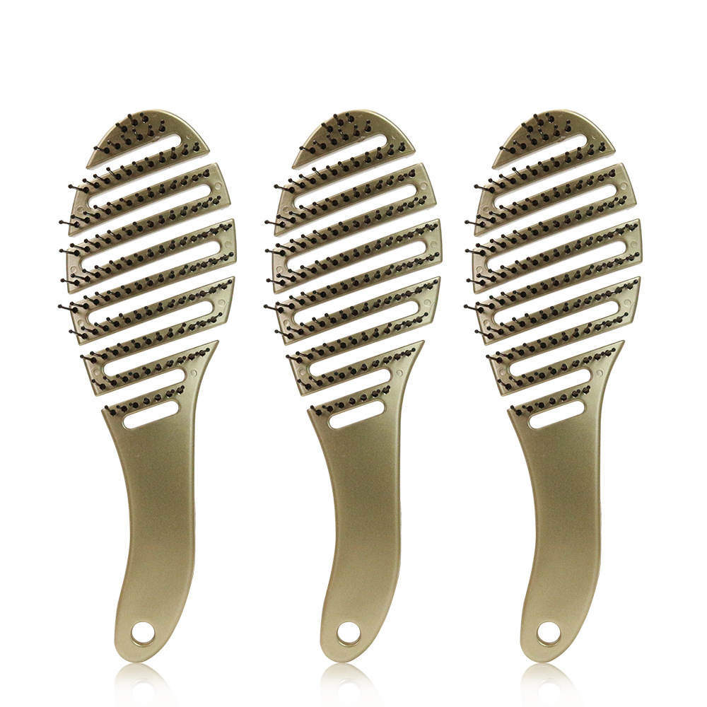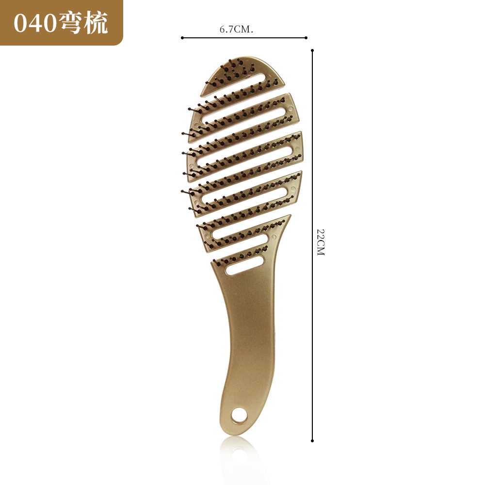 跨境弯型按摩排骨梳电镀塑料镂空梳不打结美发顺发梳子外贸批发