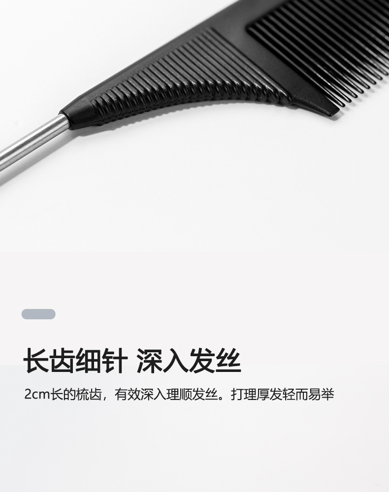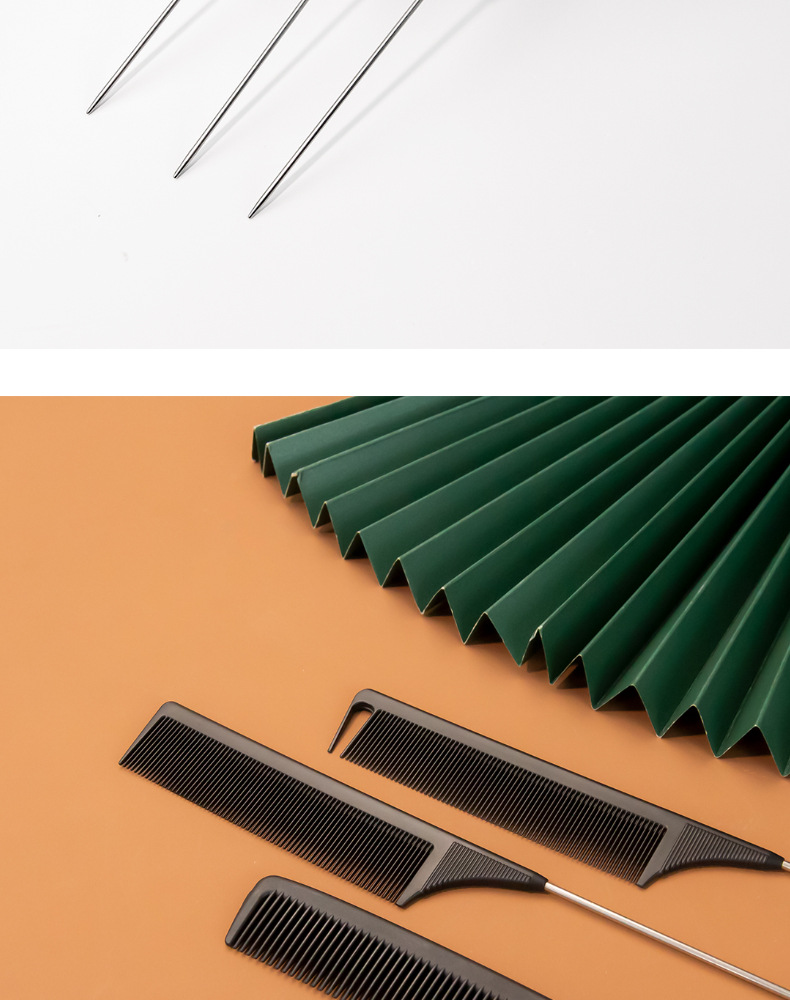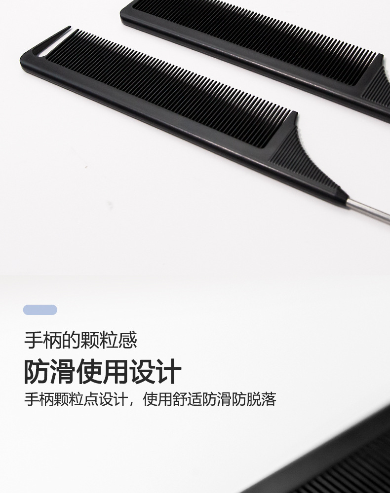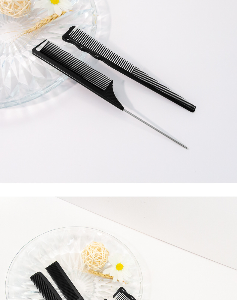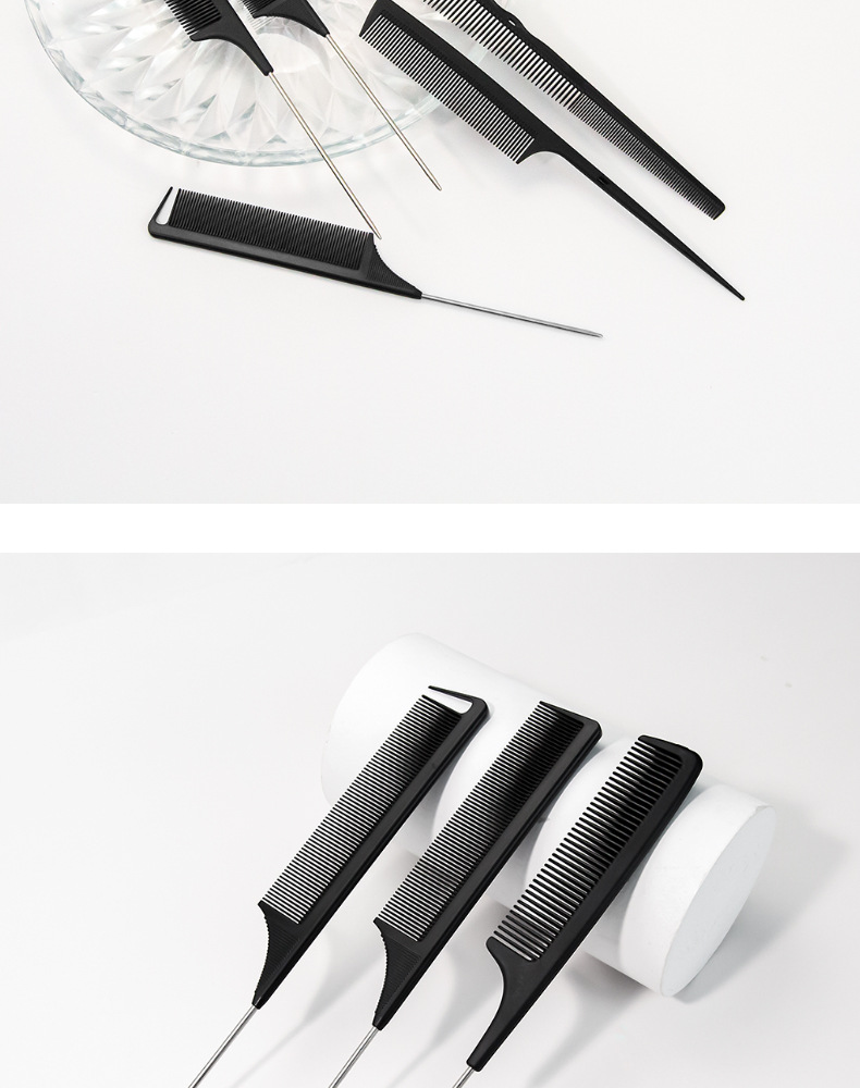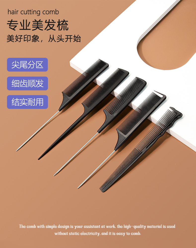 跨境钢针尖尾梳超入发耐高温剪发梳ABS黑色美发专业造型梳子批发