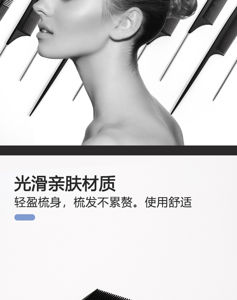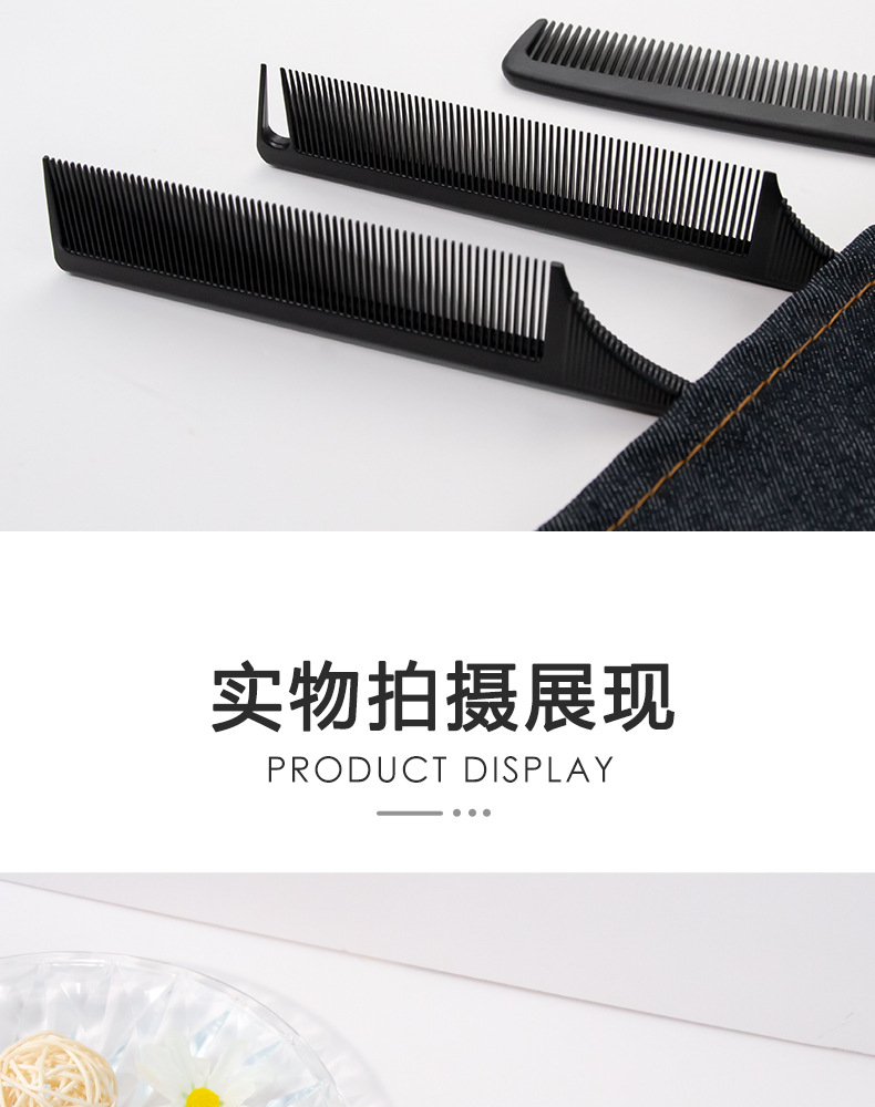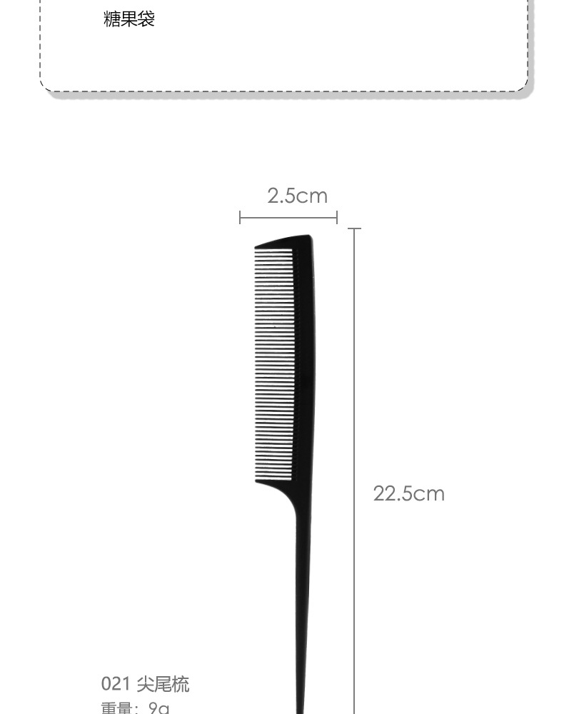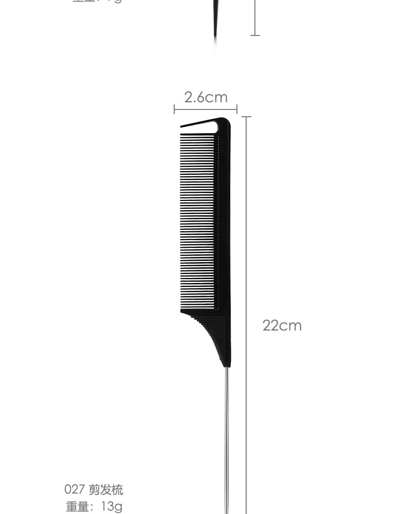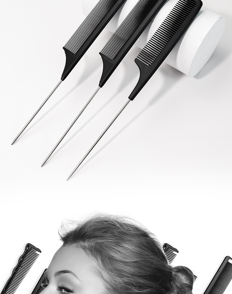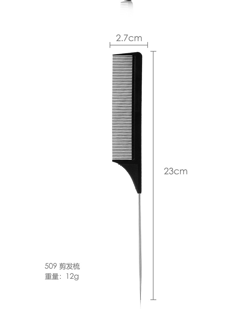 跨境钢针尖尾梳超入发耐高温剪发梳ABS黑色美发专业造型梳子批发