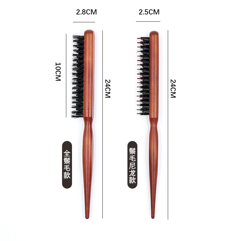 跨境批发猪鬃毛三排梳美发工具尼龙齿造型打毛梳盘发晚装尖尾梳子