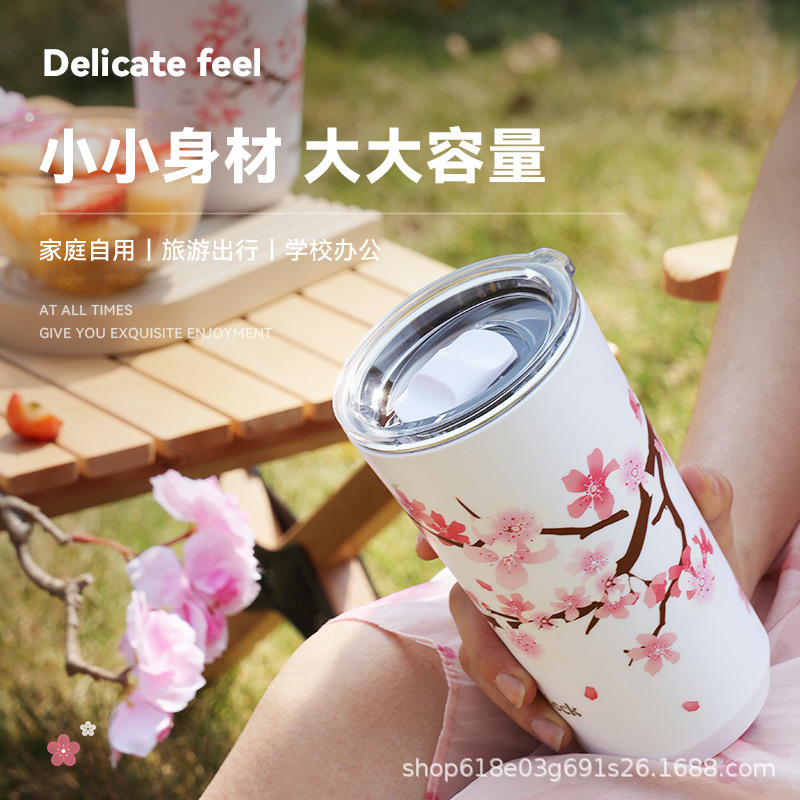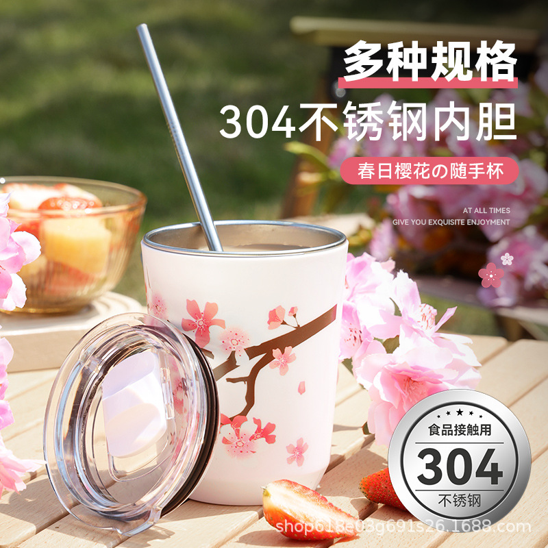 春日樱花随手杯网红可爱吸管杯高颜值学生便携水杯女ins创意咖啡