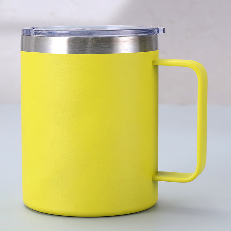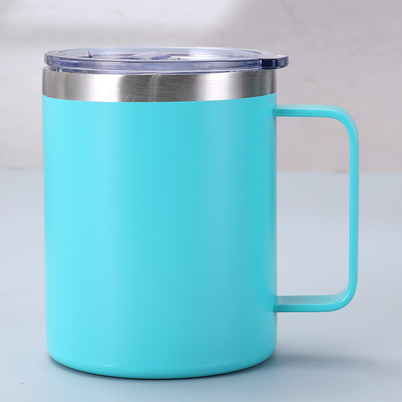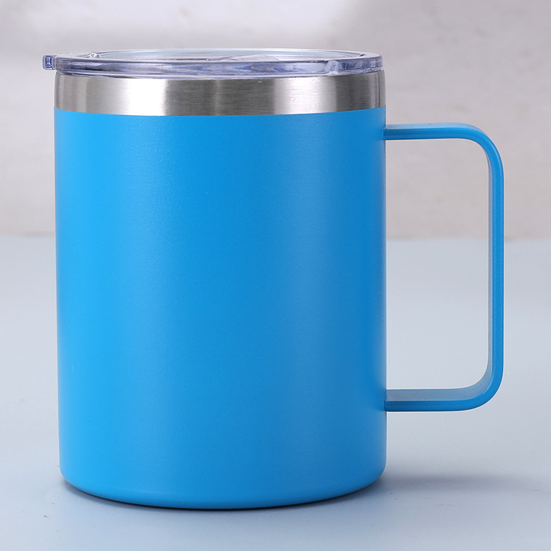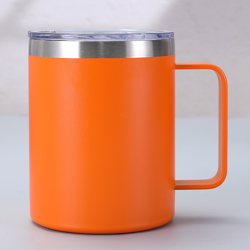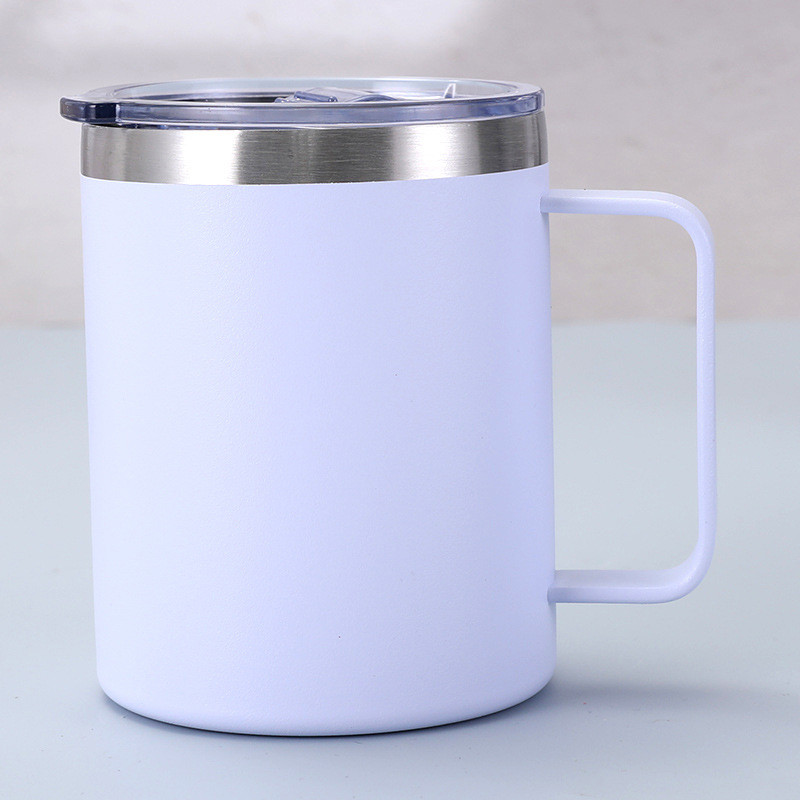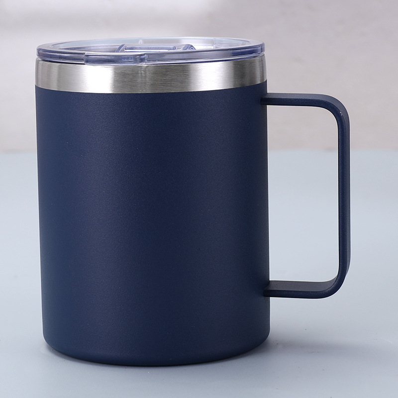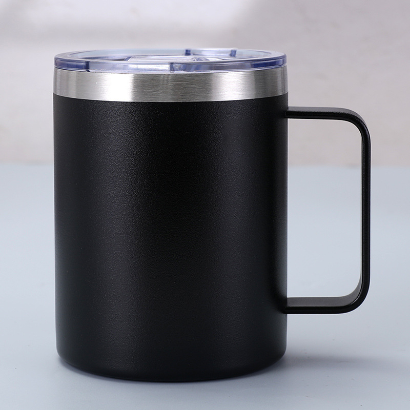跨境12oz带手柄办公马克杯双层真空不锈钢保温杯户外便携随行杯