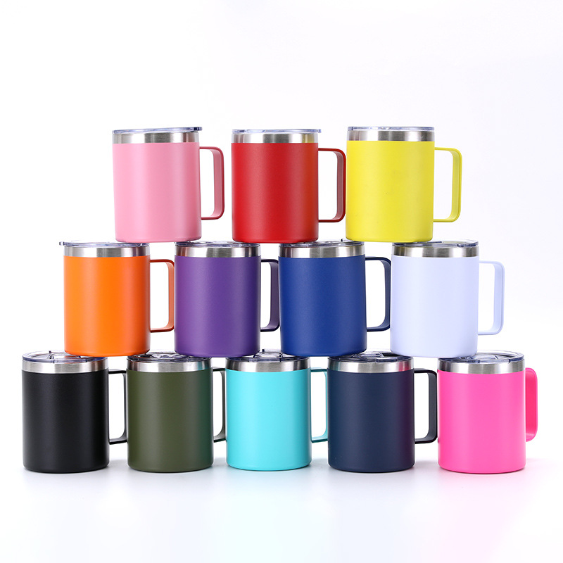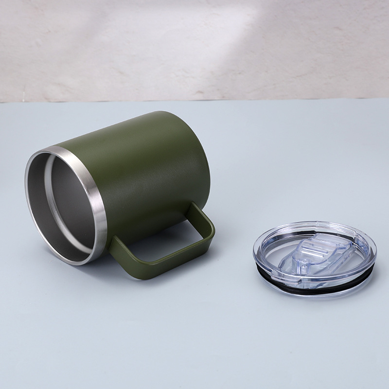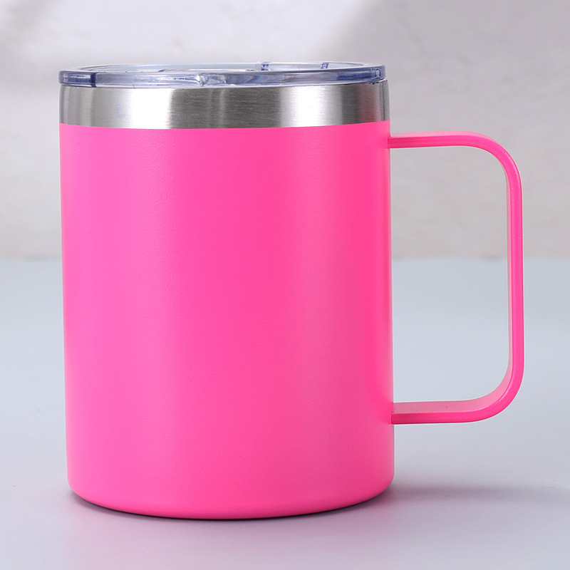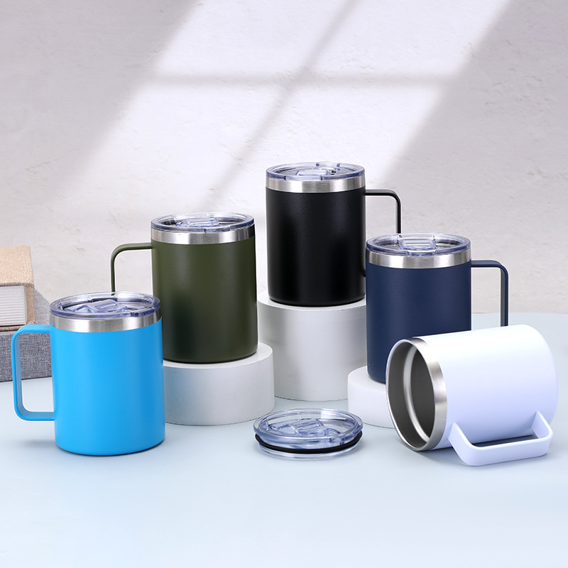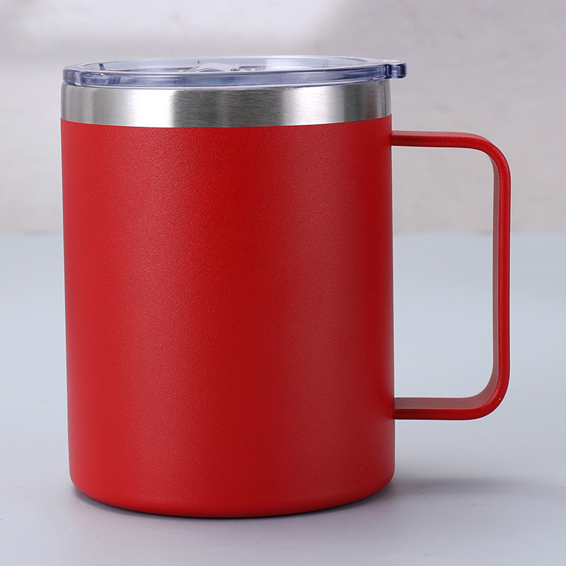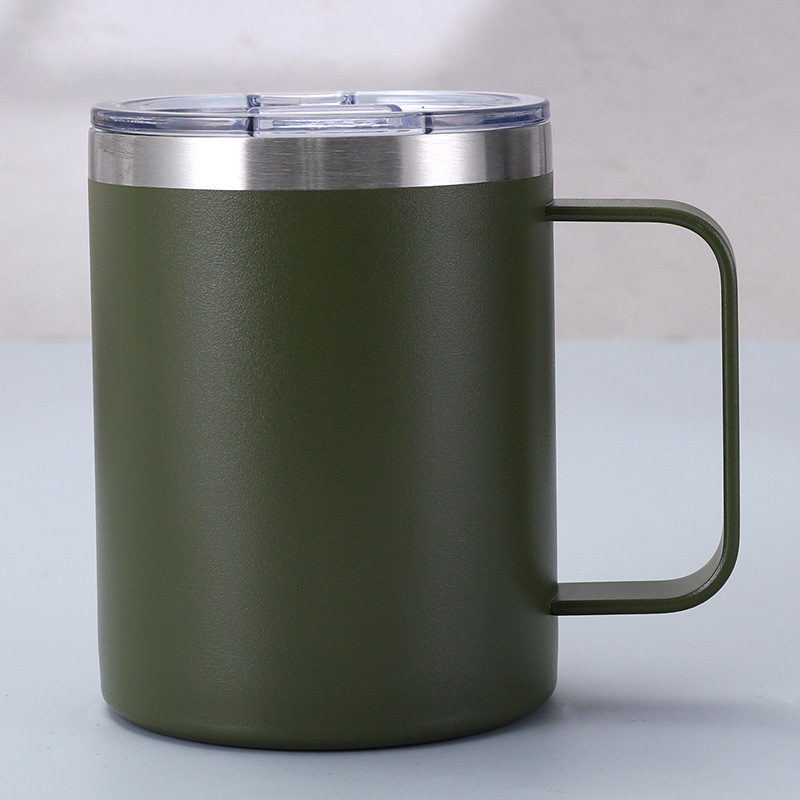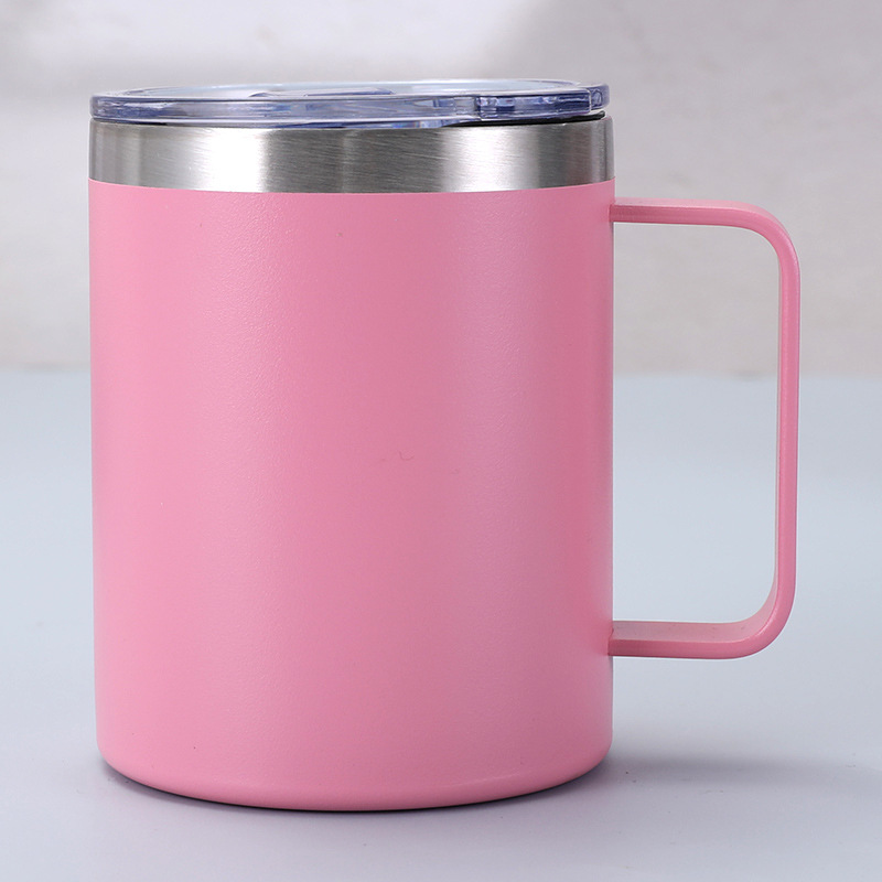 跨境12oz带手柄办公马克杯双层真空不锈钢保温杯户外便携随行杯