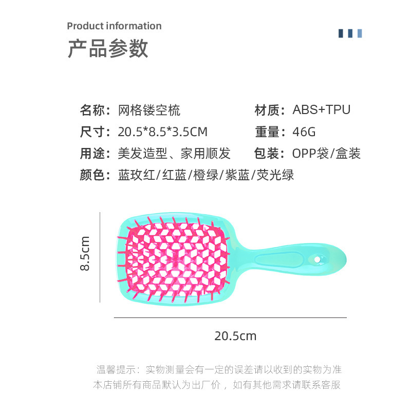 铂飞工厂美发快干蜂窝梳子折叠梳顺发排骨梳网格镂空梳批发发型梳
