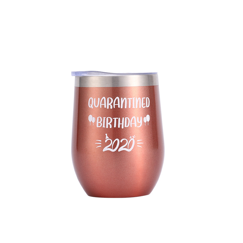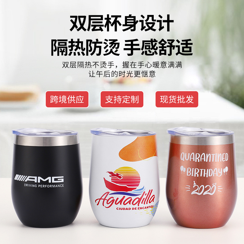 跨境亚马逊304不锈钢蛋壳杯12oz保温杯U型红酒杯大肚鸡蛋杯印LOGO