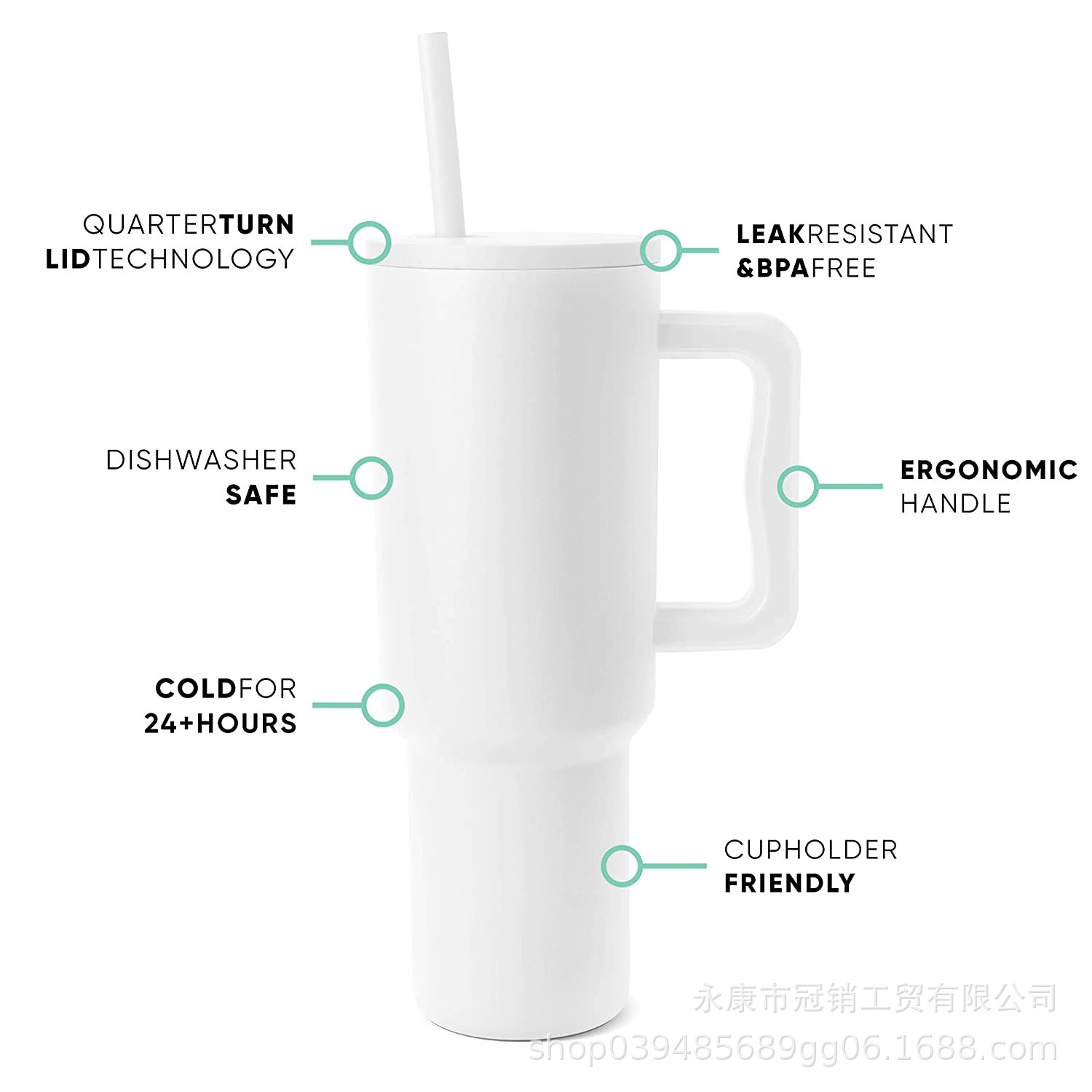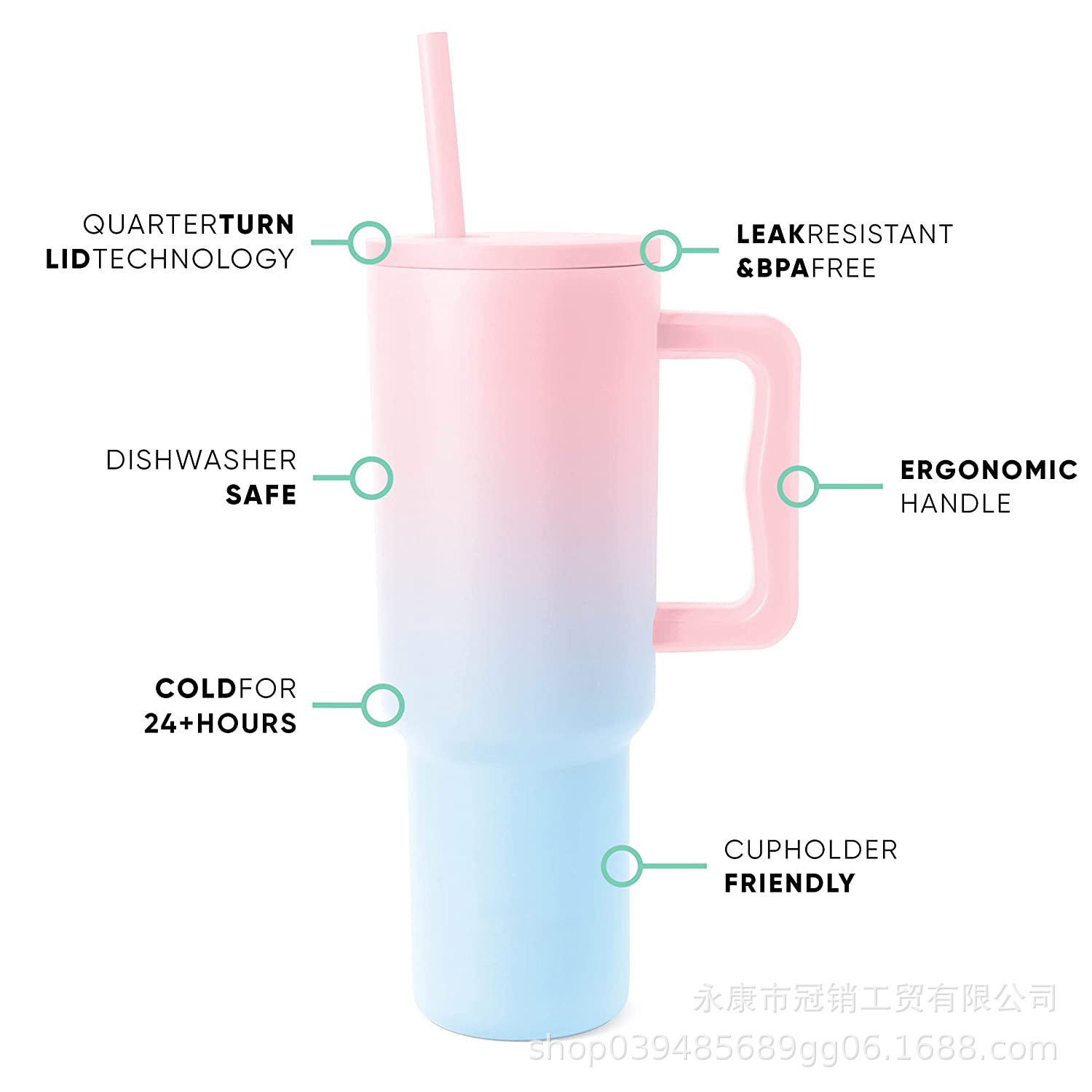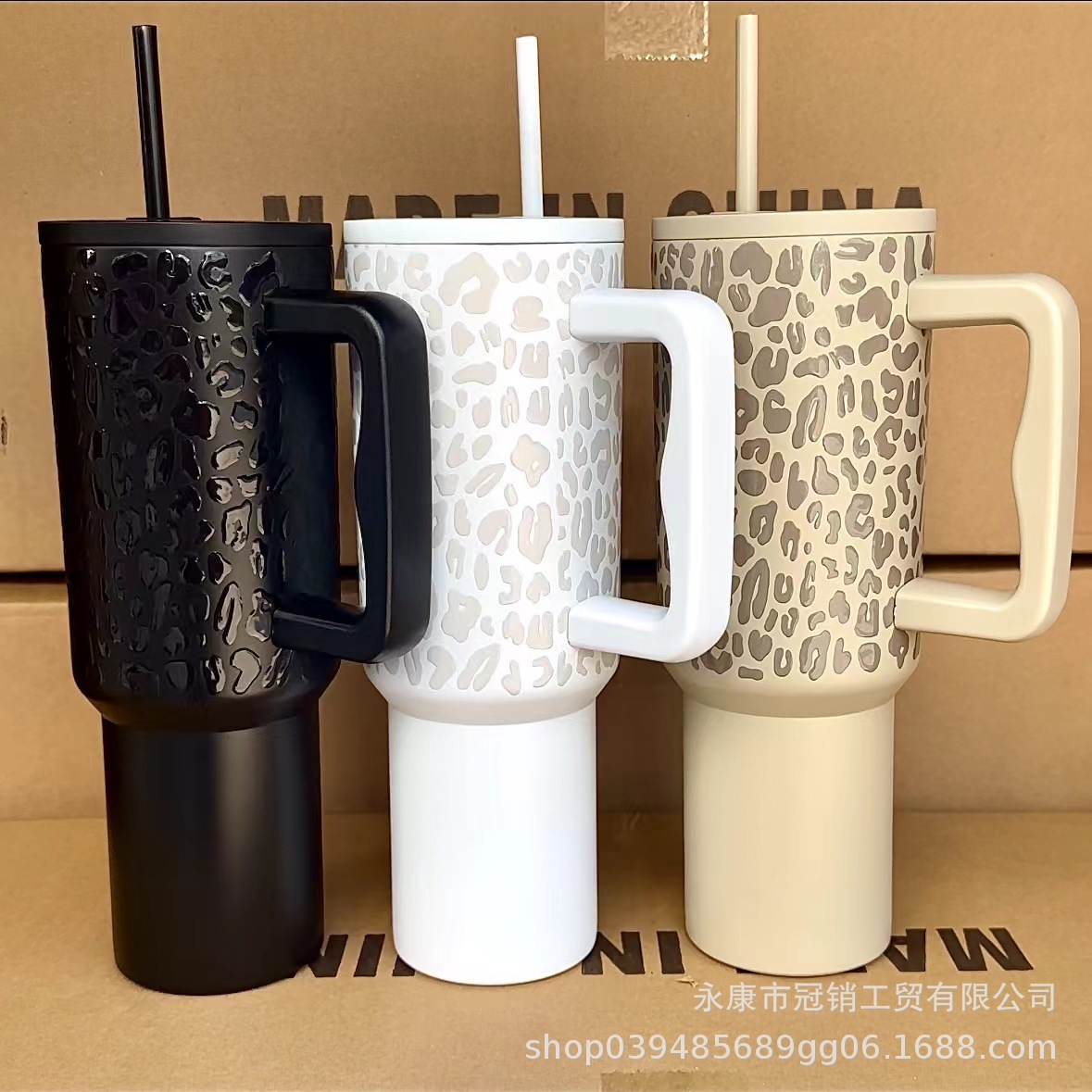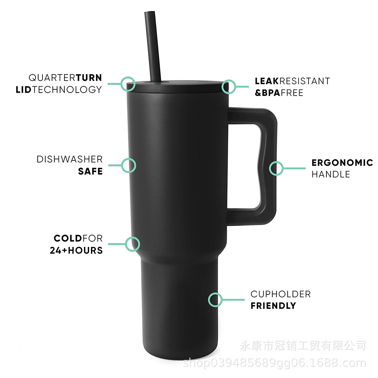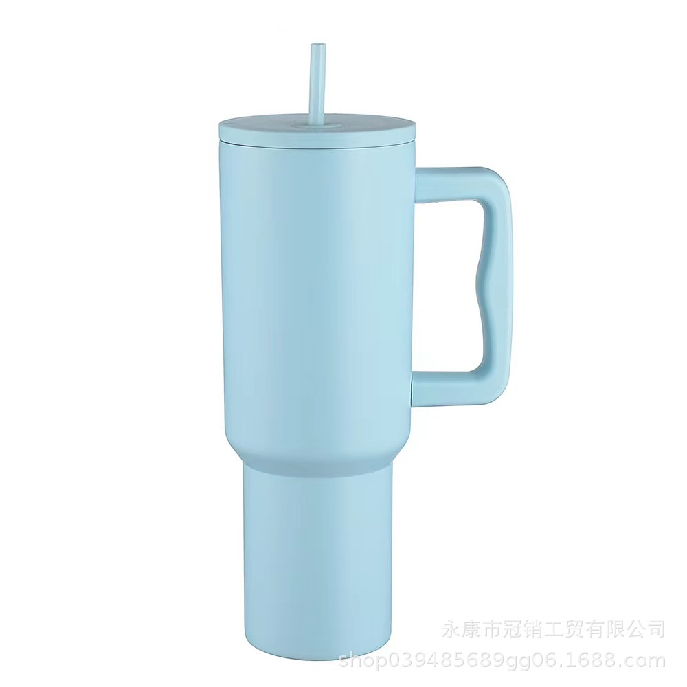 跨境新款40oz汽车杯手柄杯冰霸杯吸管杯亚马逊带吸管大容量保温杯