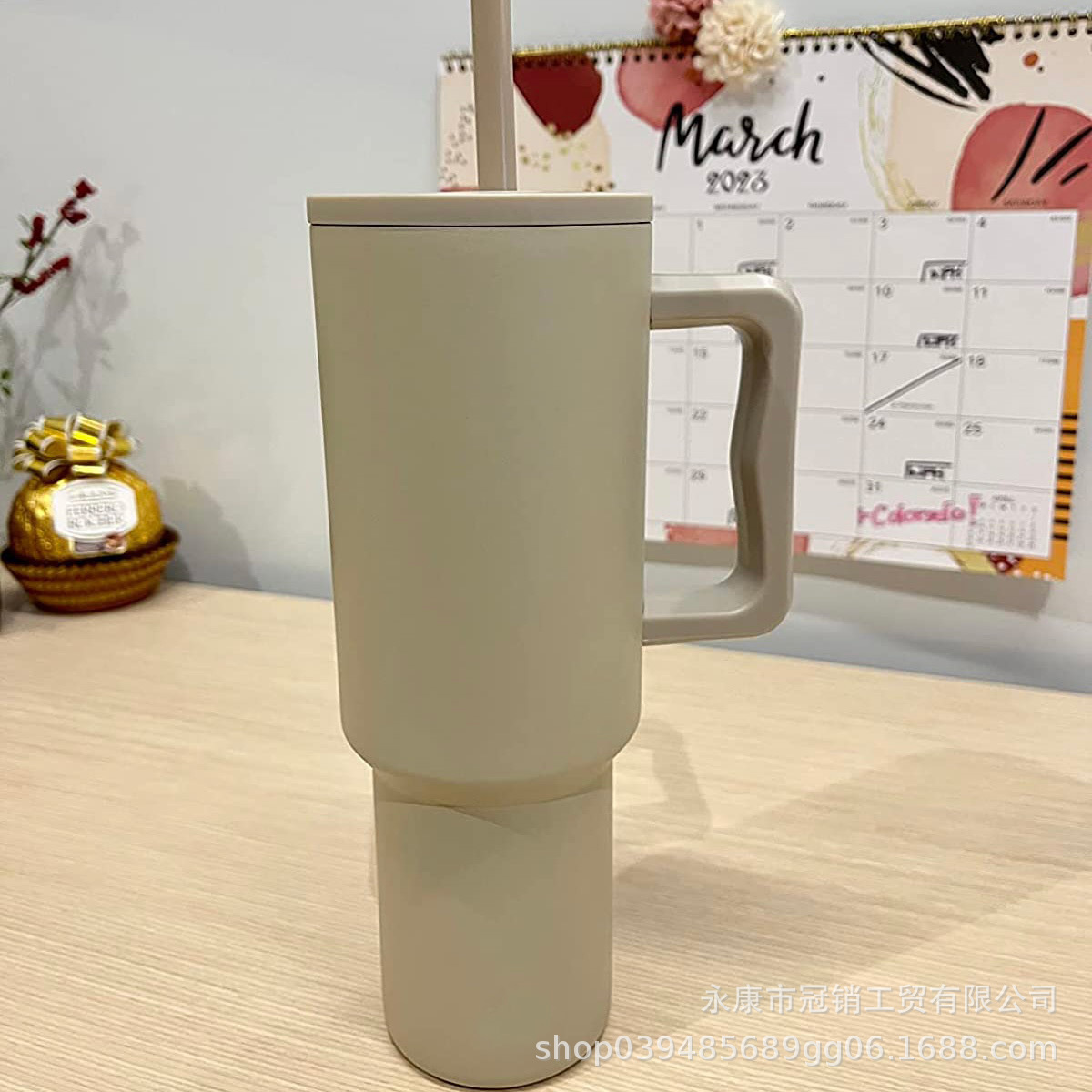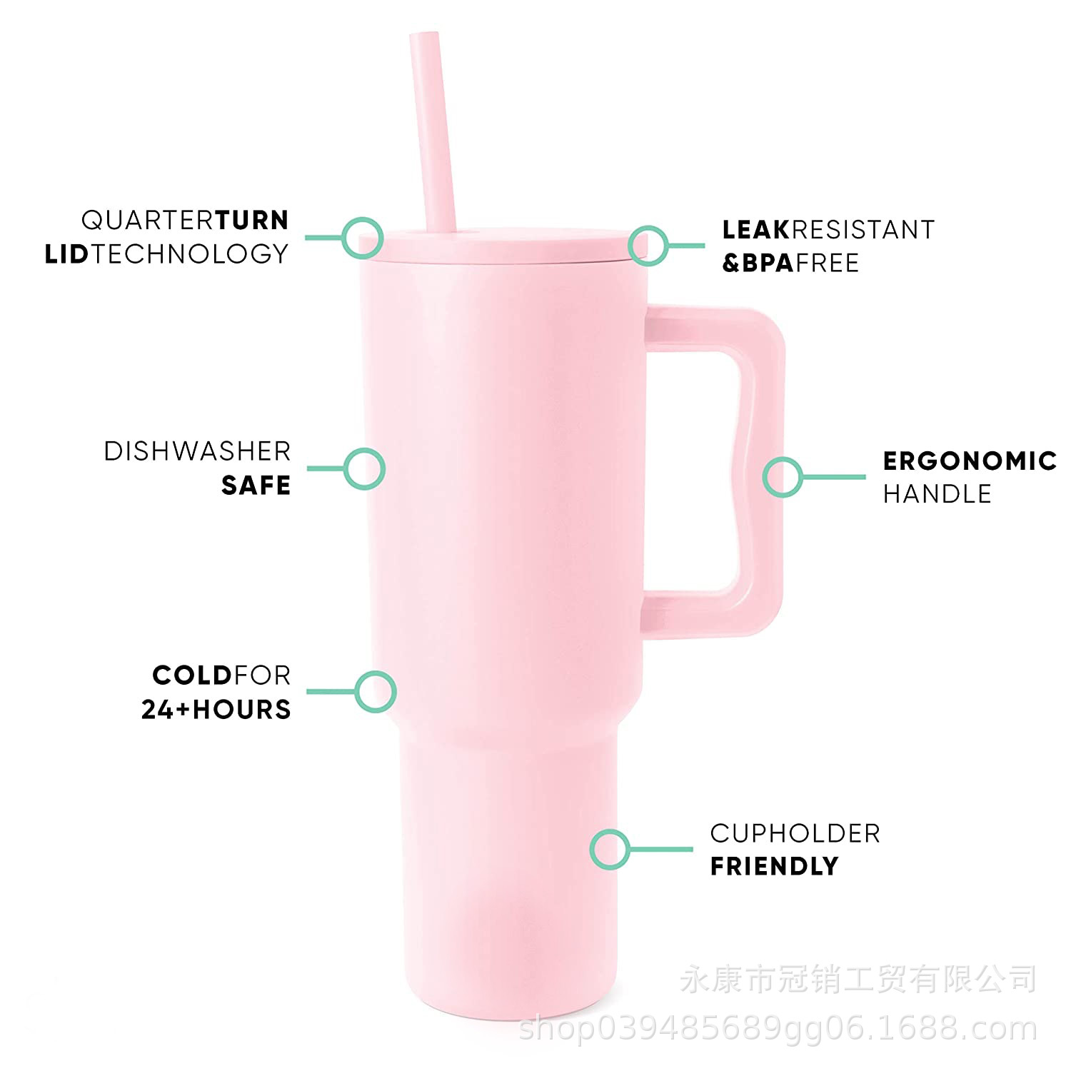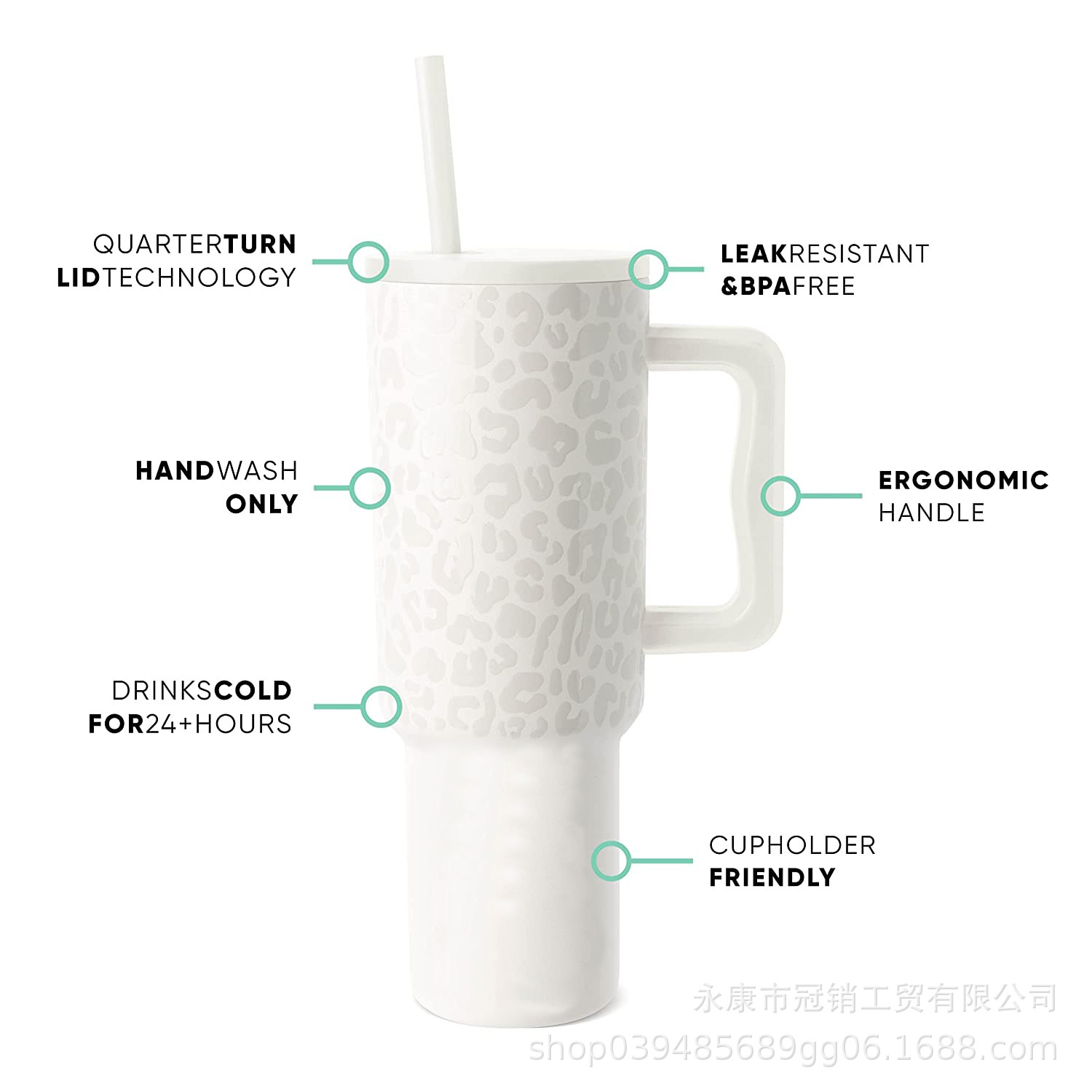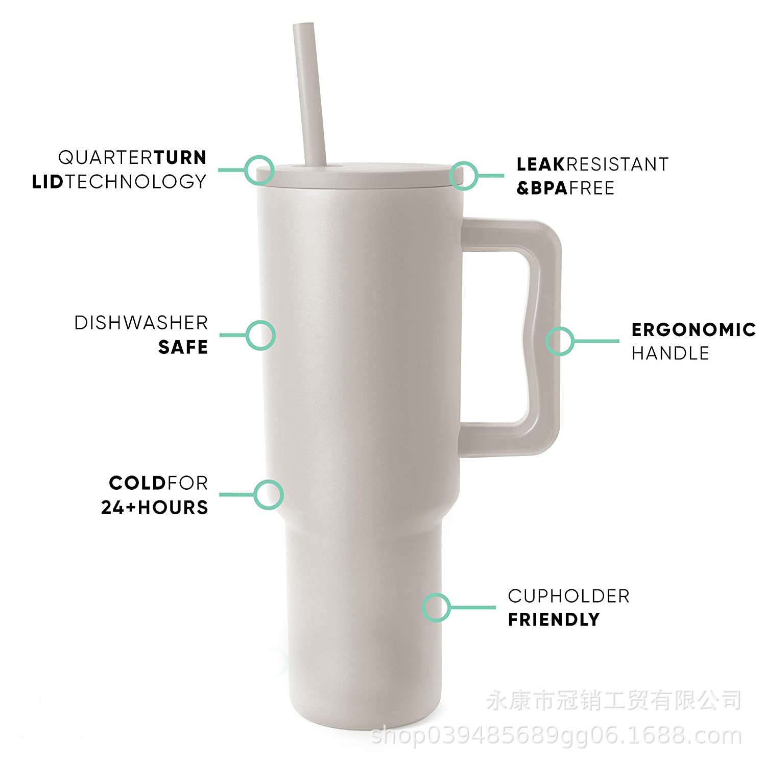 跨境新款40oz汽车杯手柄杯冰霸杯吸管杯亚马逊带吸管大容量保温杯