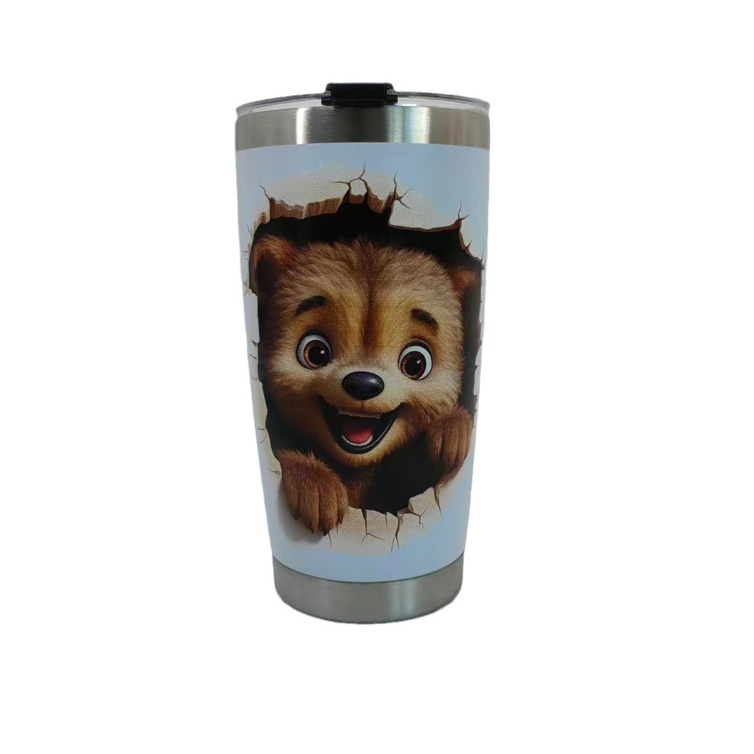 亚马逊新款动物款20oz密封盖可乐杯双面5D304不锈钢保温杯批发