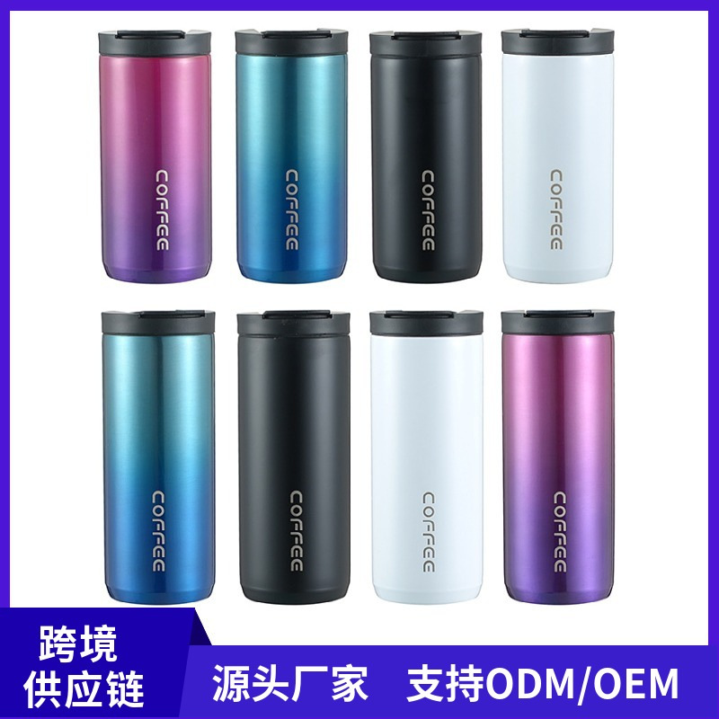 跨境亚马逊咖啡杯304不锈钢真空保温杯车载便携直身水杯礼品logo