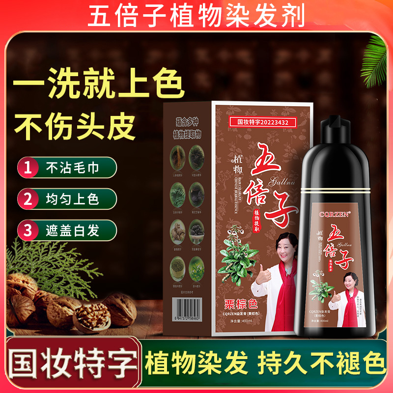 染发膏植物不伤发黑茶色免漂染发剂自己在家染发流行色泡泡染