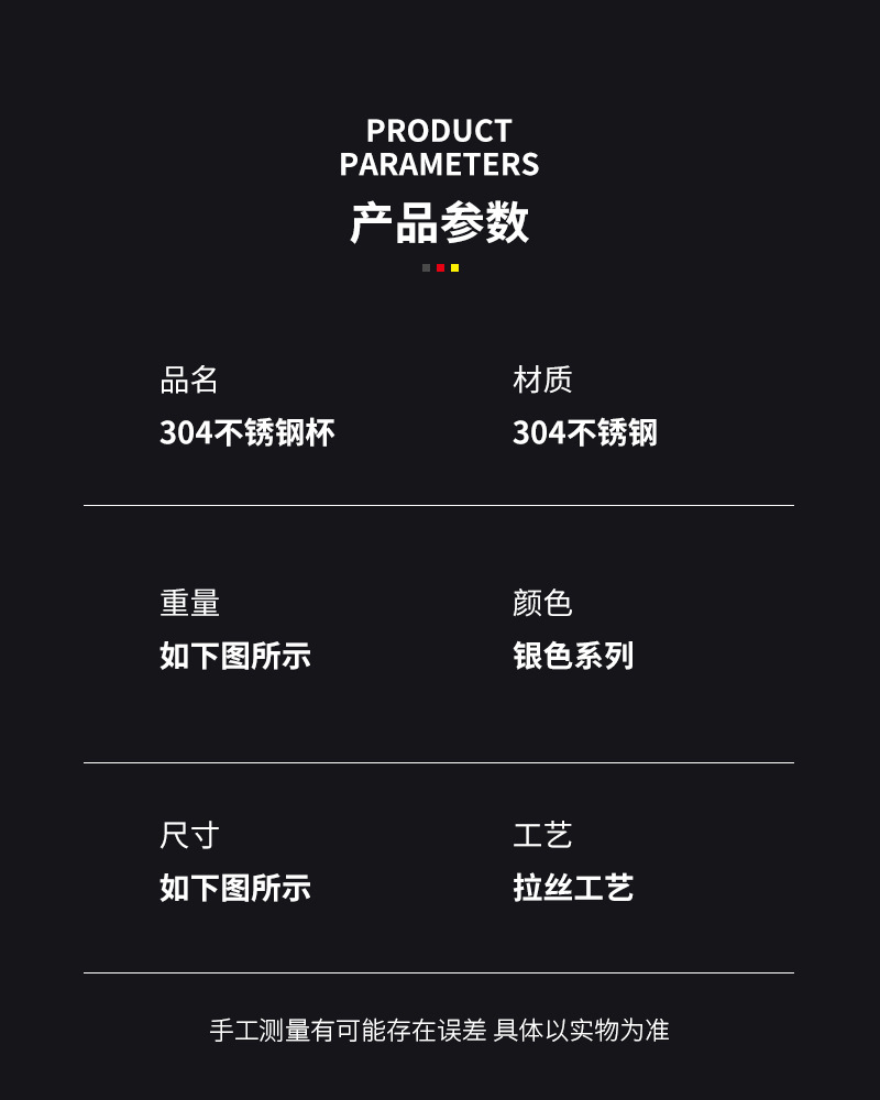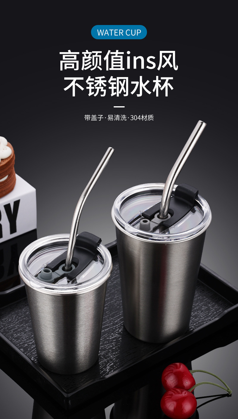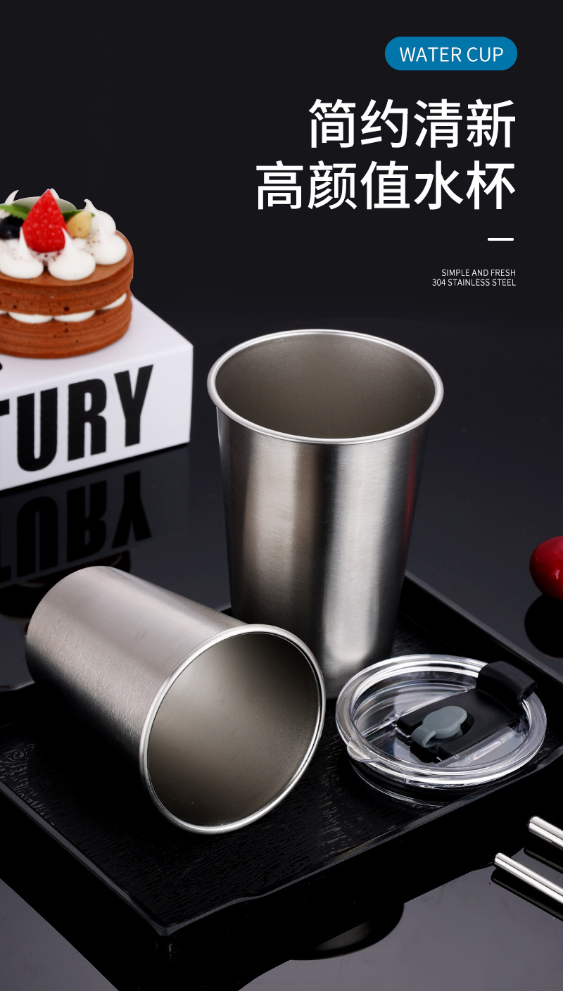 跨境304不锈钢杯子大容量咖啡杯防摔啤酒杯茶杯随行杯水杯套装