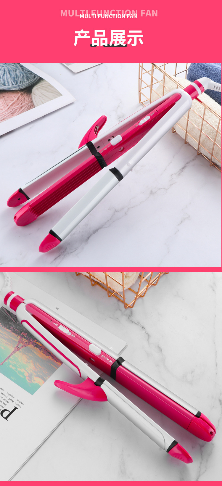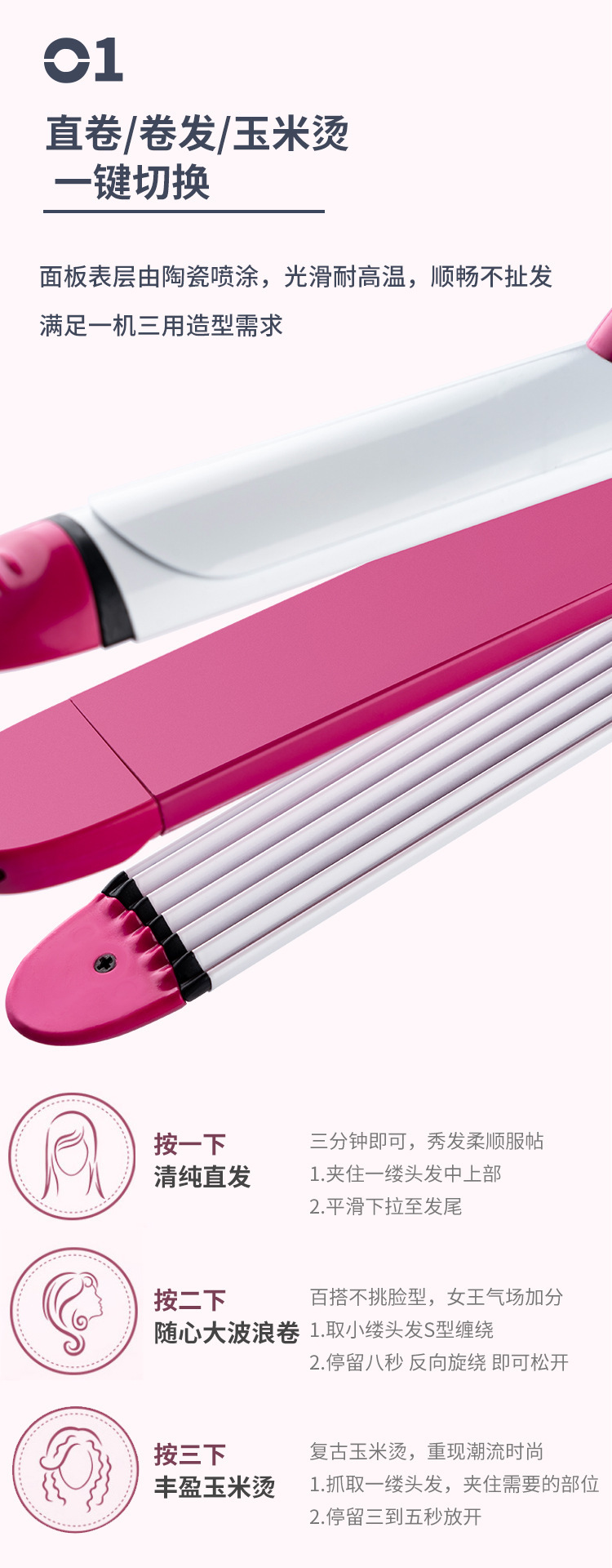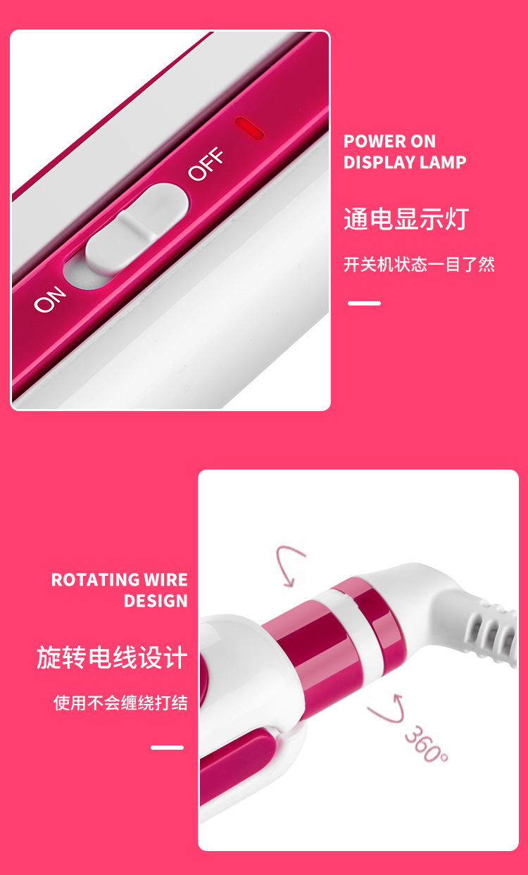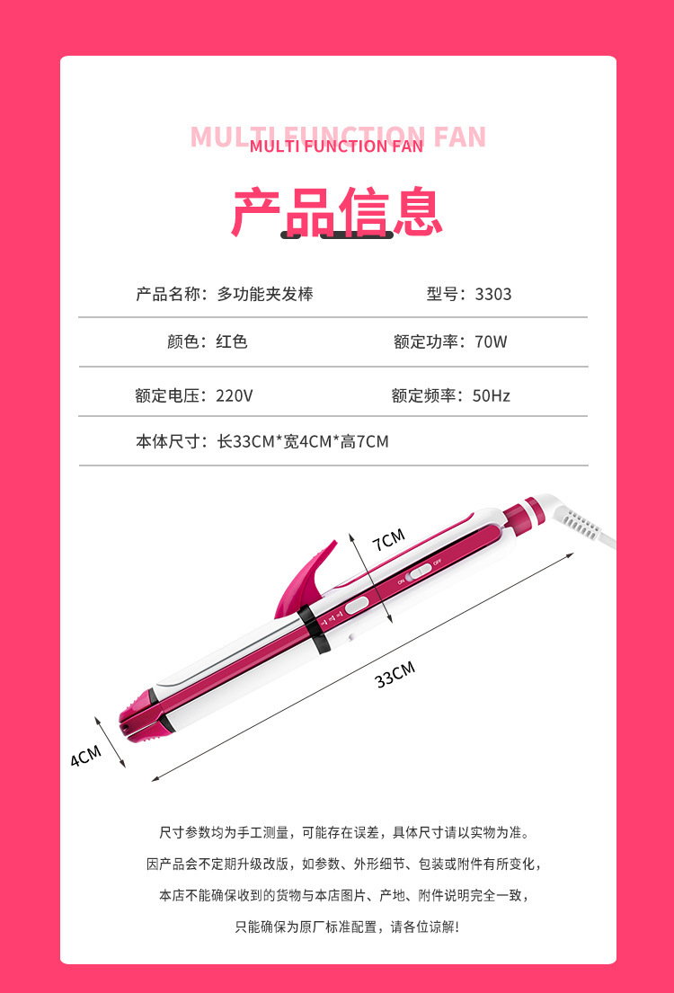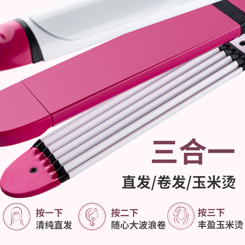 厂家直供跨境现货欧规多功能三合一卷发棒直发卷发两用不伤发夹板