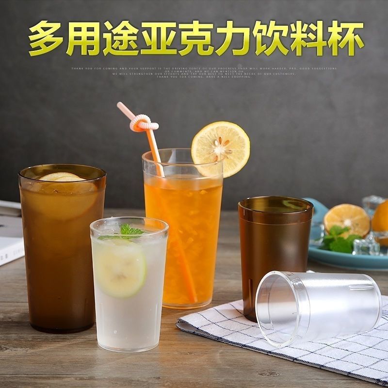 塑料杯10只装亚克力塑料水杯餐厅磨砂茶杯子奶茶饮料杯啤酒杯