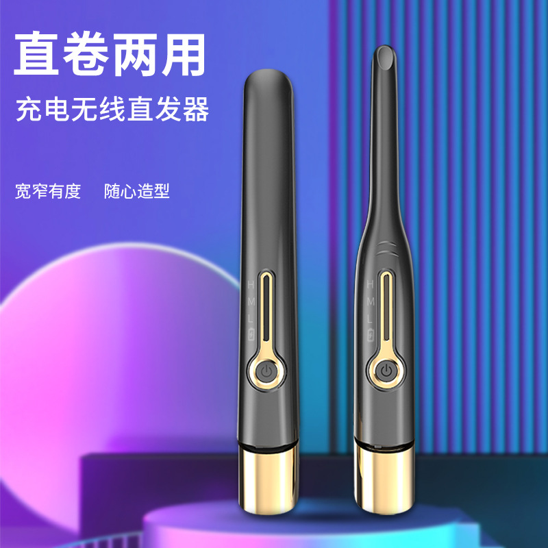 2024升级款跨境便携式充电无线直发器卷发棒直卷两用直板夹私模