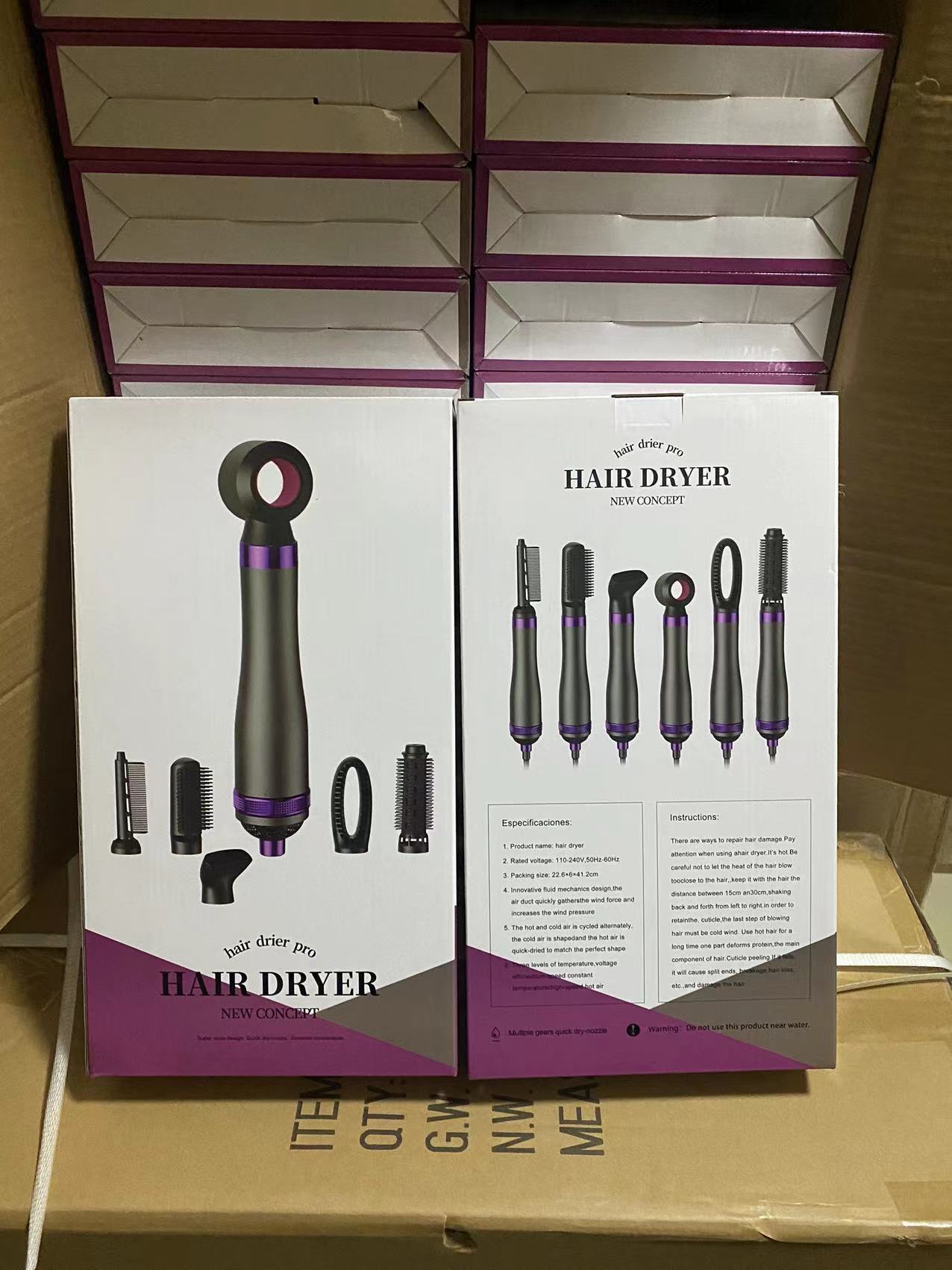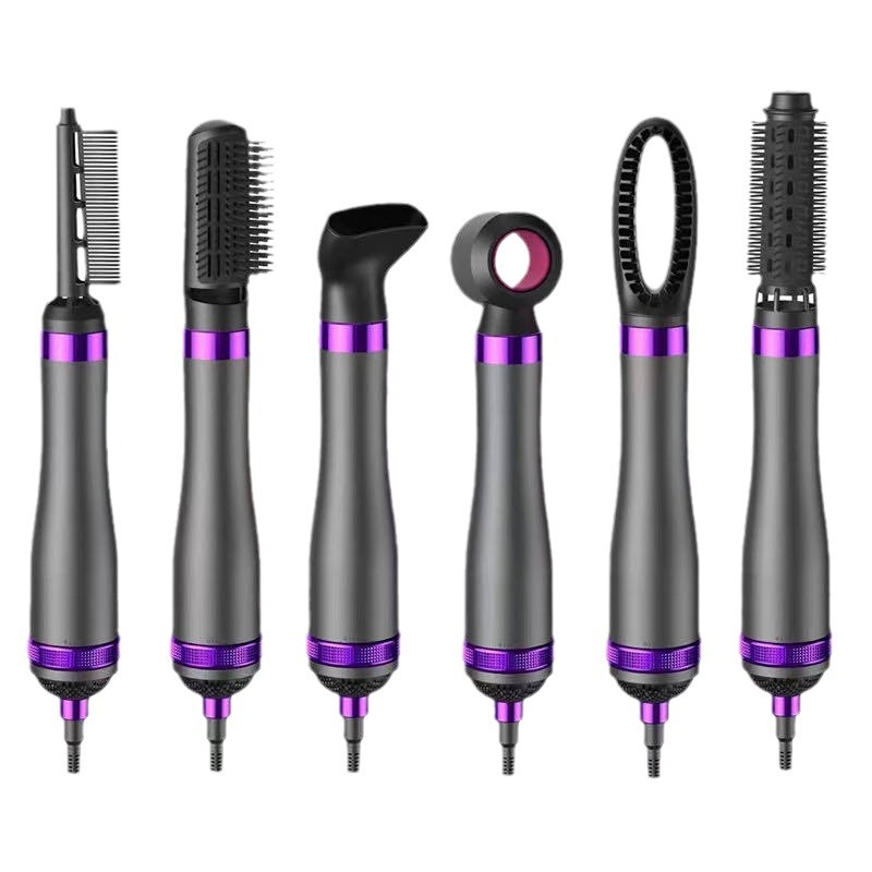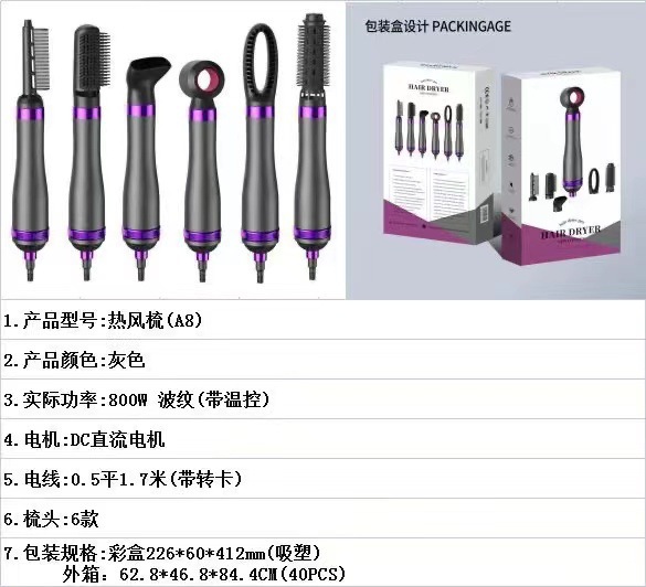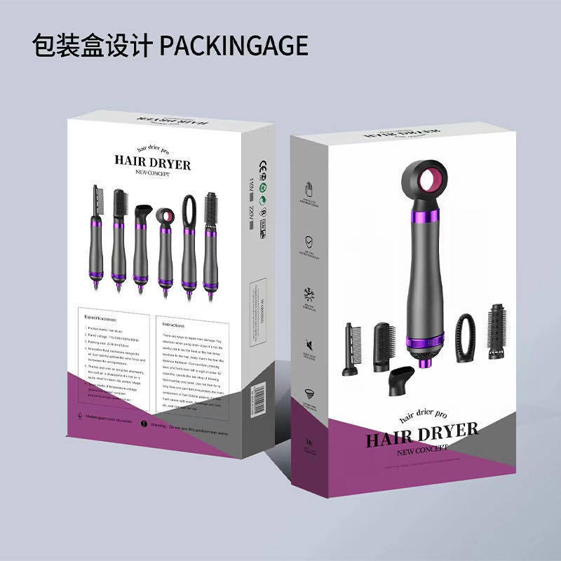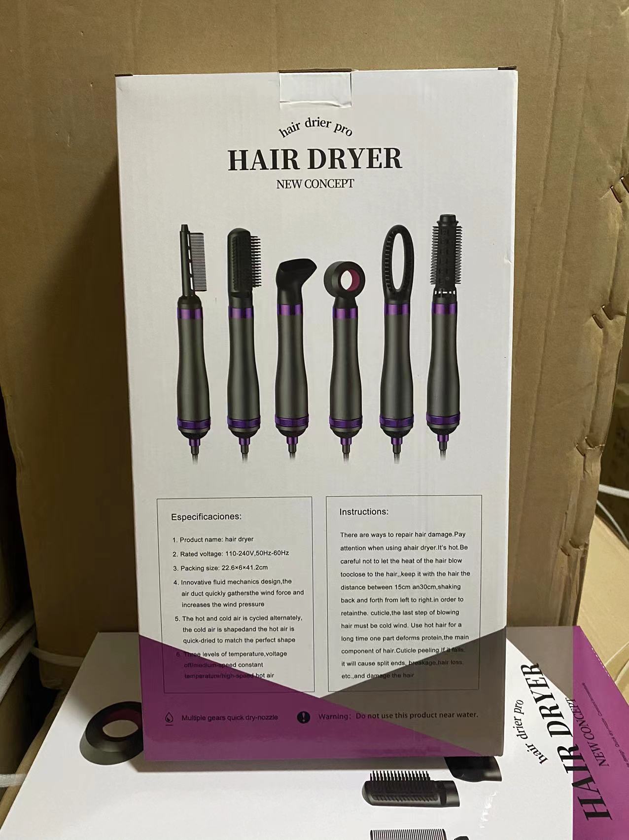 亚马逊跨境六合一热风梳美发造型梳多功能卷发棒直发梳吹风机外贸