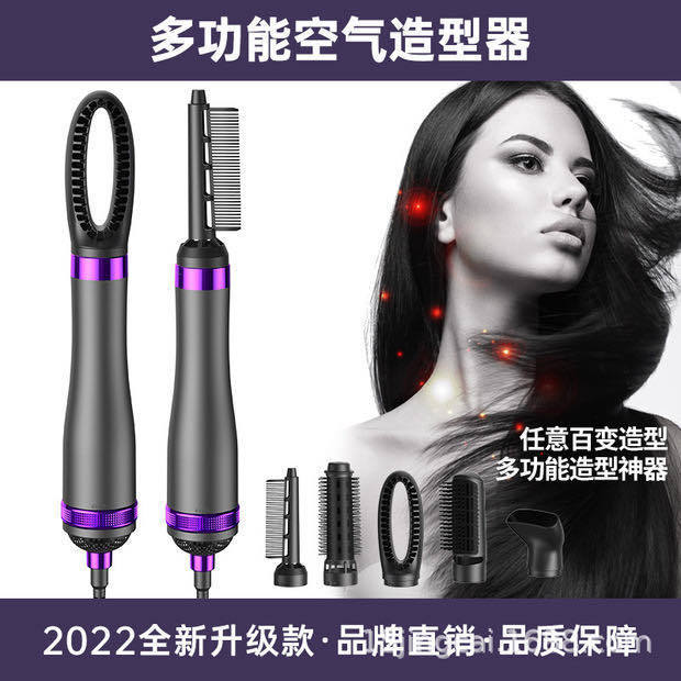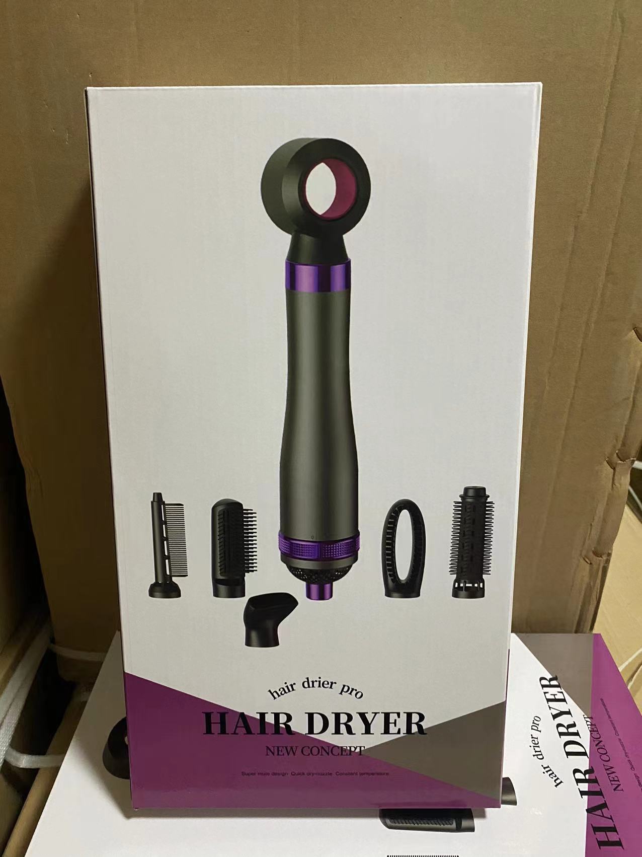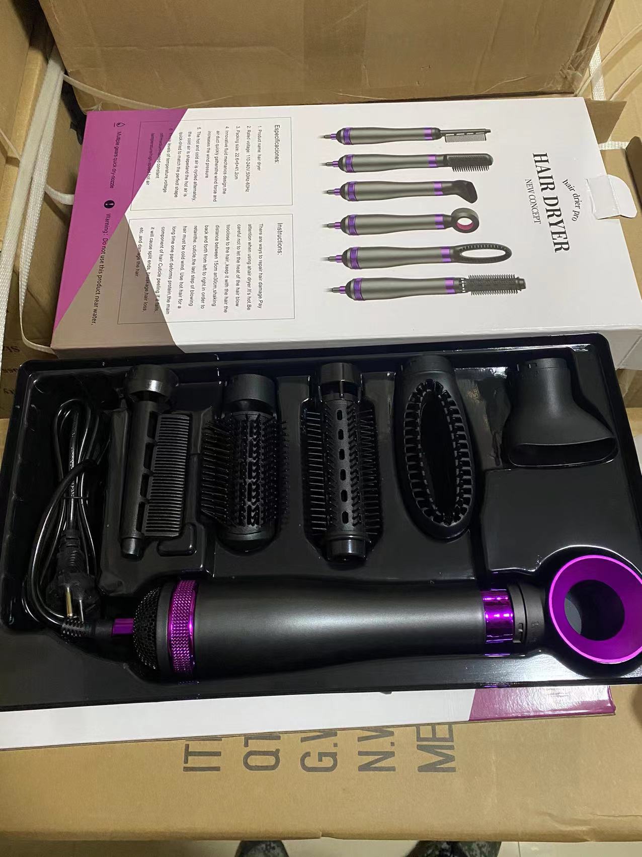 亚马逊跨境六合一热风梳美发造型梳多功能卷发棒直发梳吹风机外贸