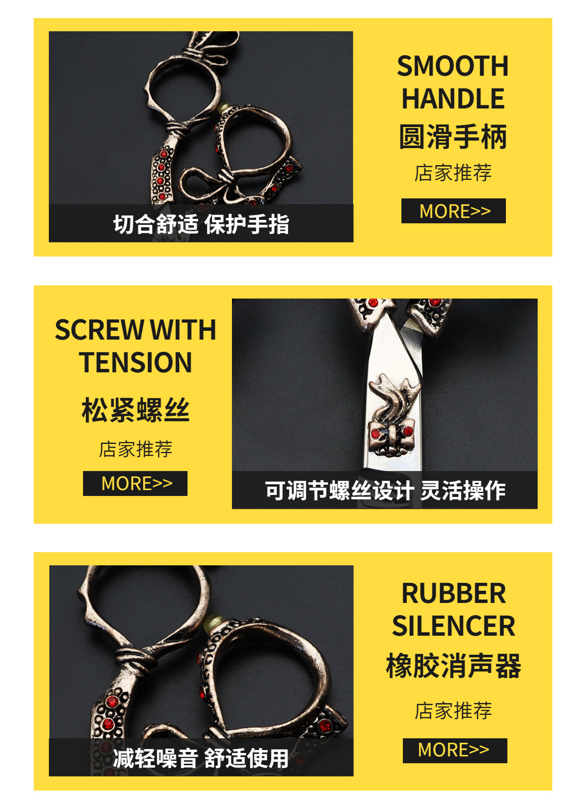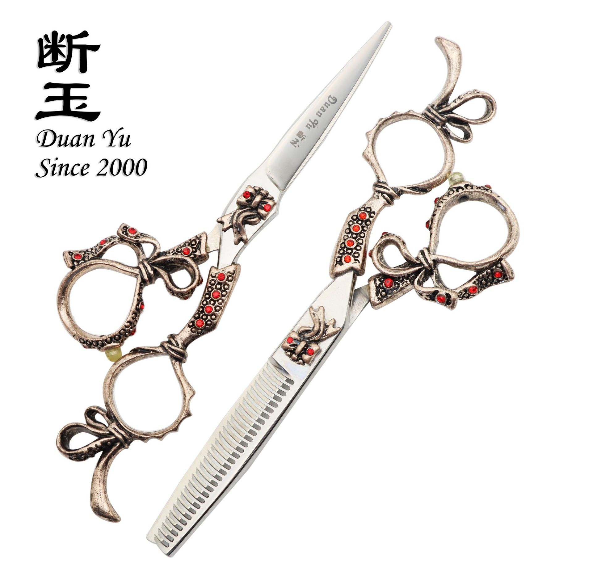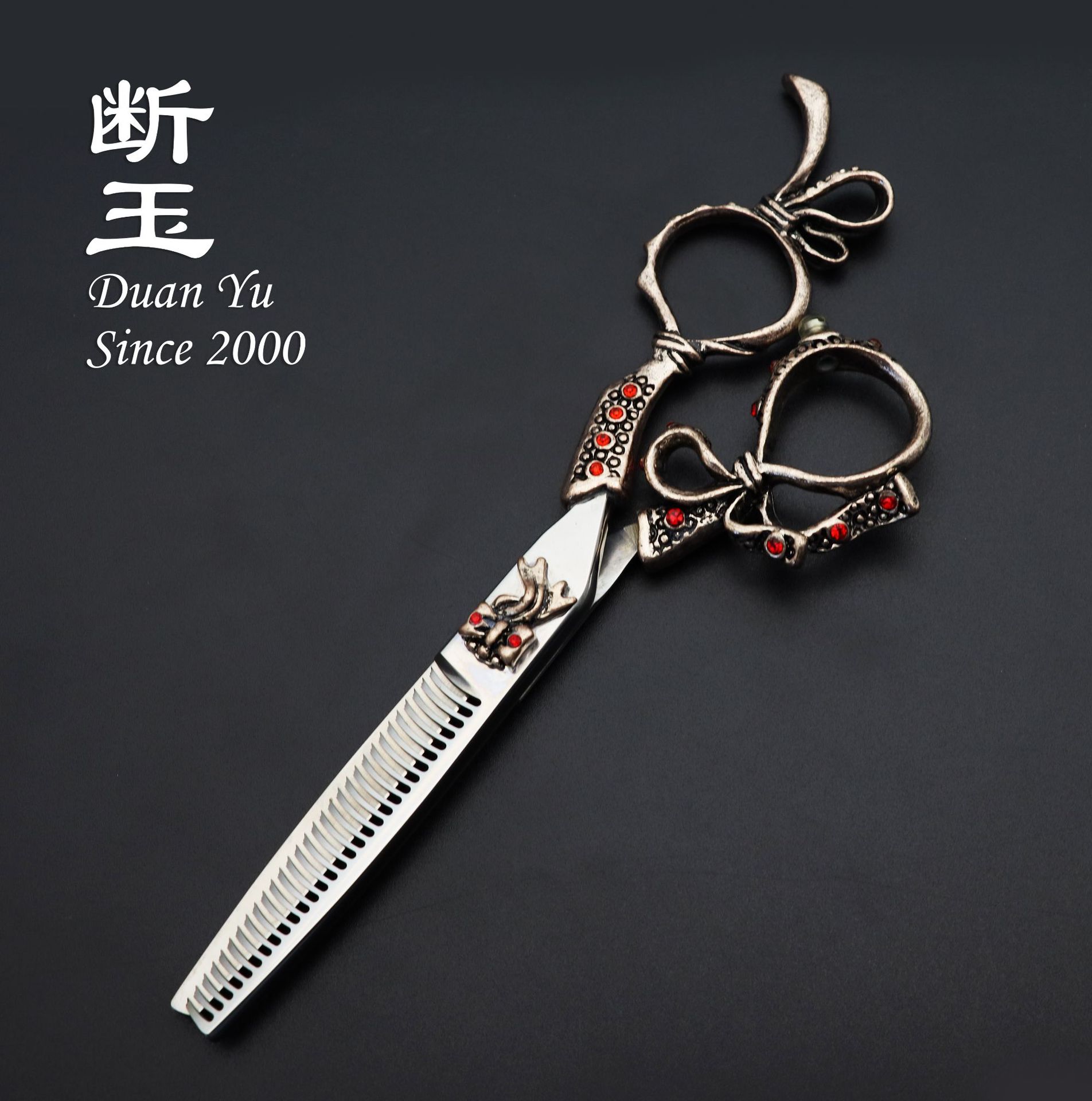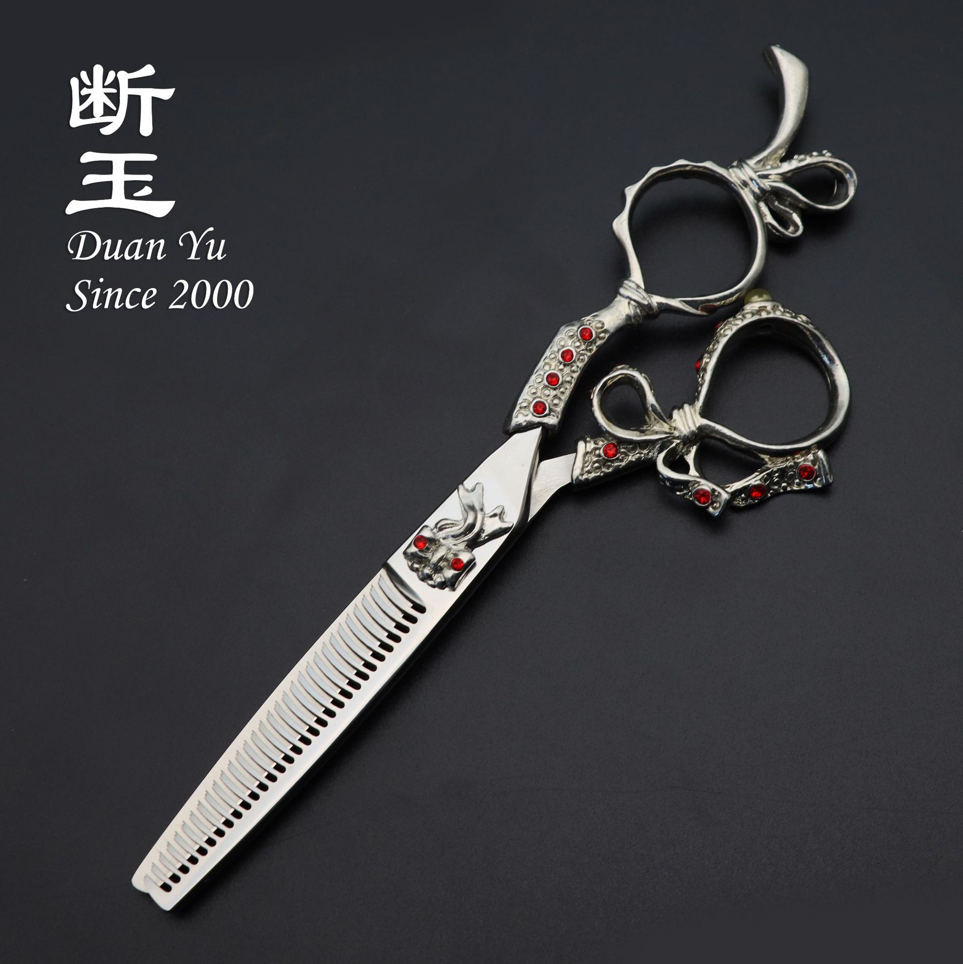 断玉高端美发剪刀蝴蝶结钻手柄理发剪刀批发6寸440C平剪牙剪理发