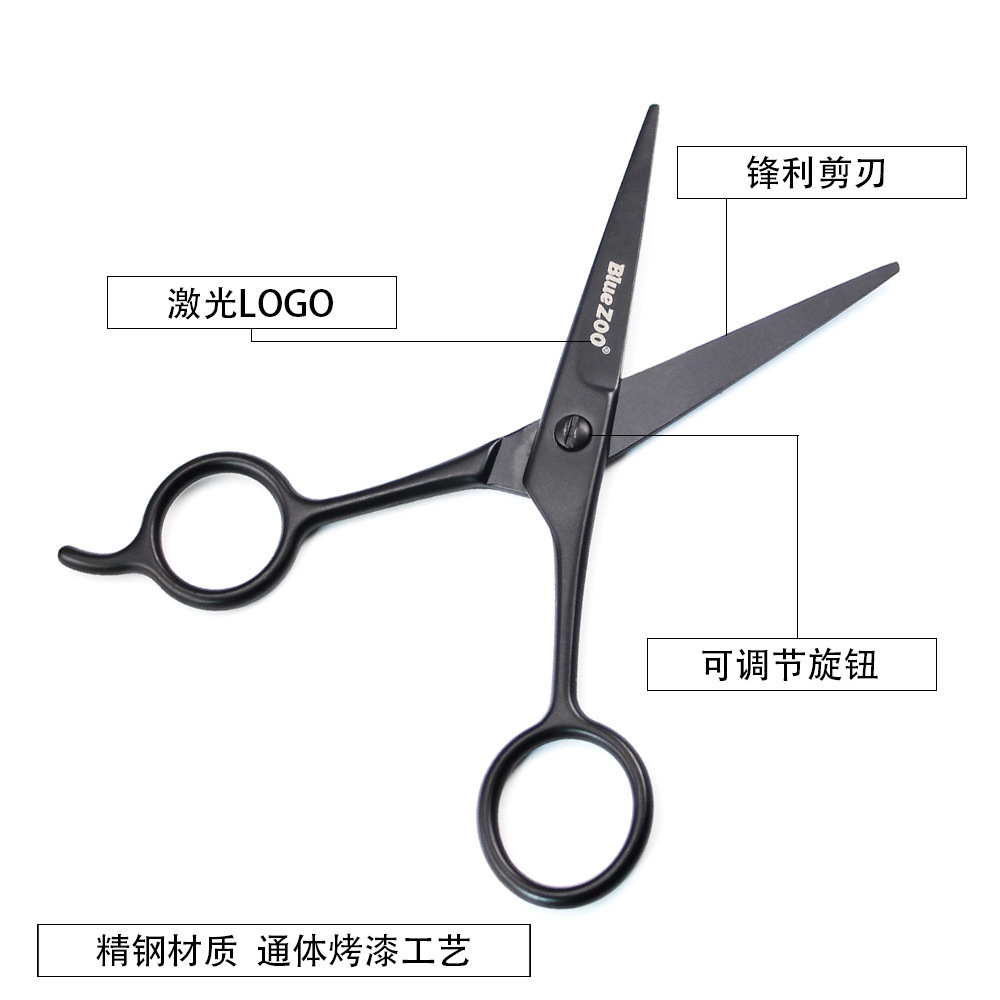 BlueZOO美容工具胡须鼻毛剪理发修眉胡子剪刀修甲死皮剪 黑12.2CM