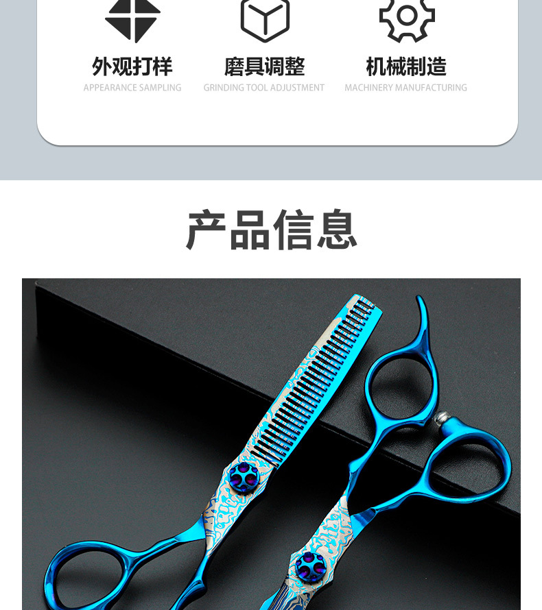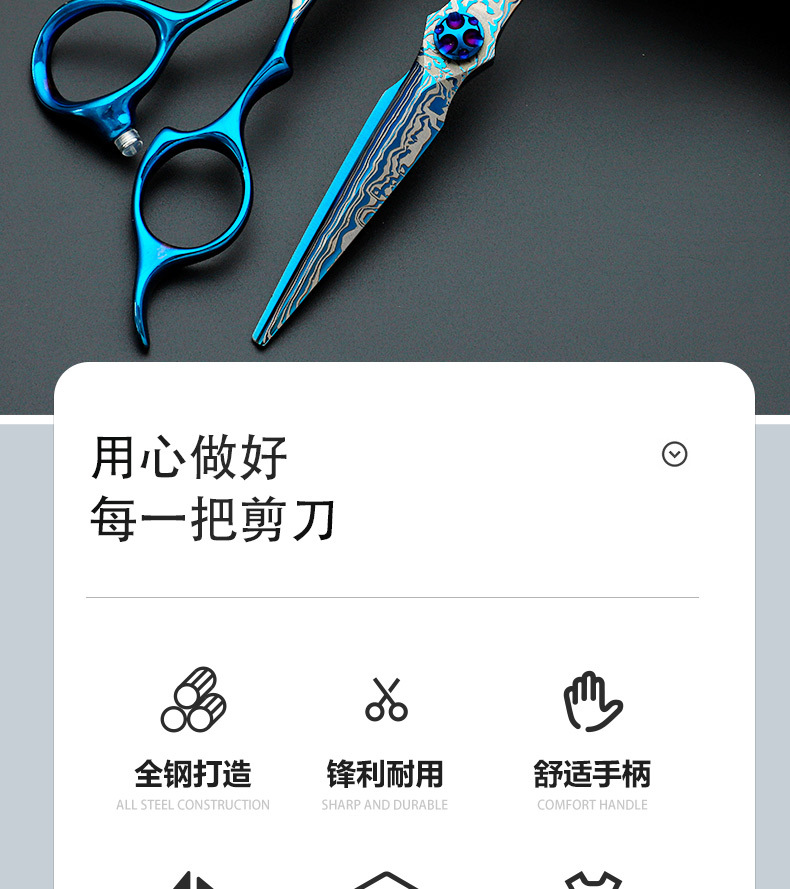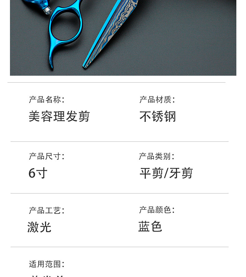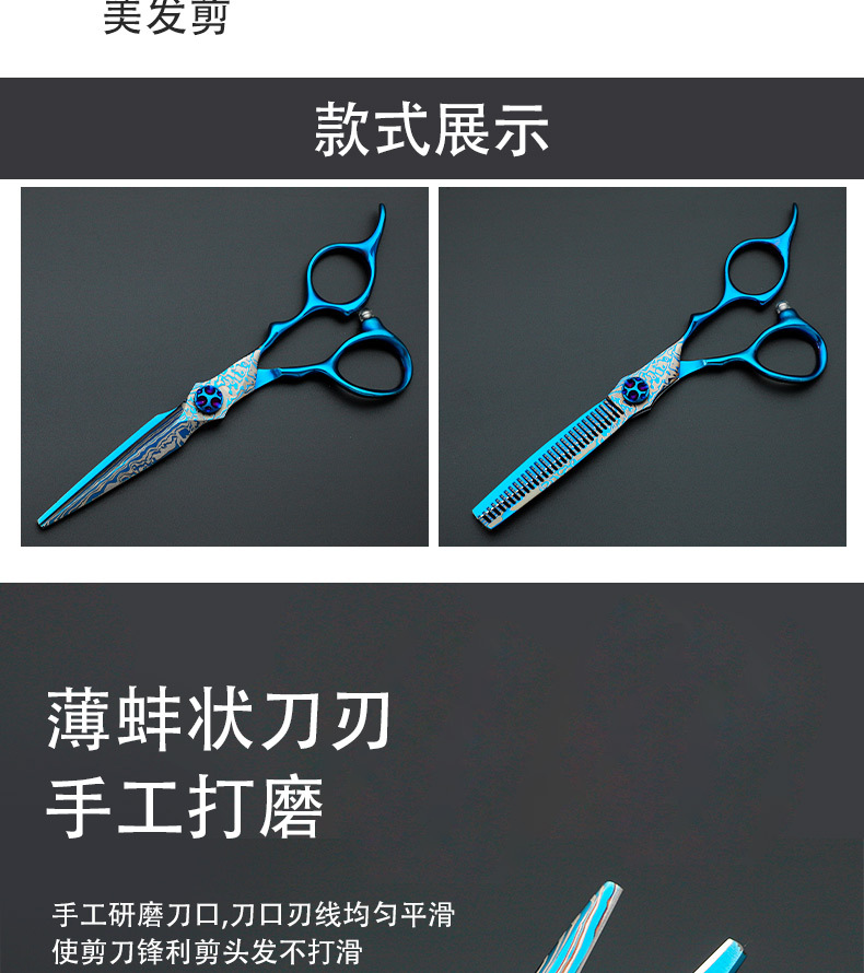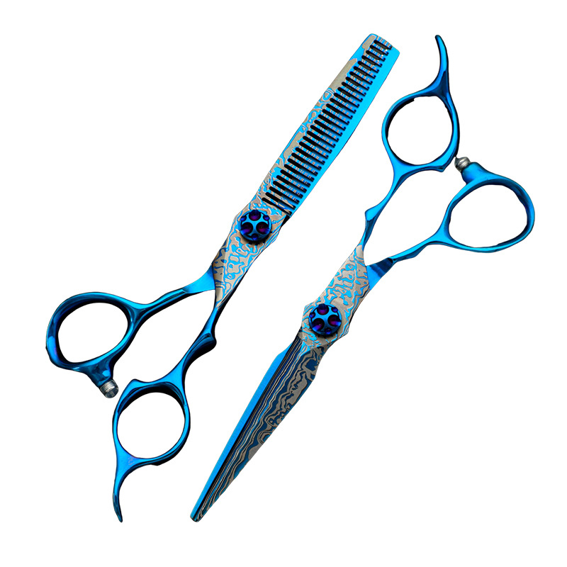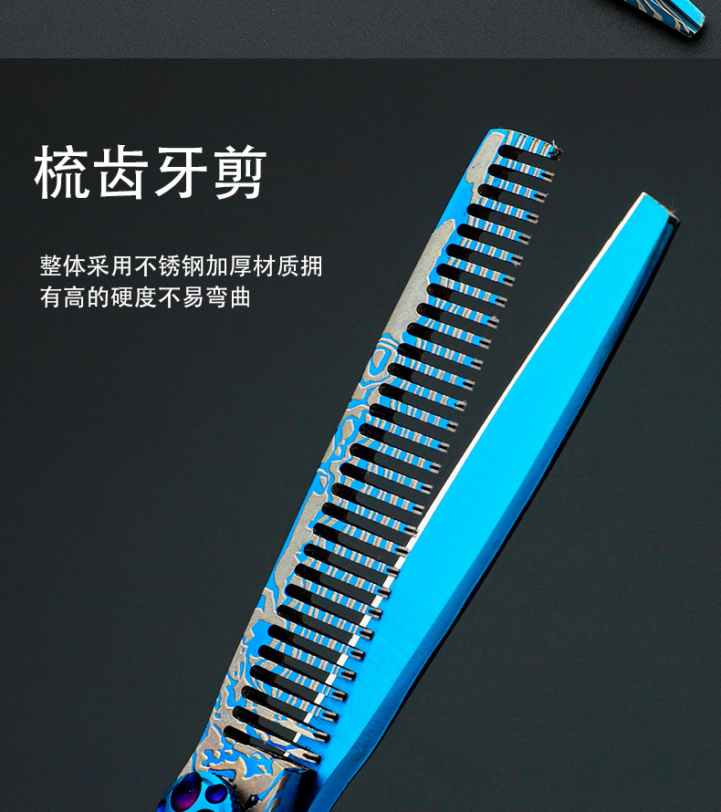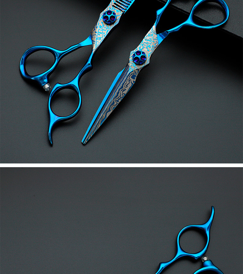 跨境专供大马士革蓝色经典6寸理发剪刀发型师专业平剪牙剪套装