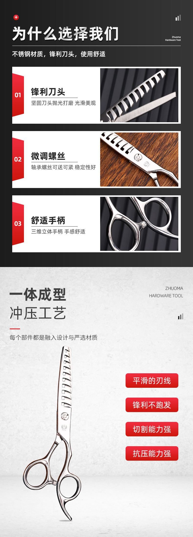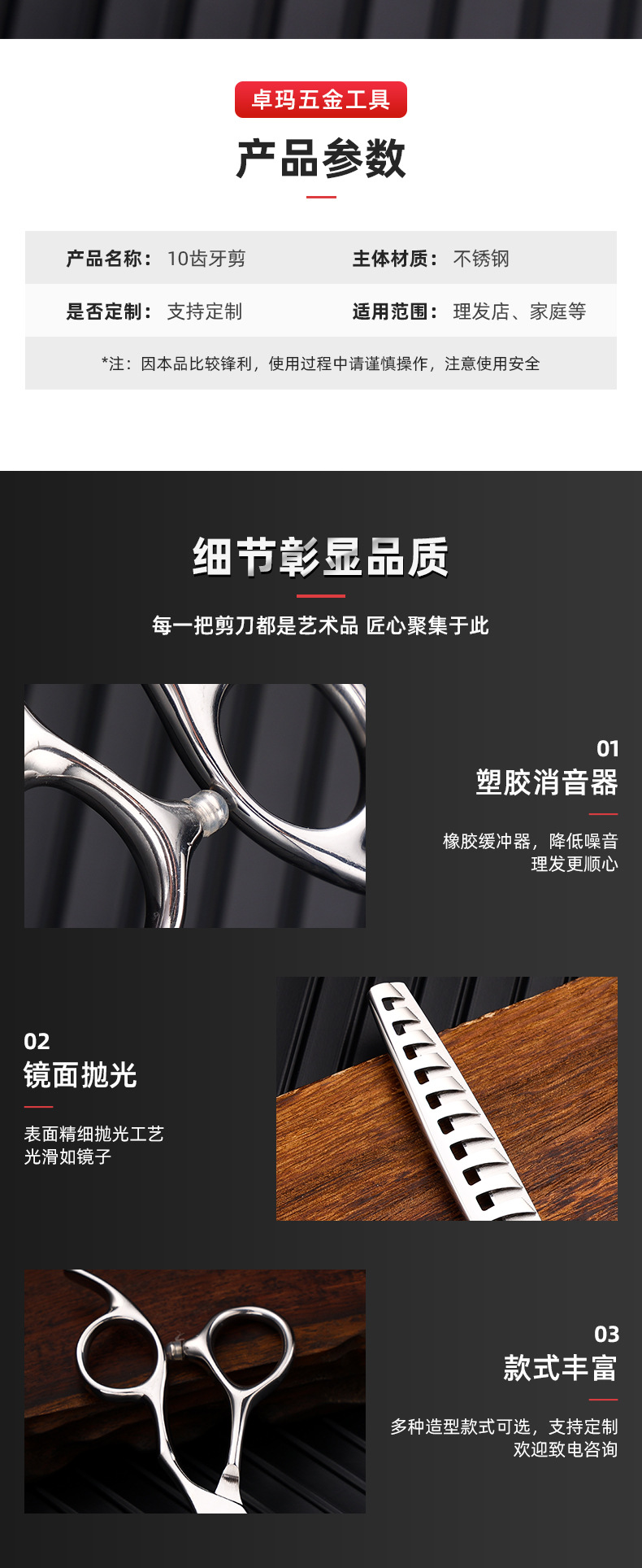 10齿宠物美容剪刀发廊美发剪刀鹿骨齿鱼骨剪大齿剪打薄剪6寸牙剪