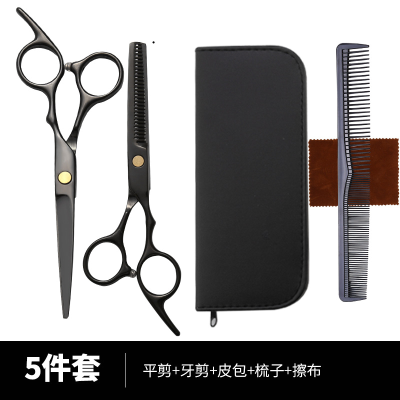 跨境11件套厂家黑色不锈钢理发美发剪刀平剪刘海打薄碎发牙剪专业
