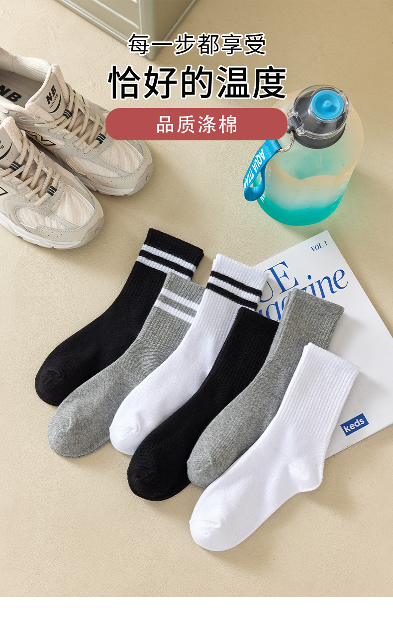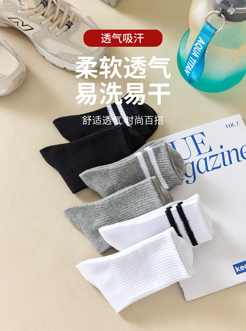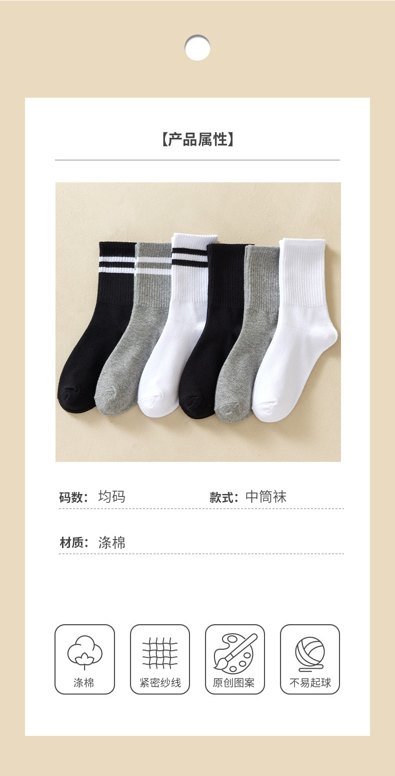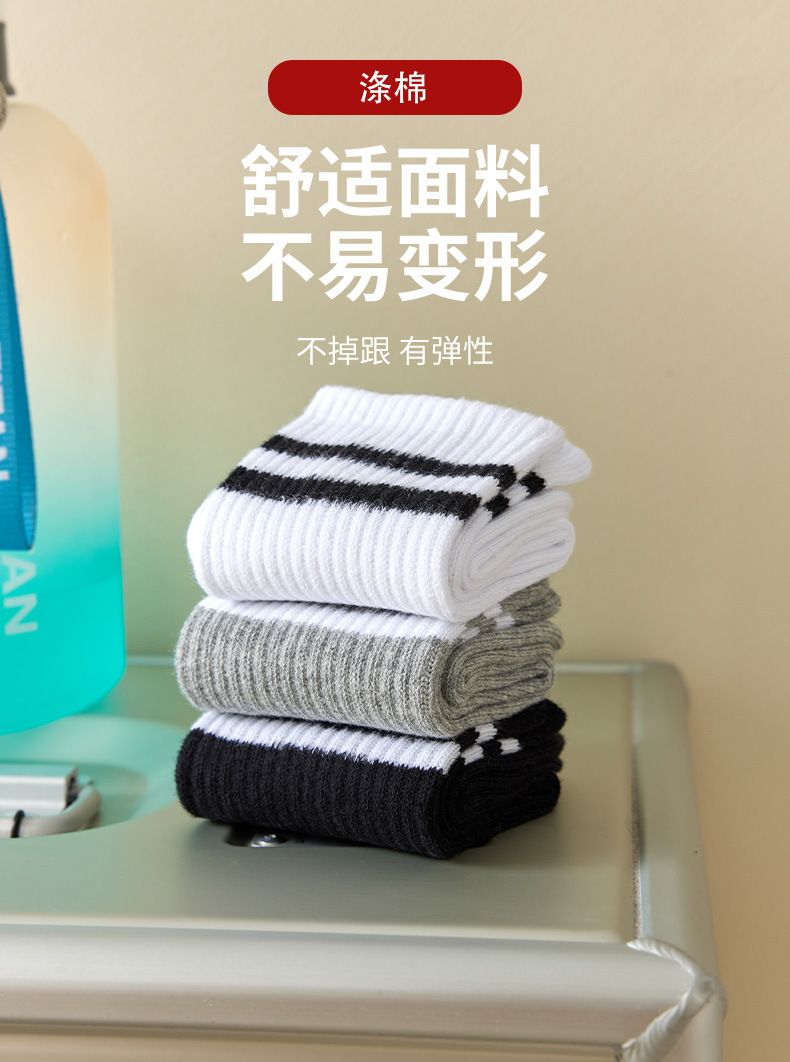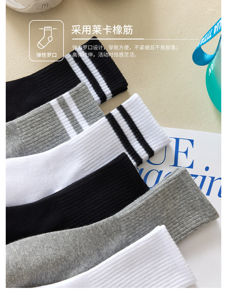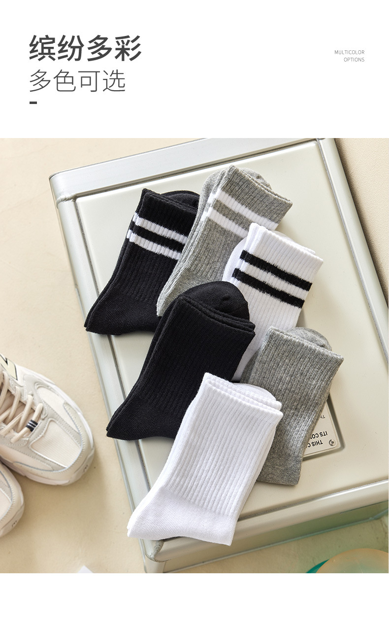 袜子男士中筒袜防滑男女通用速干长筒运动休闲袜黑白双杠