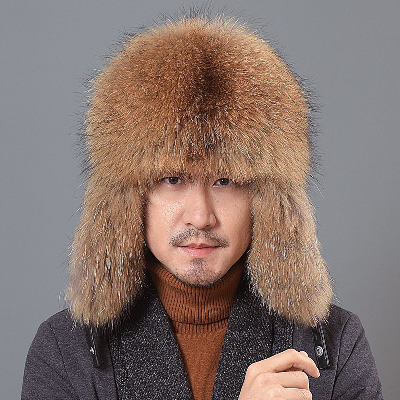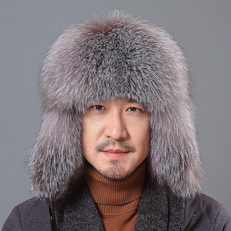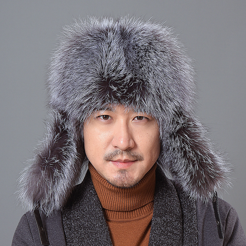 秋冬男士户外保暖皮草男帽 狐狸毛绵羊皮雷锋帽子 护耳成人帽现货