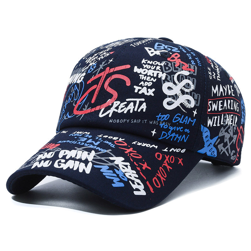 棒球帽韩版卡通涂鸦潮鸭舌帽个性街头潮流男女帽子欧美时尚嘻哈帽