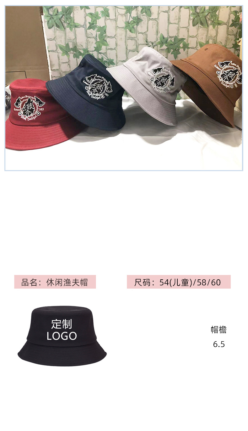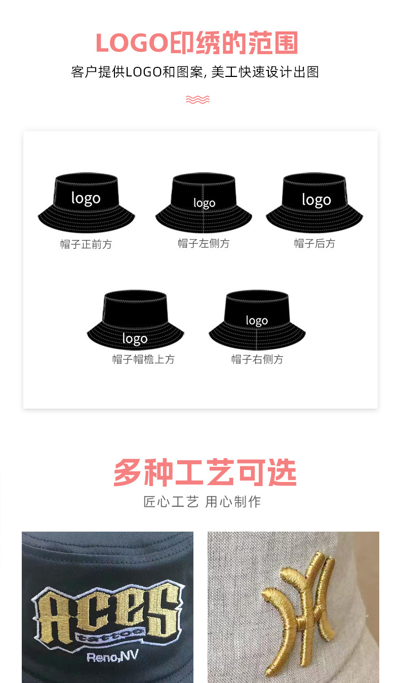 渔夫帽广告刺绣印字LOGO男女盆帽户外防晒钓鱼帽子儿童纯棉遮阳帽