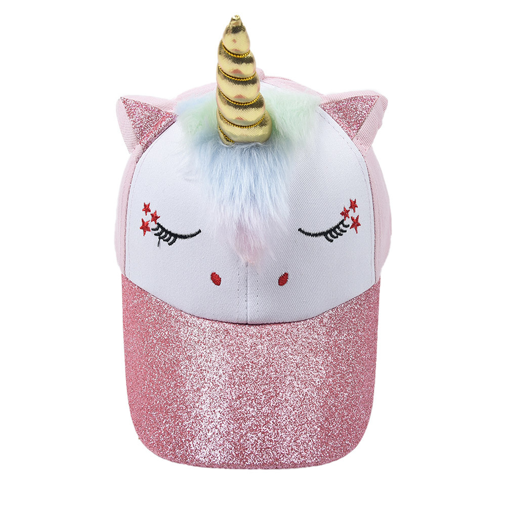 外贸新款儿童独角兽棒球帽亚马逊欧美可爱卡通印花男女宝宝鸭舌帽