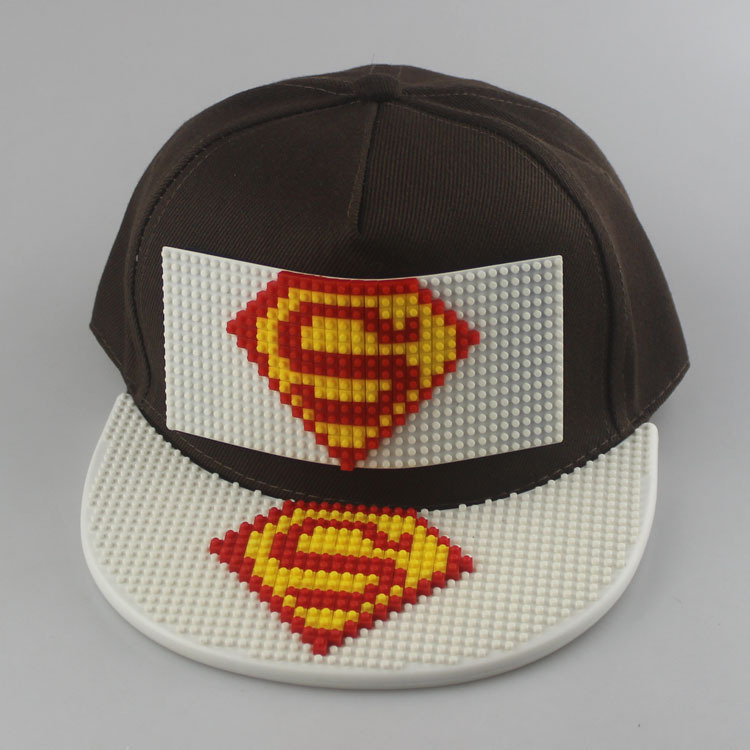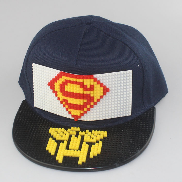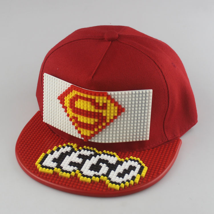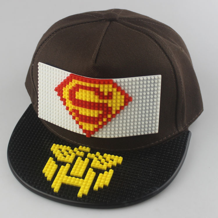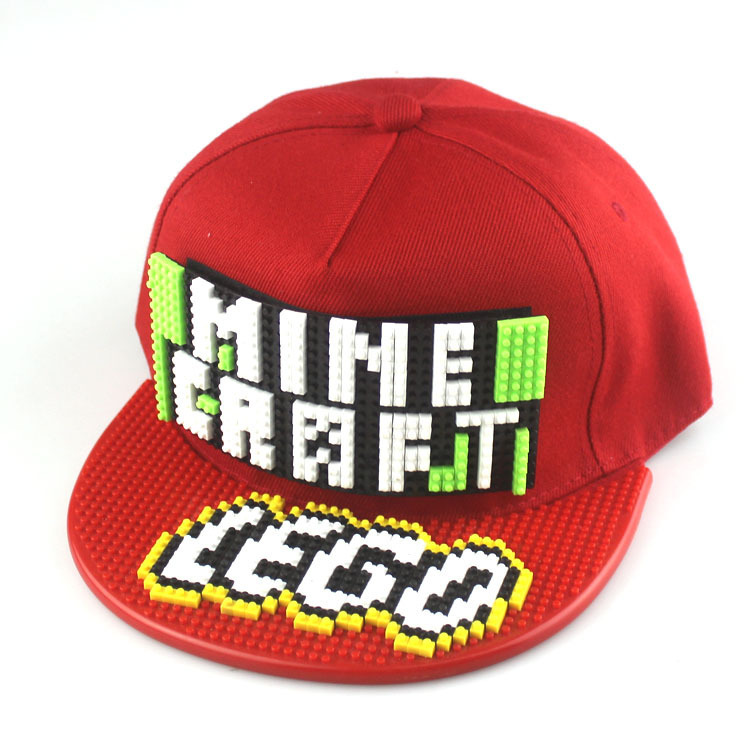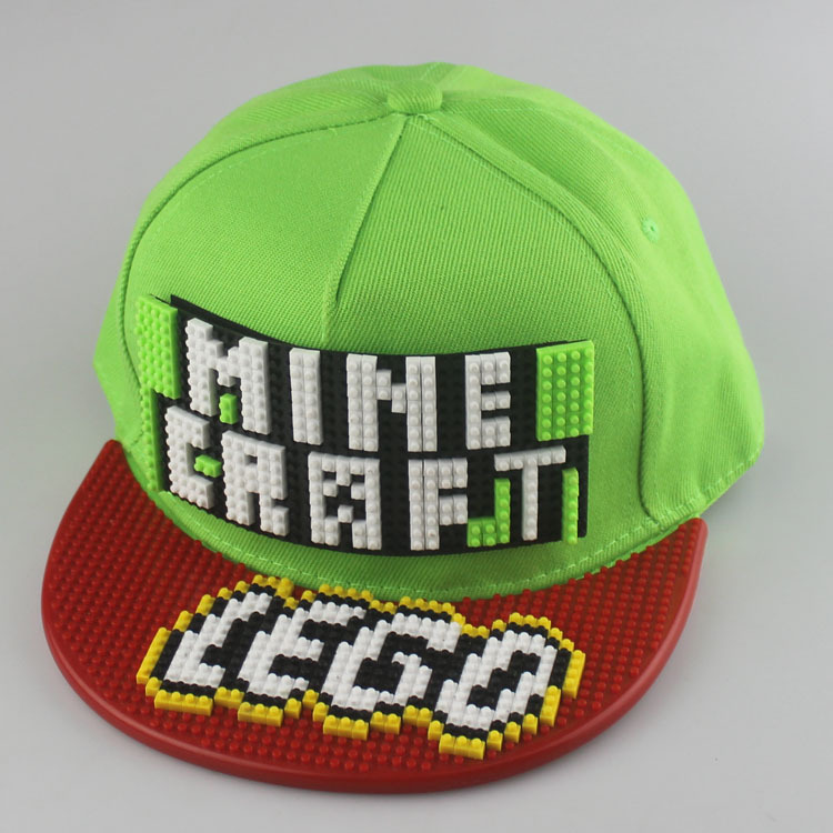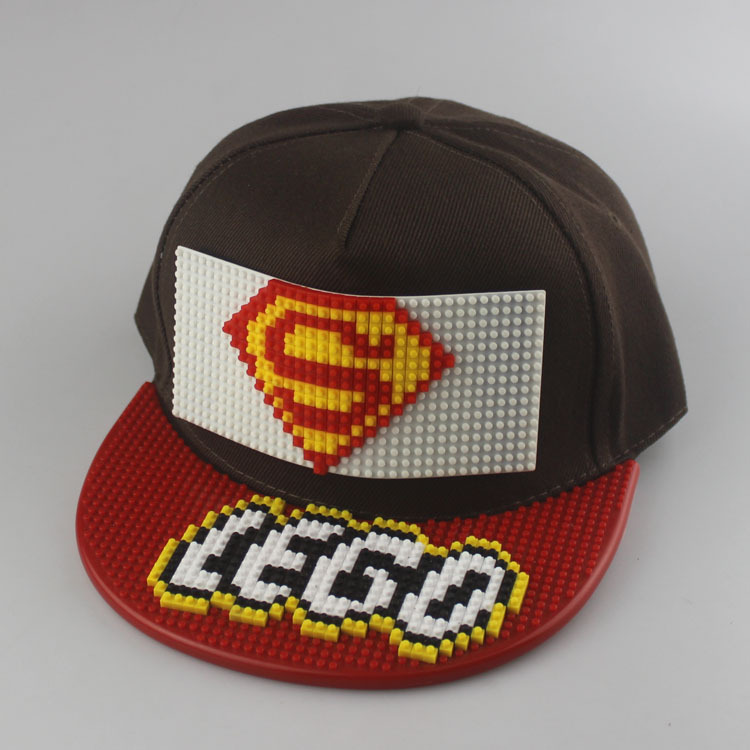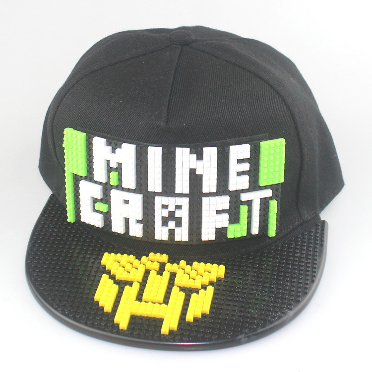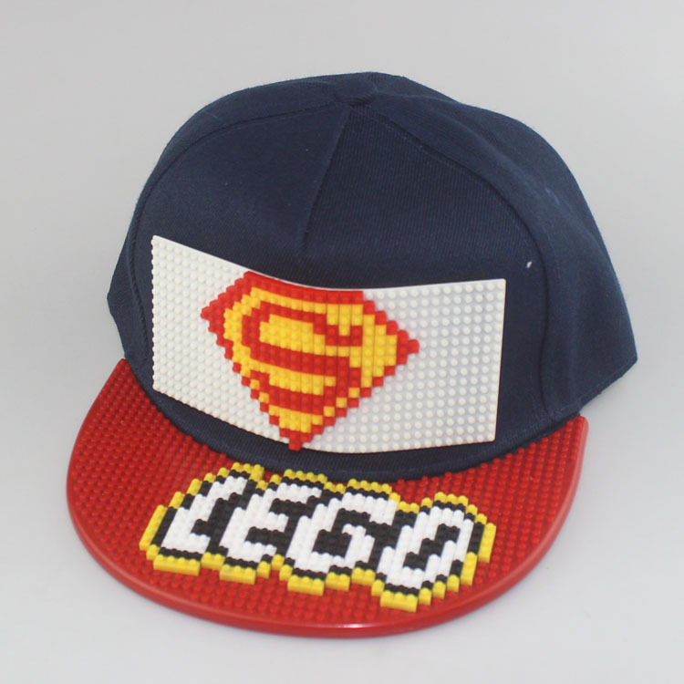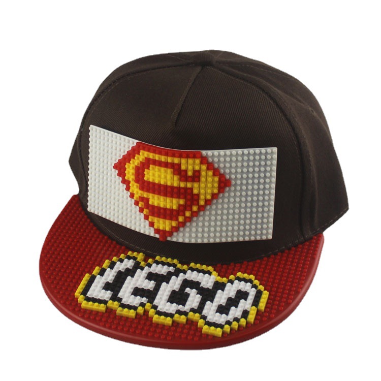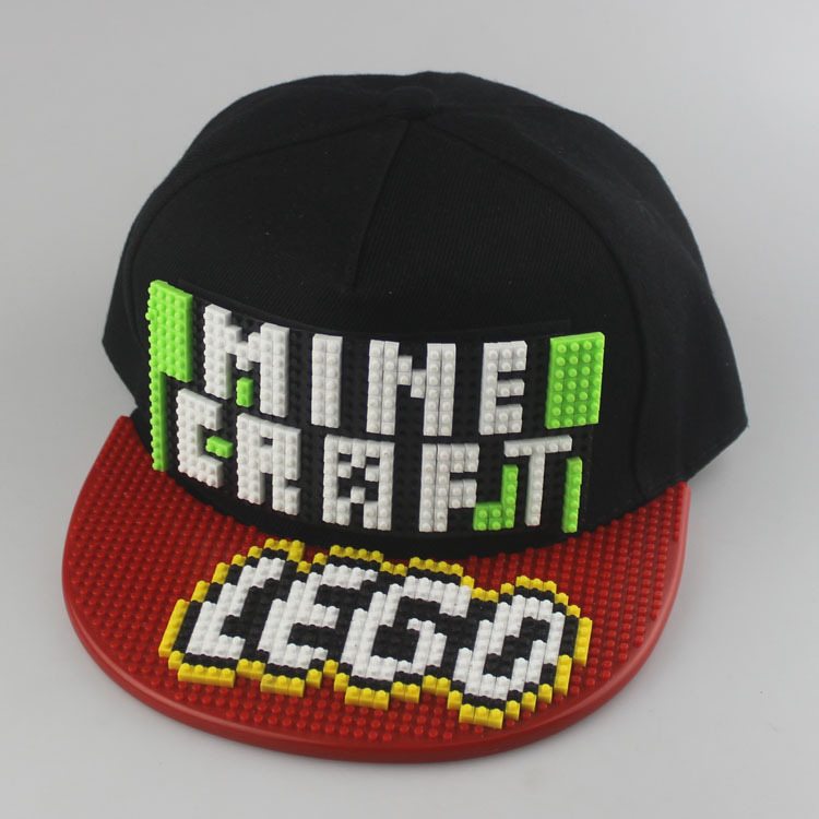 欧美儿童棒球帽小颗粒帽檐盖拼图积木帽子个性DIY像素拼装乐高帽