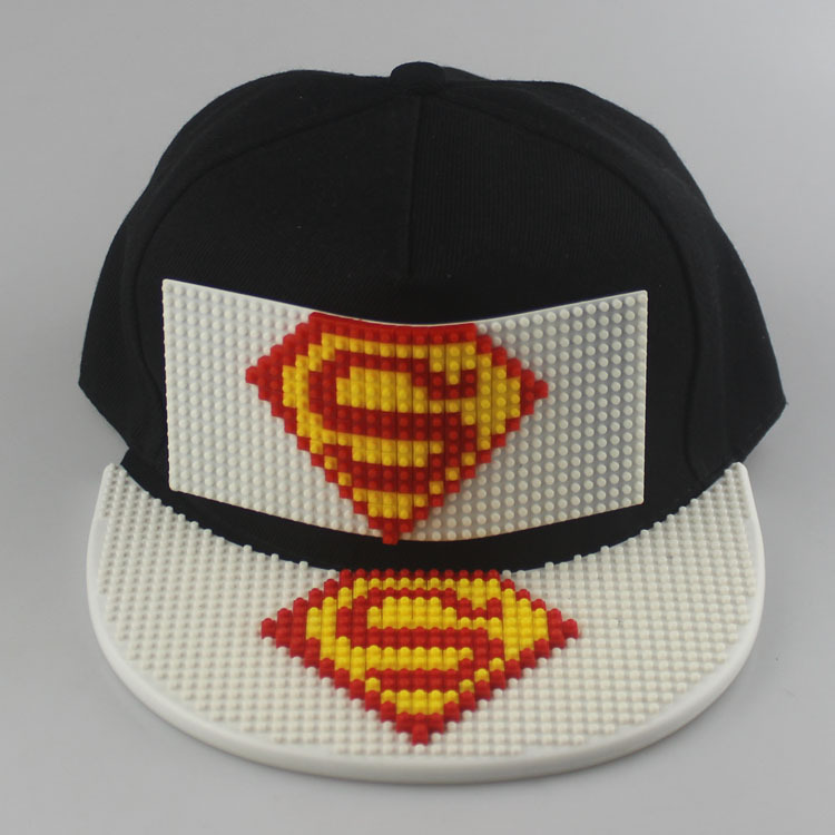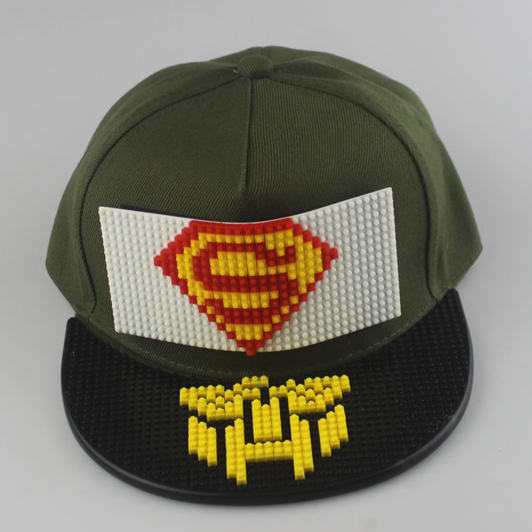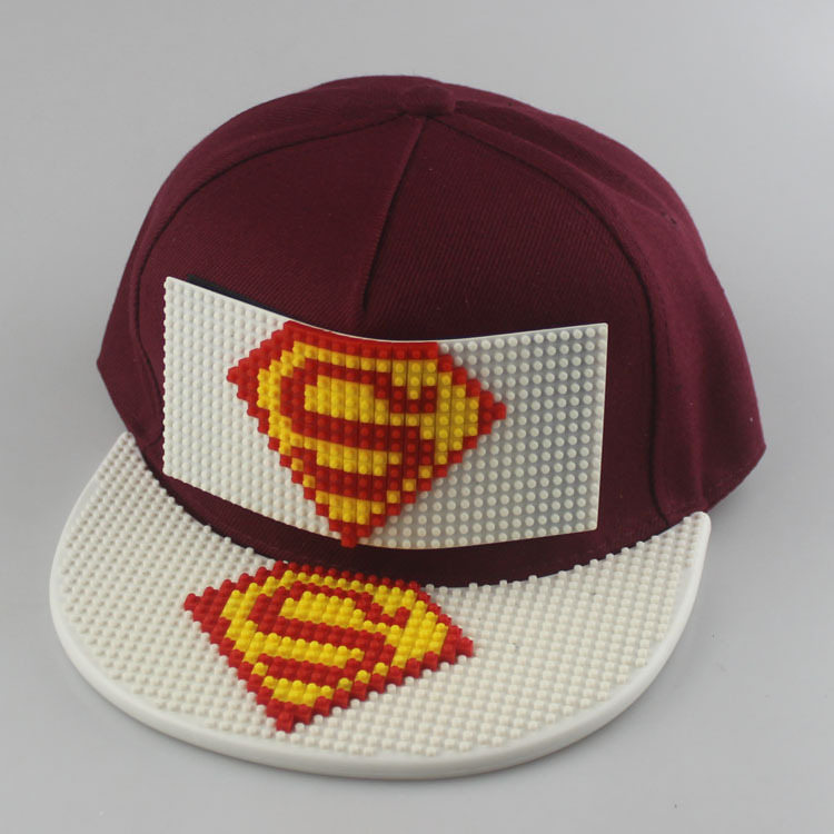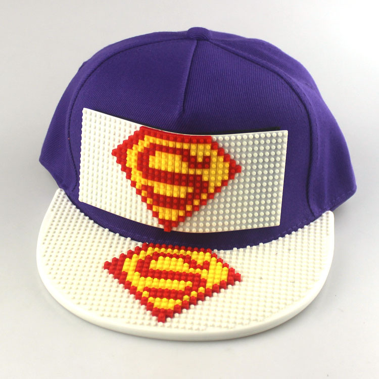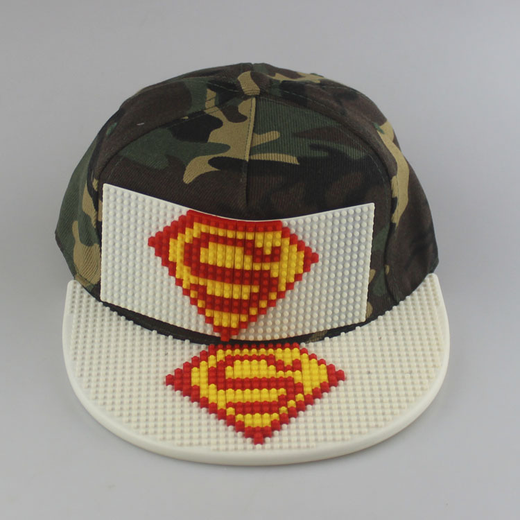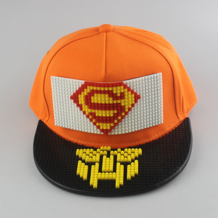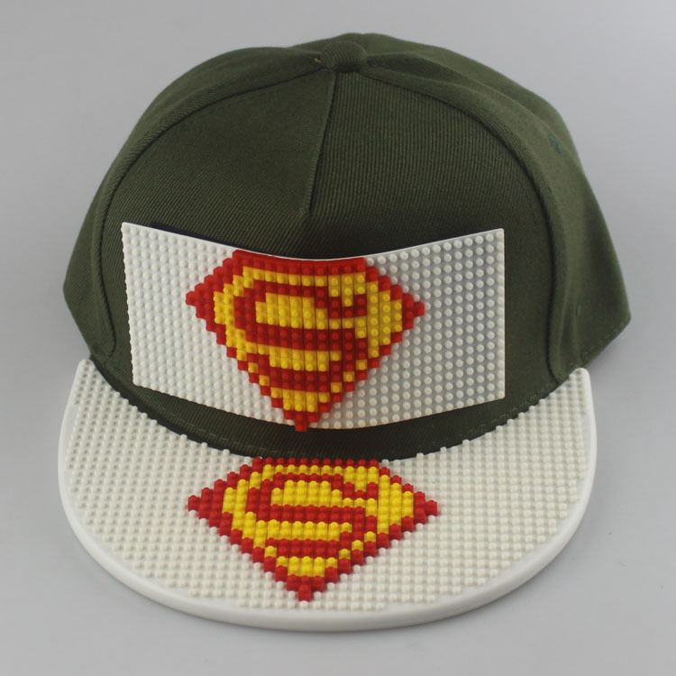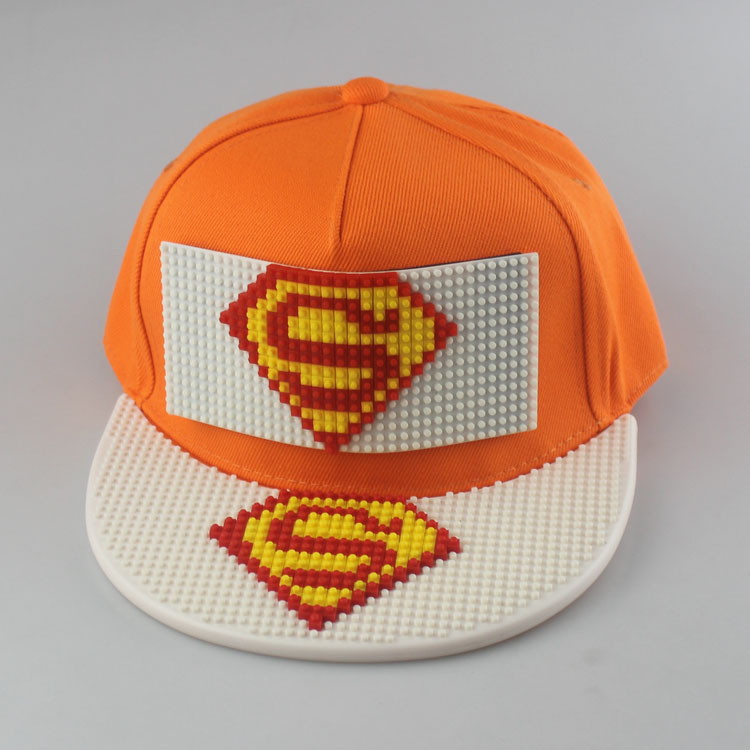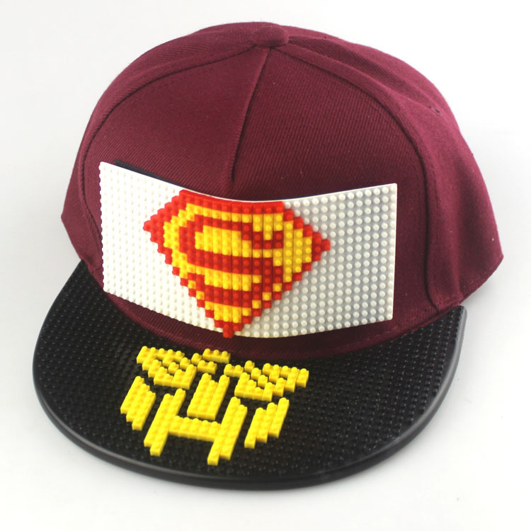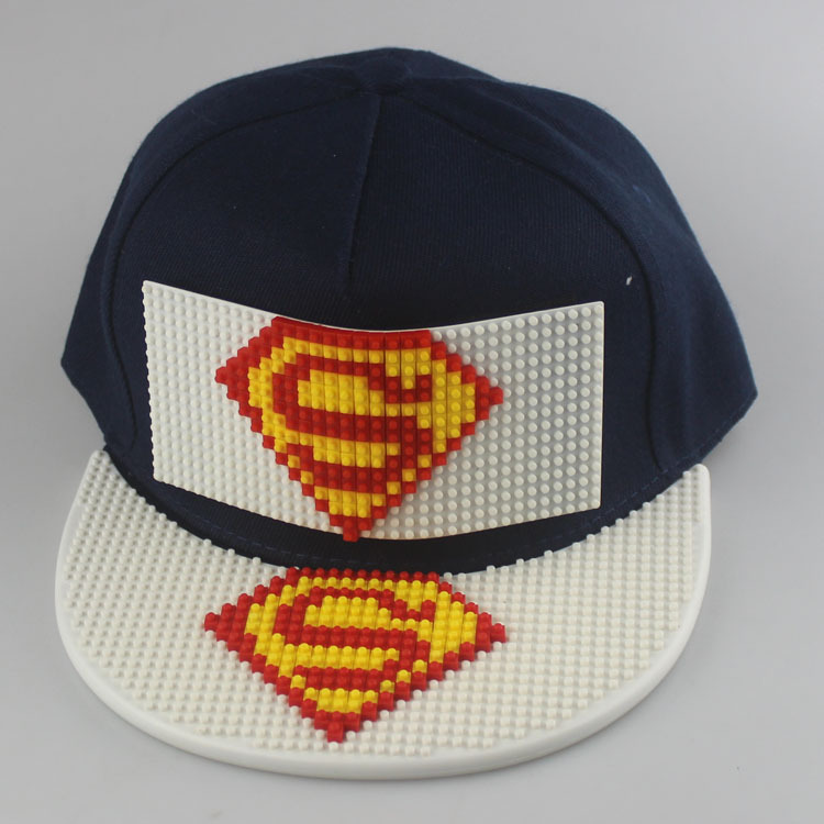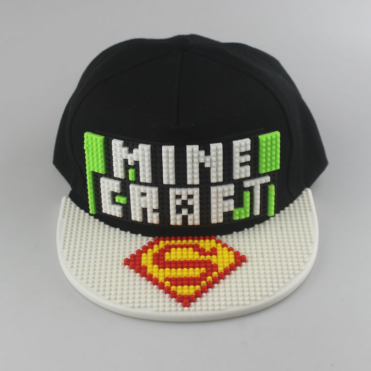 欧美儿童棒球帽小颗粒帽檐盖拼图积木帽子个性DIY像素拼装乐高帽