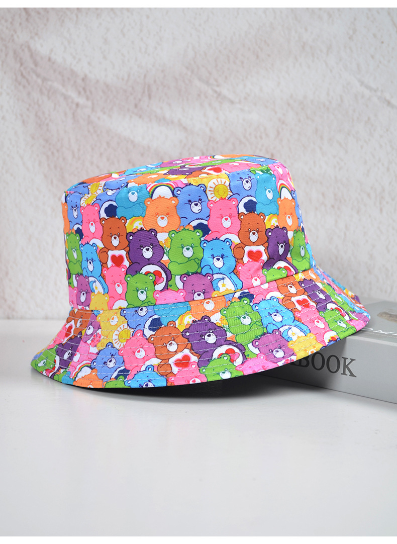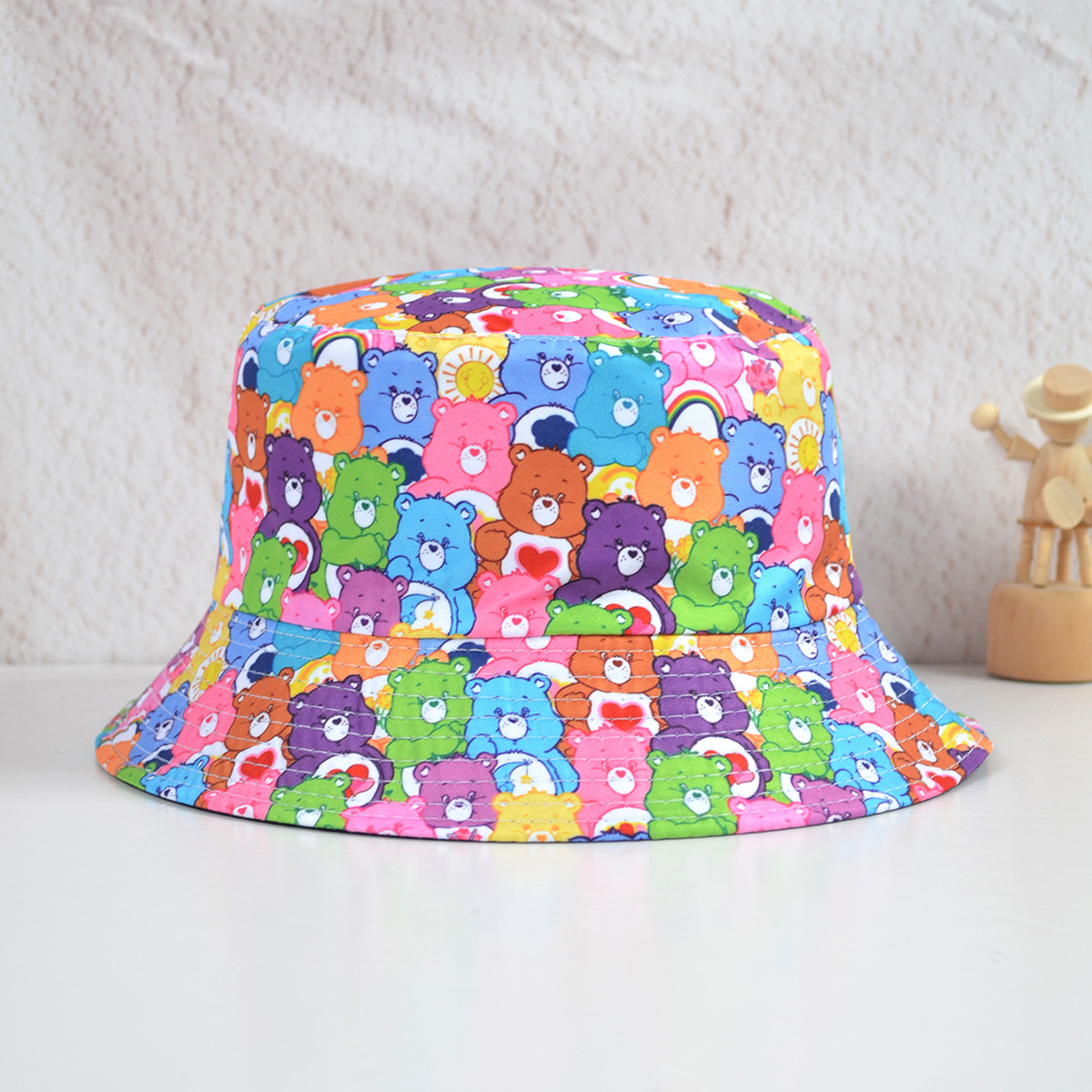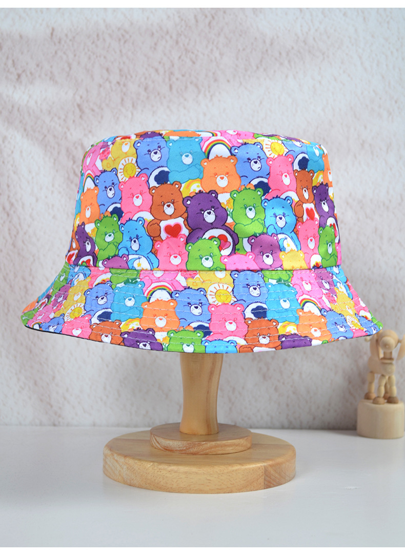 新款儿童卡通渔夫帽欧美小熊图案水桶帽春秋遮阳防晒盆帽男女同款