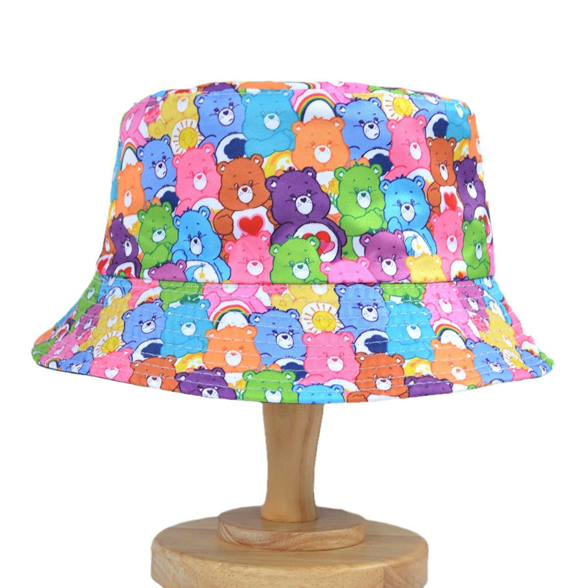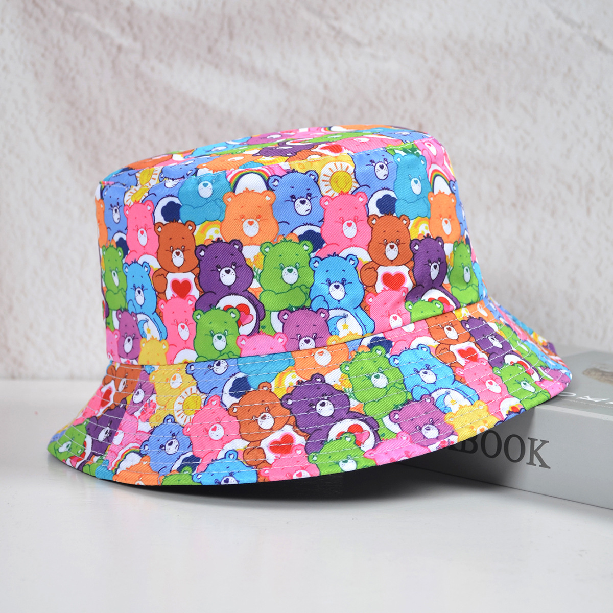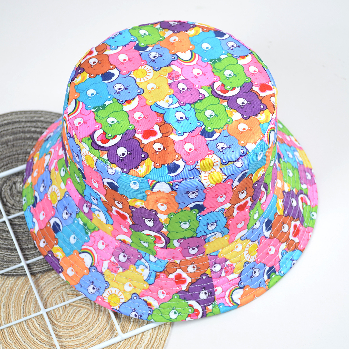 新款儿童卡通渔夫帽欧美小熊图案水桶帽春秋遮阳防晒盆帽男女同款