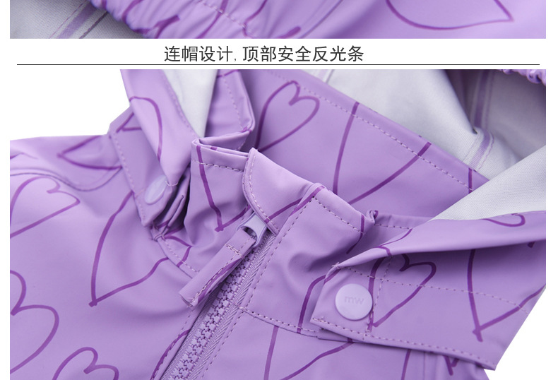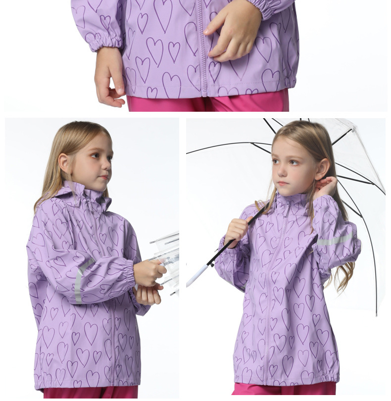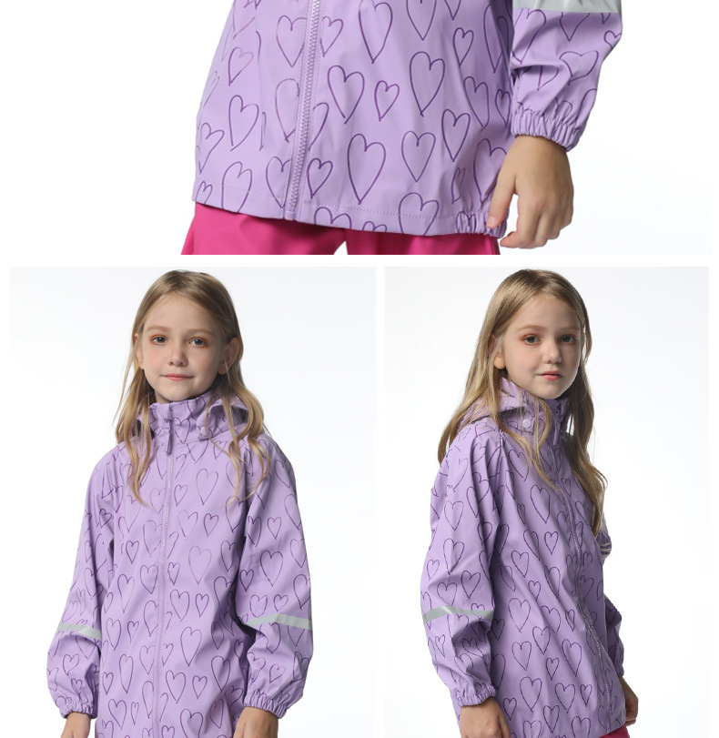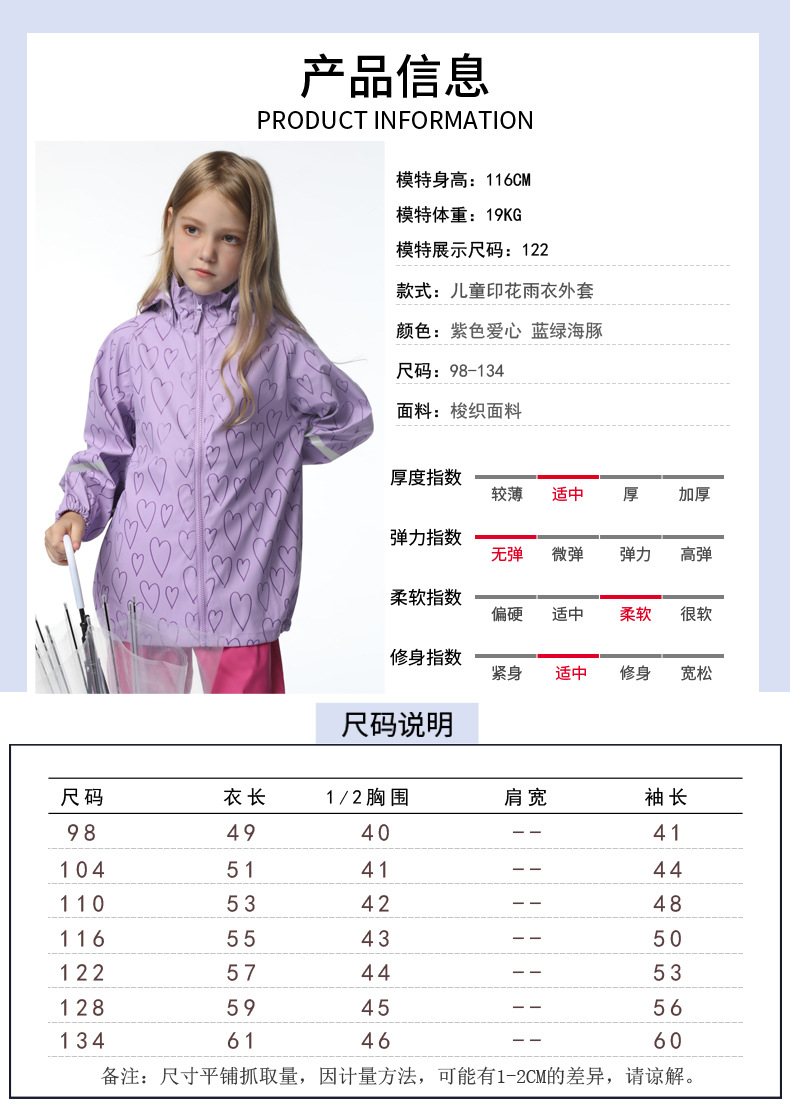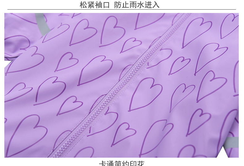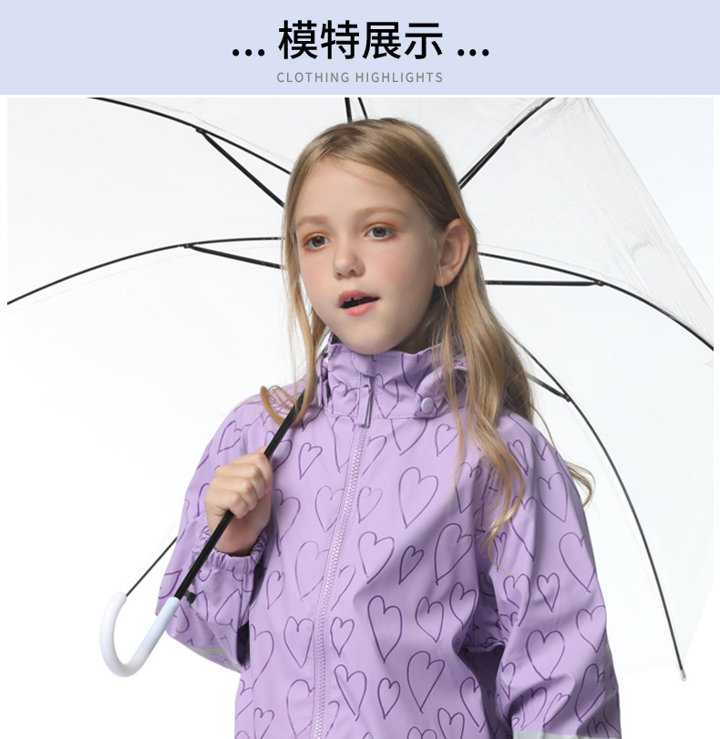 欧美儿童雨衣女童印花PU高频压胶雨衣外套男童户外单层防水拉链衫