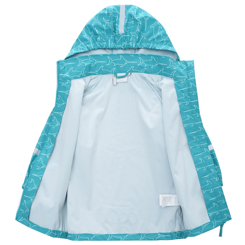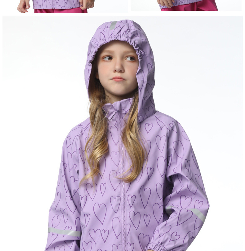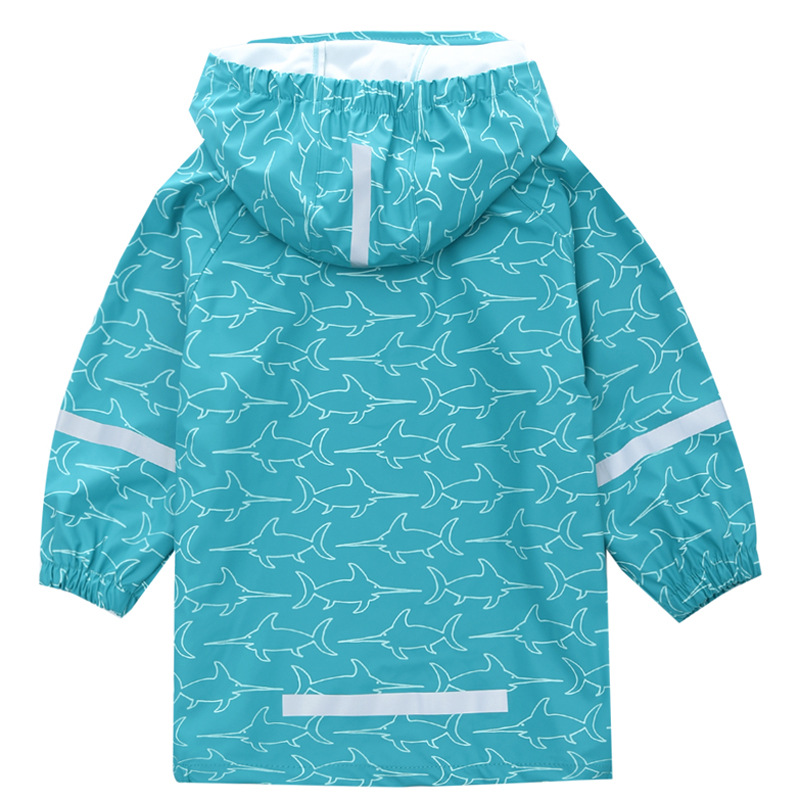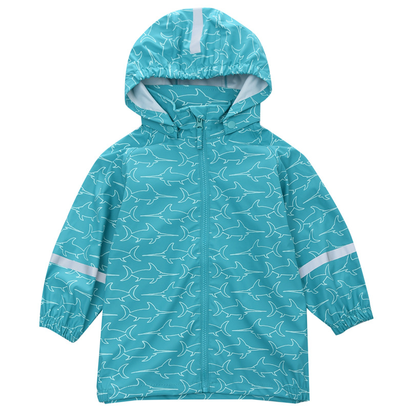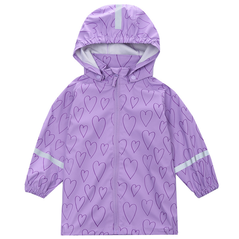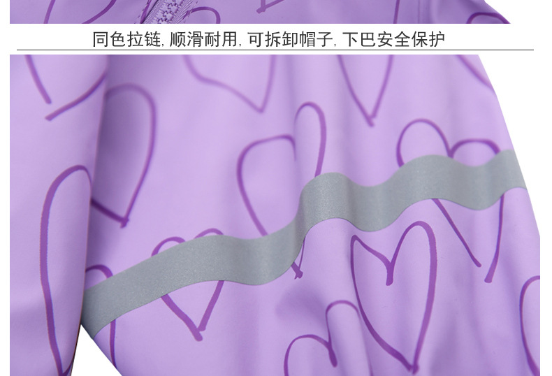 欧美儿童雨衣女童印花PU高频压胶雨衣外套男童户外单层防水拉链衫