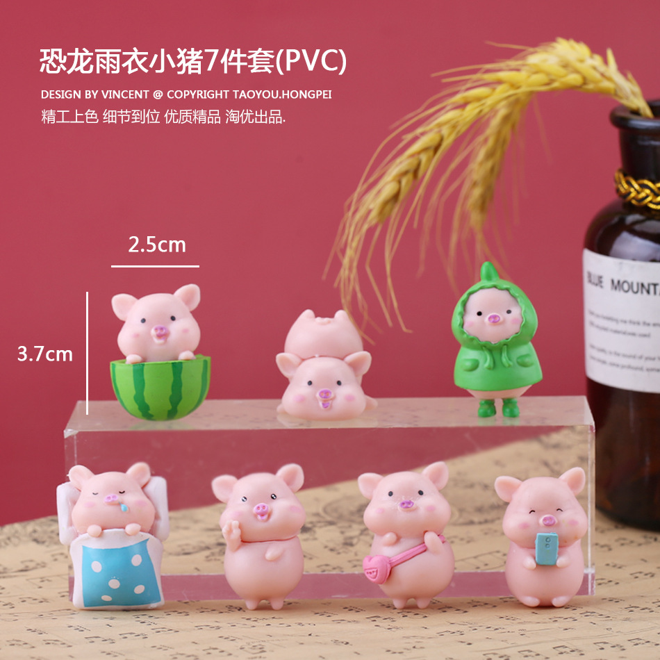 公仔微景观摆件抖音爆款恐龙雨衣小猪蛋糕烘焙摆件卡通桌面橱手办