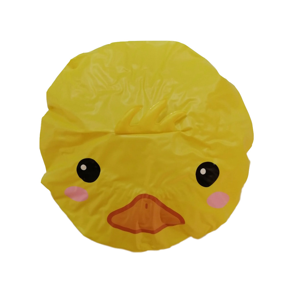 厂家直供时尚欧美防水PVC洗头帽可爱小黄鸭儿童婴幼儿立体淋浴帽