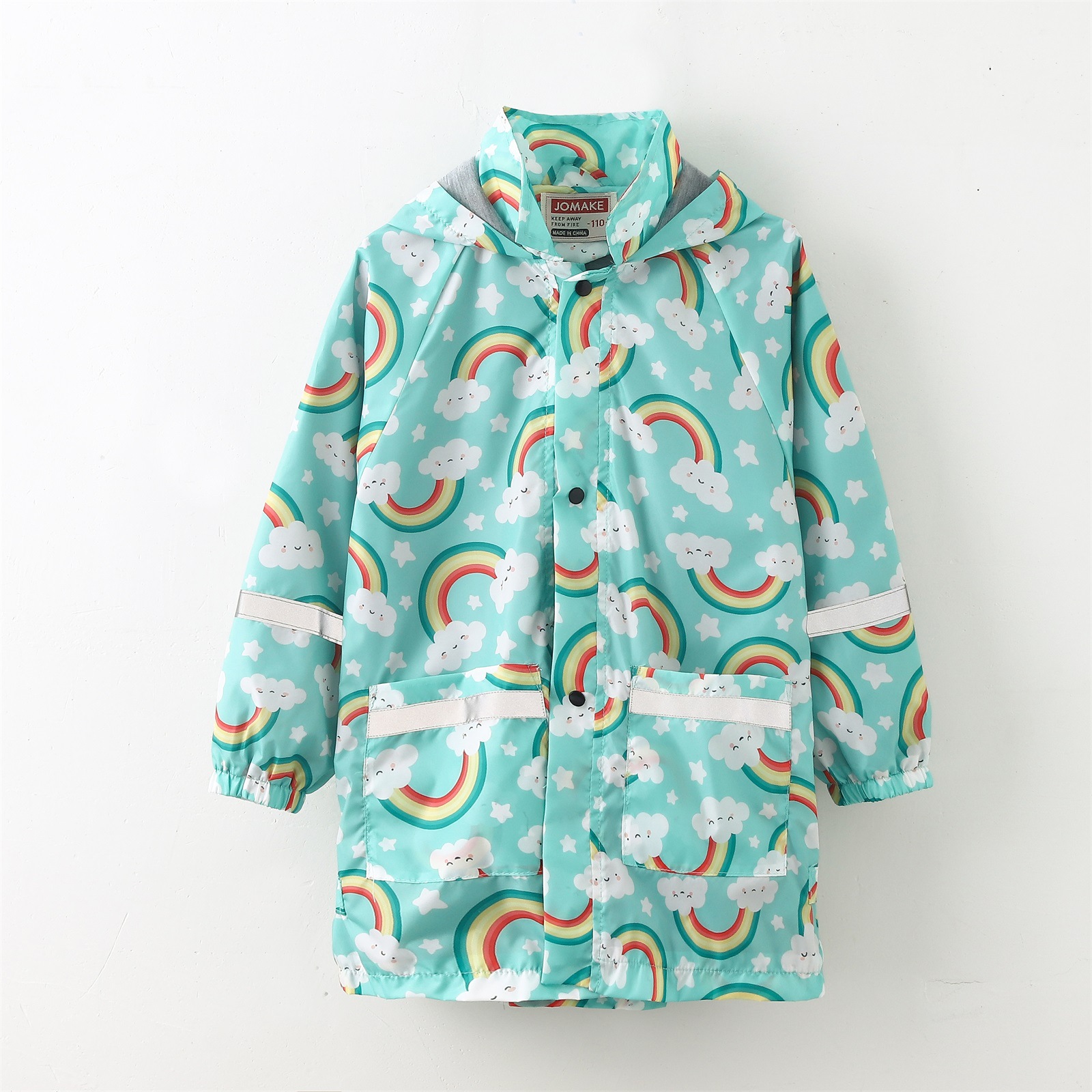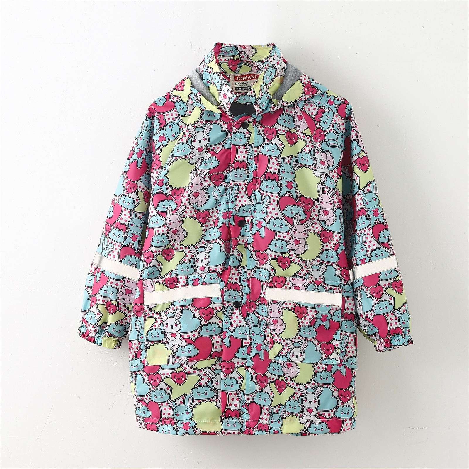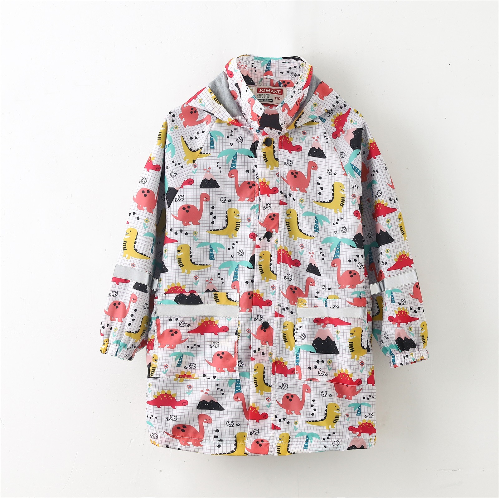 新款雨季中小童雨衣外套可爱印花带帽中长款带口袋户外玩水冲锋衣