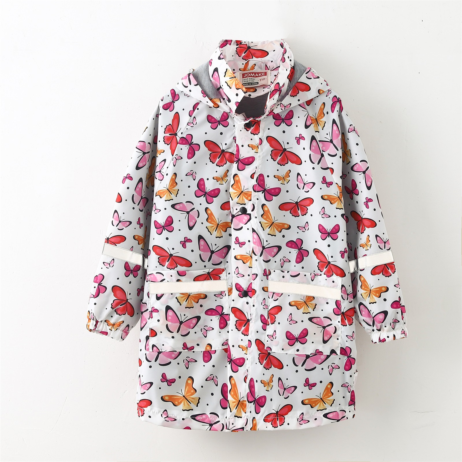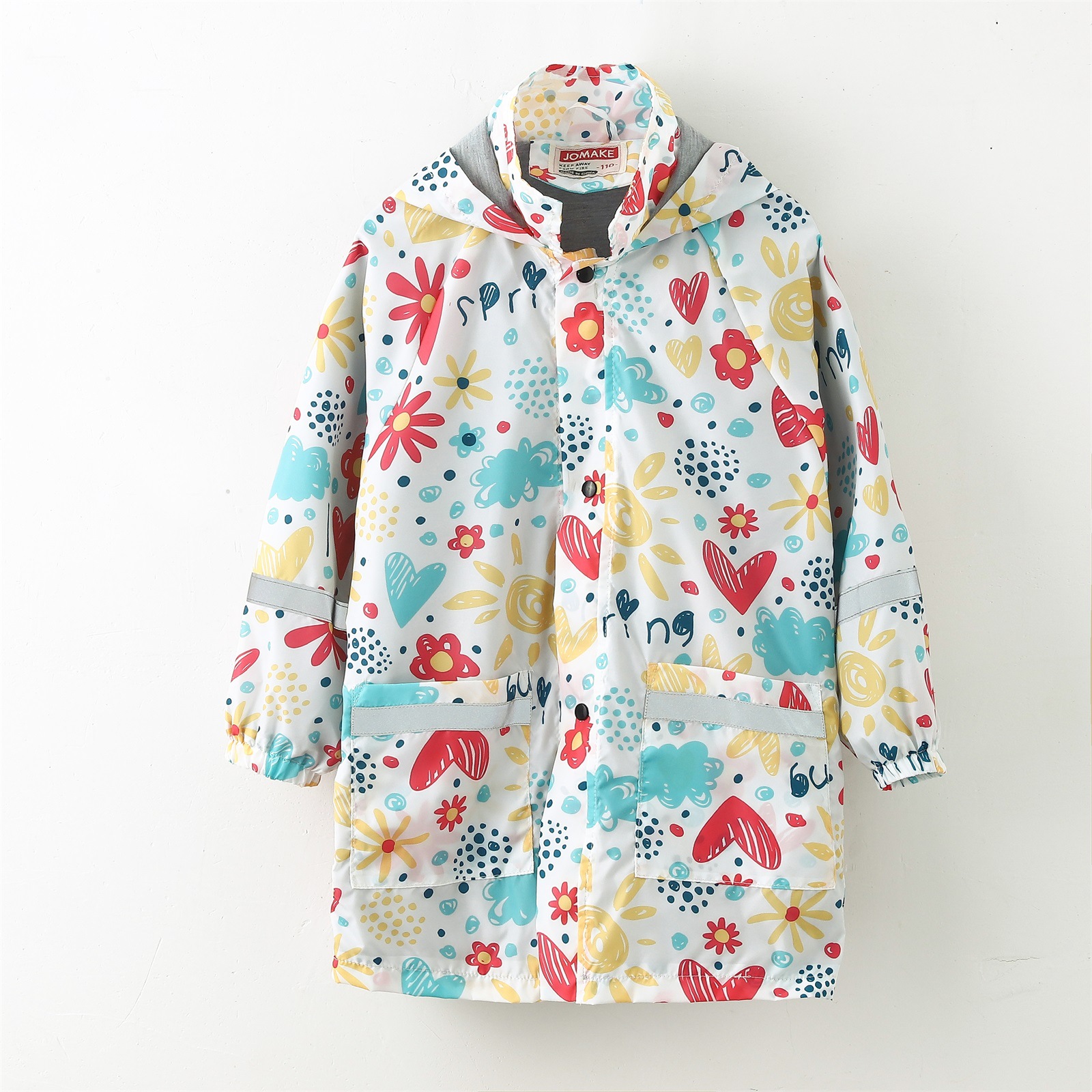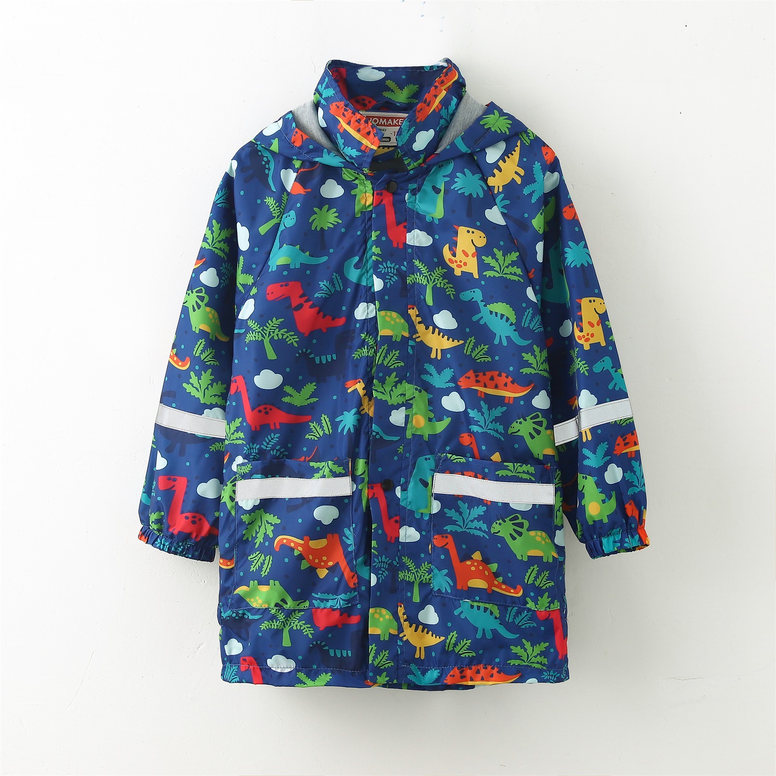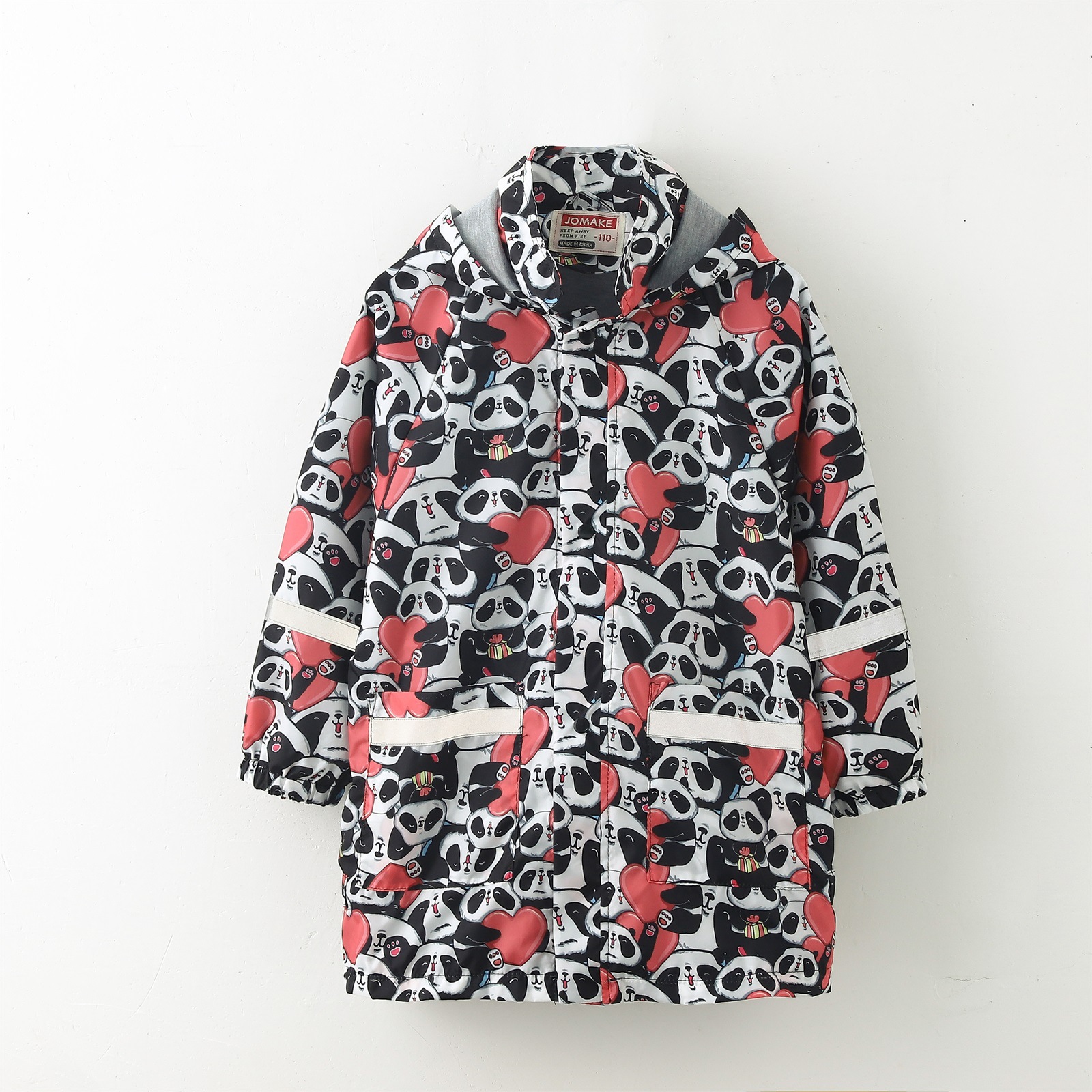 新款雨季中小童雨衣外套可爱印花带帽中长款带口袋户外玩水冲锋衣