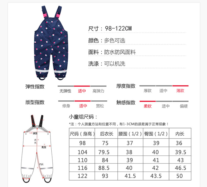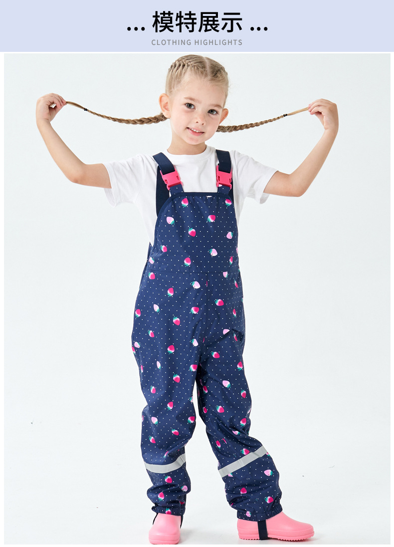 儿童雨衣雨裤男女童背带连体雨裤中小童户外防水透气雨裤冲锋裤