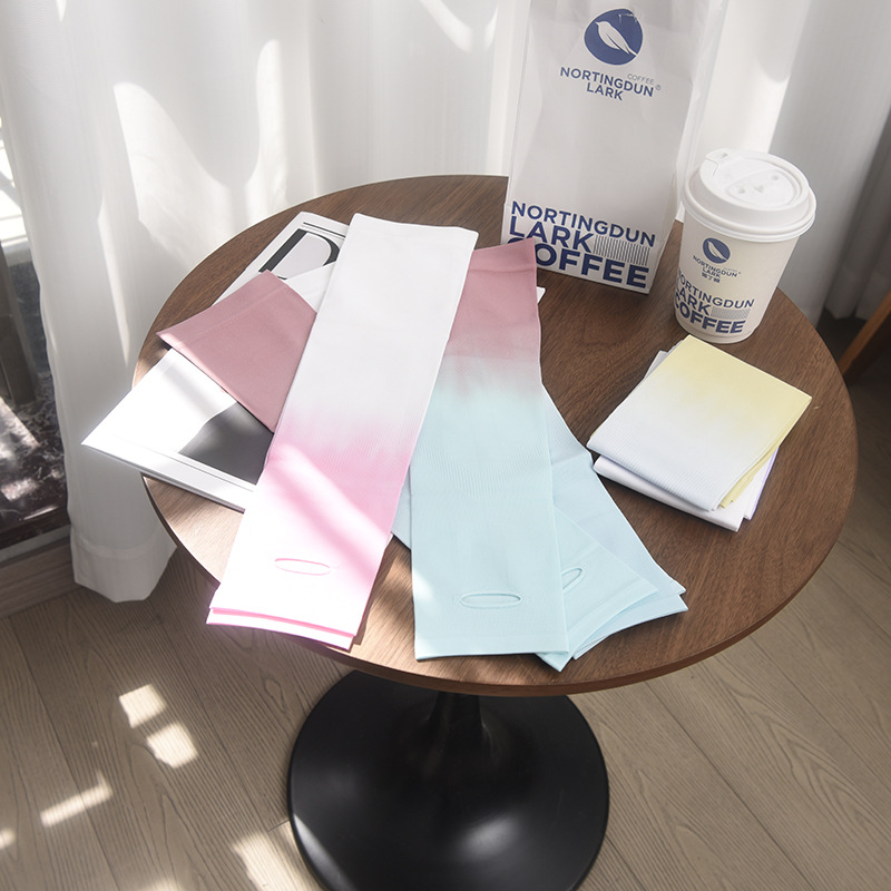 渐变色冰袖夏季冰丝防晒袖套批发男女通用骑行开车防紫外线手套薄