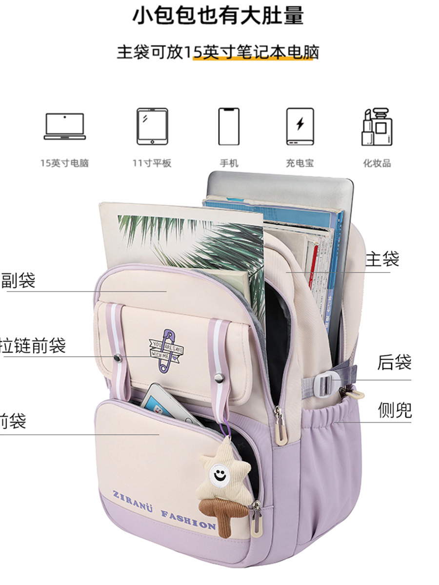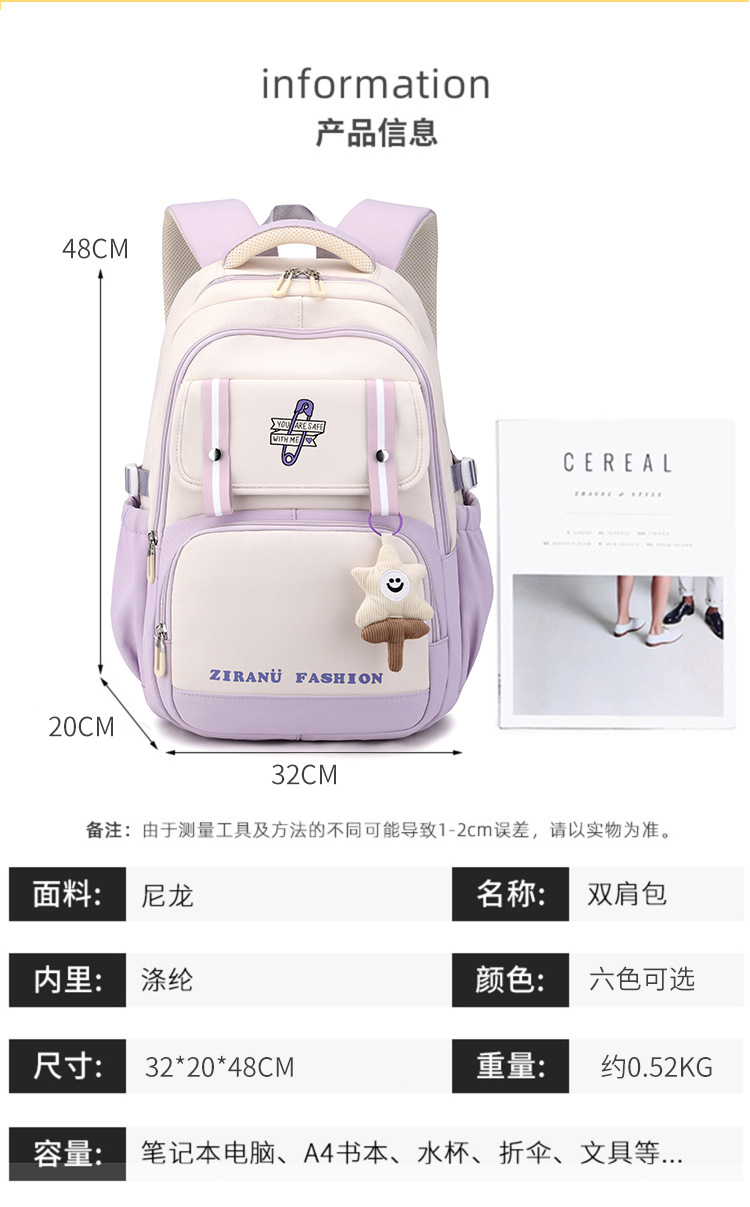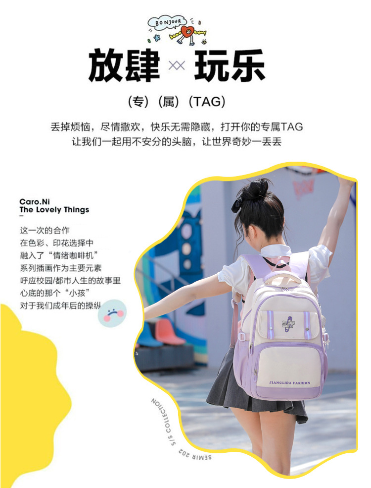 自然鱼新款小学生儿童书包三到六年级双肩包书包大学生女生初中生