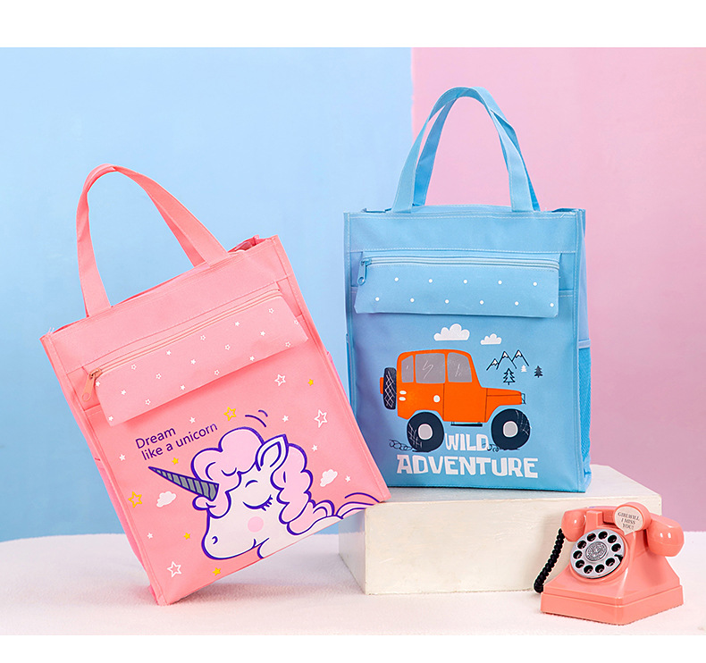 儿童补习袋小学生大容量单肩补课书包卡通试卷收纳拉链袋子美术袋