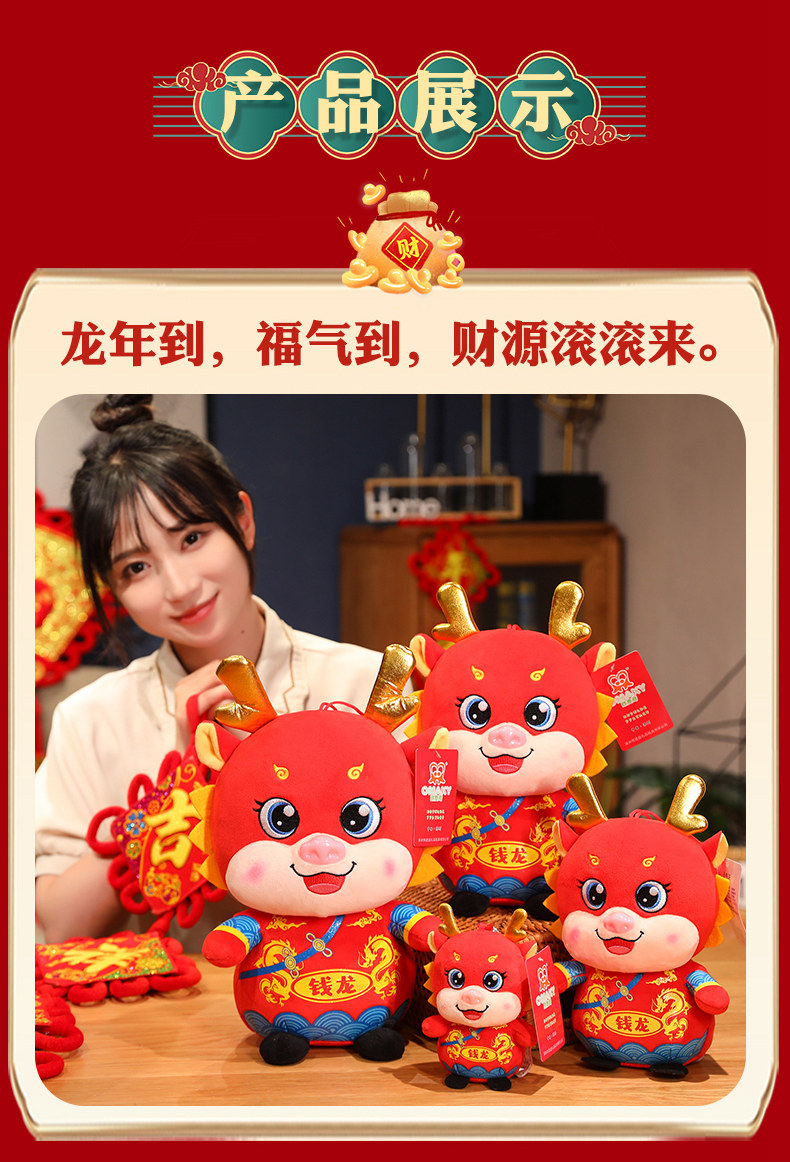 2024龙年吉祥物玩偶生肖龙毛绒玩具钱龙公仔儿童布娃娃年货礼物