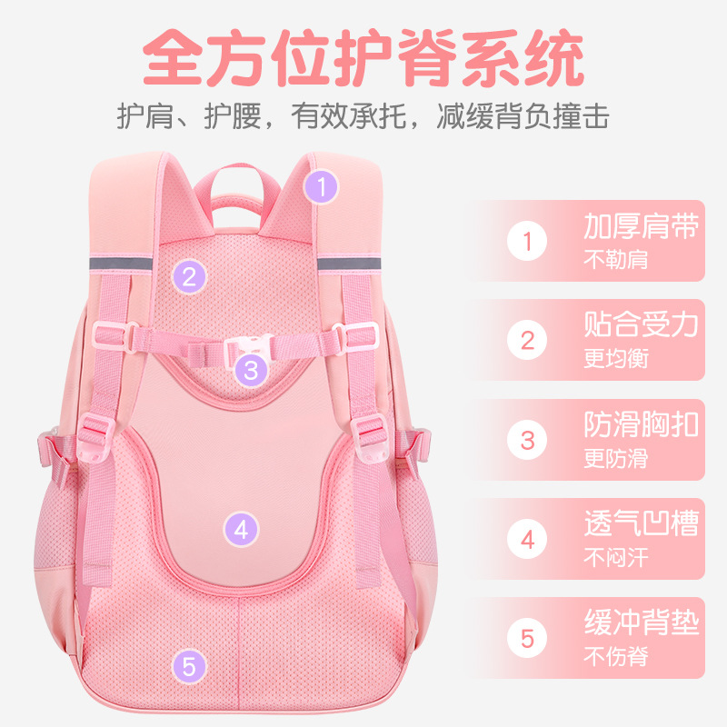 新款小学生书包一至四六年级公主女童轻便减负护脊大容量双肩背包