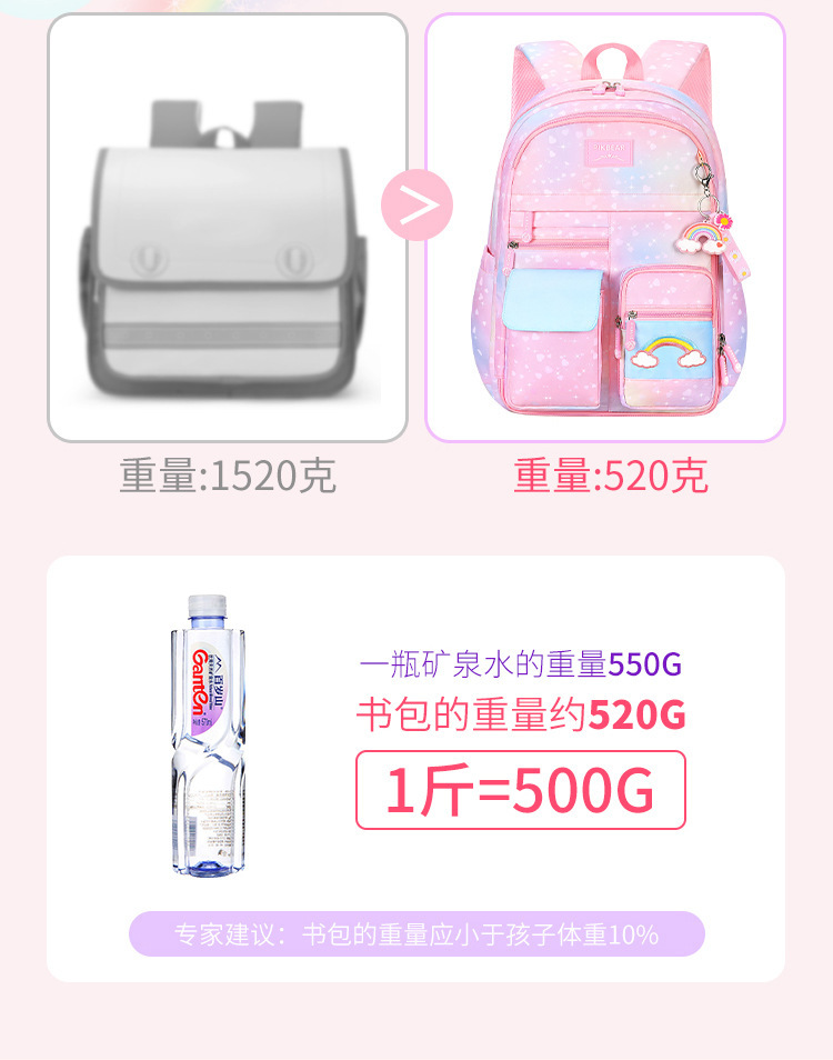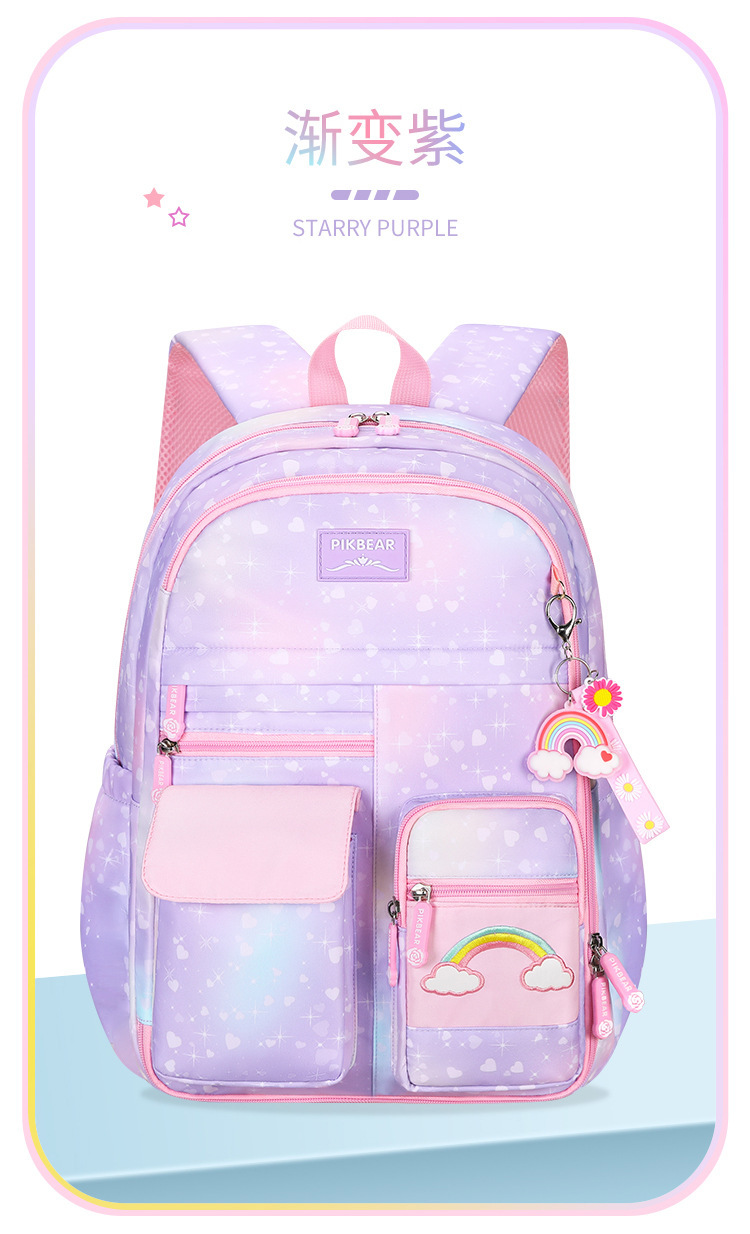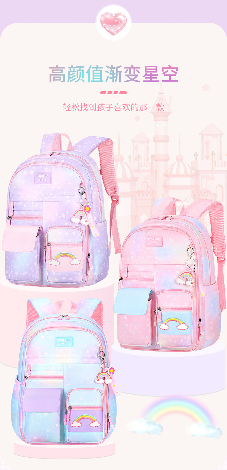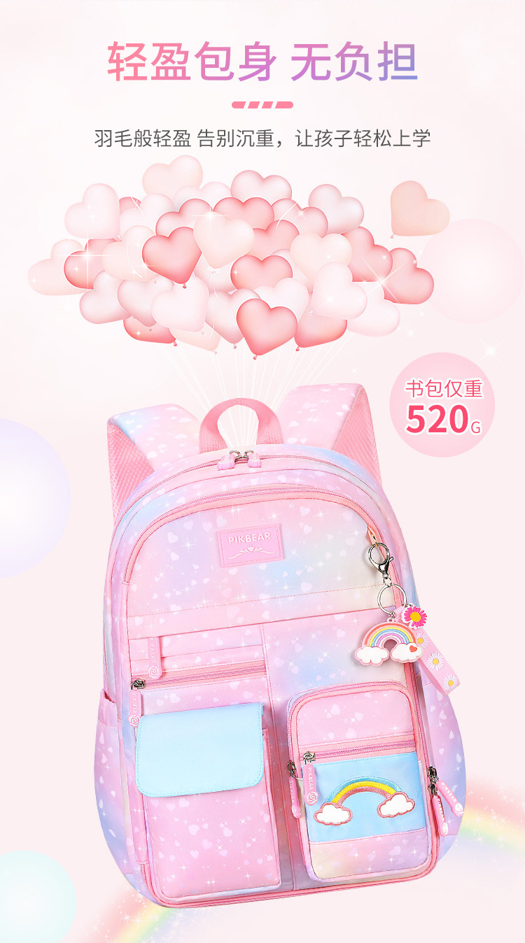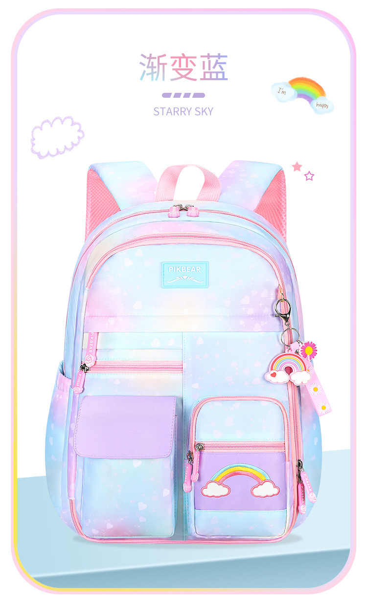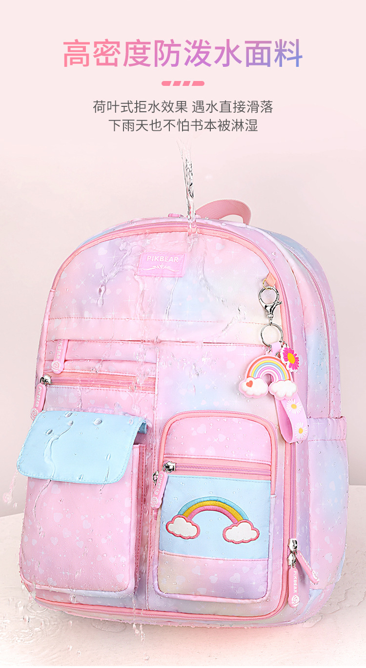 跨境新款小学生彩虹包 儿童女款护脊减负双肩大容量背包 支持定制